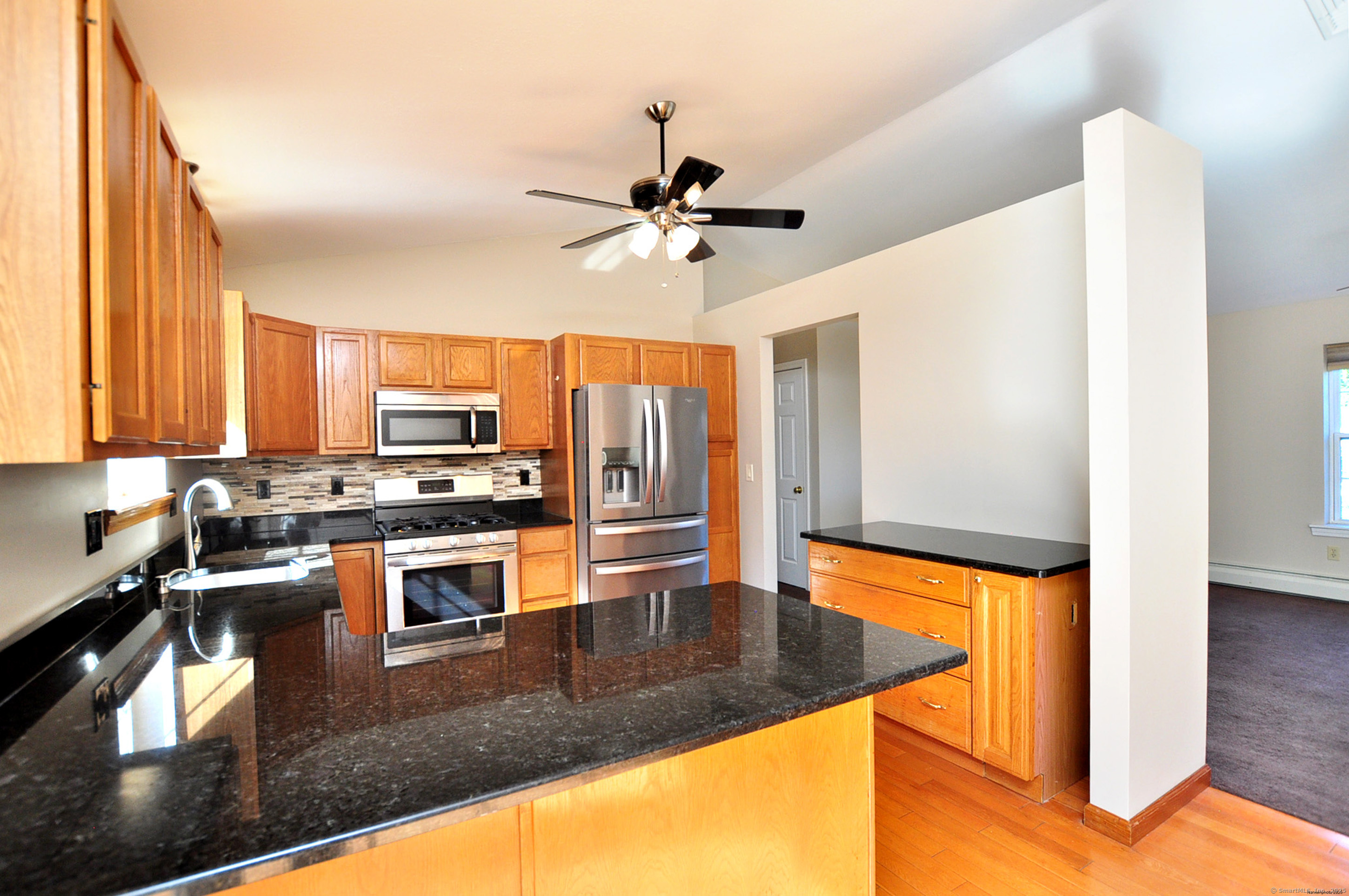 Prepare to be impressed with this pristine, three bedroom Raised Ranch and its open floor plan that will simply take your breath away. In the heart of this home, the stunning kitchen boasts an abundance of oak cabinetry, granite countertops, a breakfast bar, stainless steel appliances, gleaming hardwood flooring and a vaulted ceiling. The kitchen flows seamlessly into the inviting living room which offers a beautiful, bright picture window and a vaulted ceiling. Enjoy the ease and luxury of serving intimate and holiday dinners in the fabulous dining room, open to the kitchen and featuring hardwood flooring and a French slider that opens to the deck. At the end of your day, retreat to the comfort of the primary bedroom featuring a designated full bath with tile flooring. Two additional and spacious bedrooms and a second full bath complete the main level. The expansive, finished lower level, featuring a half bath, recessed lighting and a walk-out slider to the backyard, is perfect for a recreation room, private gym and a home office. The newer 10' x 20' deck, overlooking the park-like and level backyard, is the idyllic setting for hosting outdoor parties, summer barbeques or relaxing in your chaise lounge with your favorite novel. Tremendous value is found in the new roof, new Weil-McLain boiler, newer central air, low maintenance vinyl siding, fresh interior paint with modern colors, whole-house fan and 12' x 20' Kloter Farms shed. Come on...Let's take a look inside!