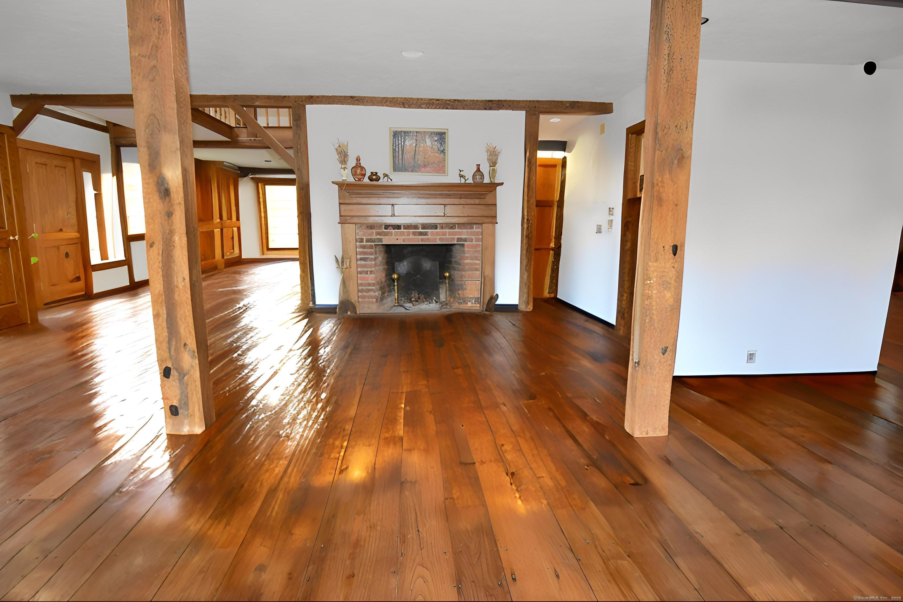 Come home to a unique 3082 sqft, one of a kind custom built Post and Beam home all set on 5 secluded acres. Featuring an open floor plan, beamed ceilings, wide oak floors, Plaster Walls, fully applianced Kitchen with breakfast bar, a spacious Family Room with brick fireplace, built-ins, & slider leading to back deck and Babbling Brook. The Living Room with fireplace is adjacent to a spacious Dining Room area & slider leading to large deck with access to large side yard. Enjoy your quiet time in the cozy Library with fireplace and built-ins. First floor also has an Office as well as a full Bathroom. As you ascend the stairs to the second floor you will marvel at the unique lighted brick archway. Second floor boasts of lovely Primary Bedroom Suite with brick fireplace & raised hearth, walk-in closets, Full Bath with tub, shower & vanities, and slider leading to balcony. Two other large Bedrooms with skylights, Full hallway Bathroom, and Laundry Room with utility sink. Lower level features an in-law/apartment, Storage Room & Mud Room with storage. Other amenities include intercom & central vacuum. This home has easy access to Woodbury's town center, shops, top restaurants, antiquing, and recreation with hiking trails & nearby lake. Enjoy all this property has to offer as well as the area!