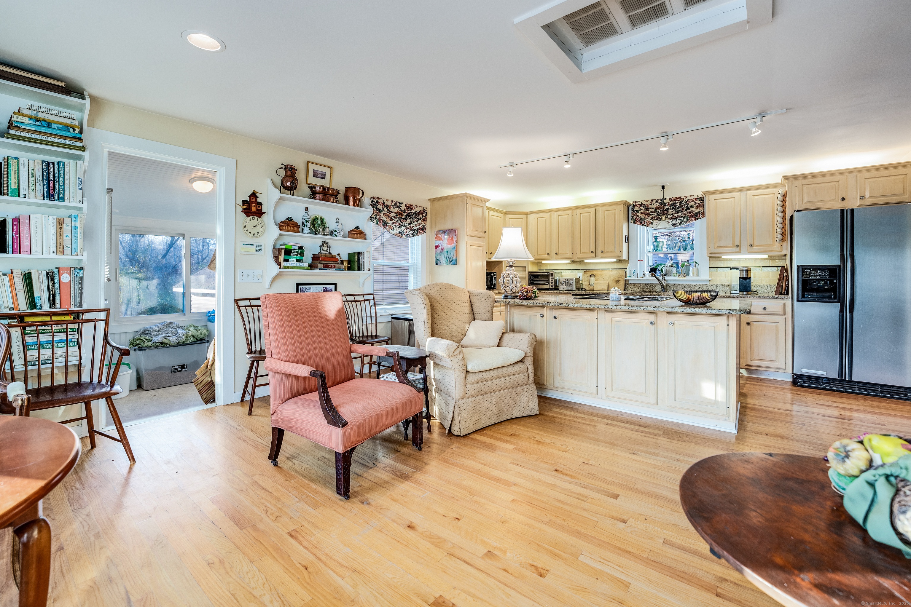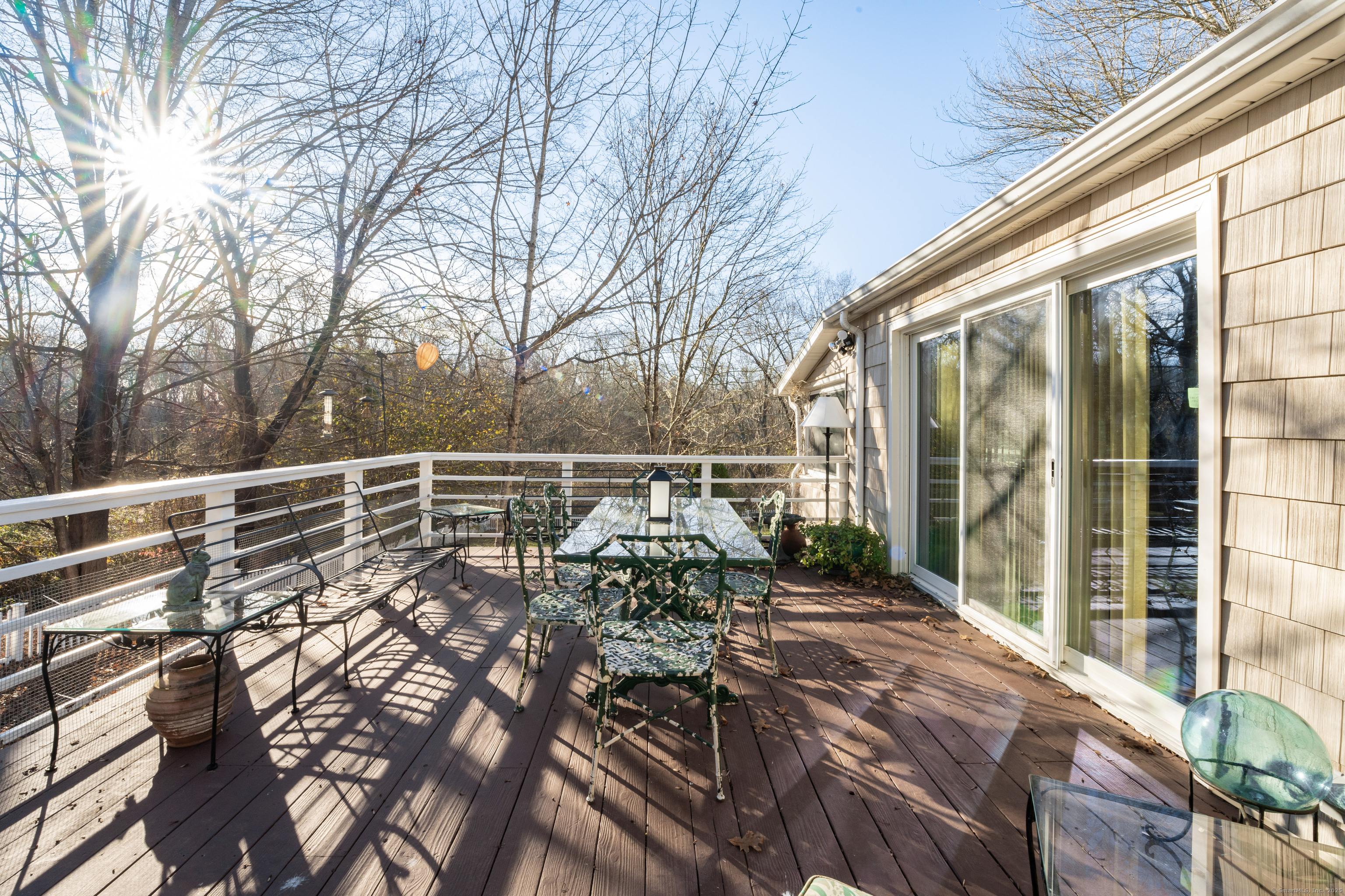 One floor living in this Charming ranch home with open floor plan. Huge eat in kitchen with breakfast bar and slider to the deck. Large primary bedroom with slider to the deck. Extra room could bedroom or office. Bathroom has double sinks and washer/dryer. Huge fenced in yard and garden area. Central air and mudroom complete this home.