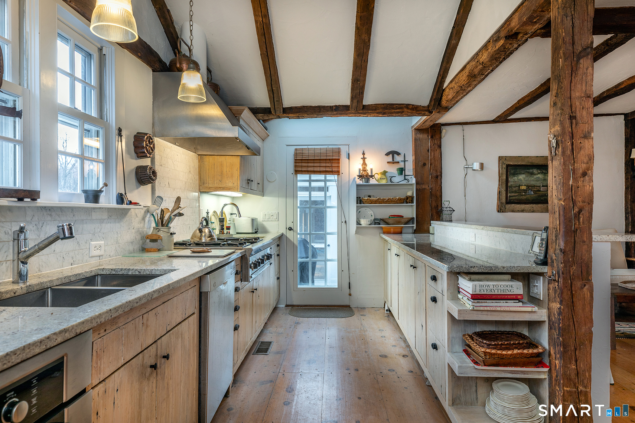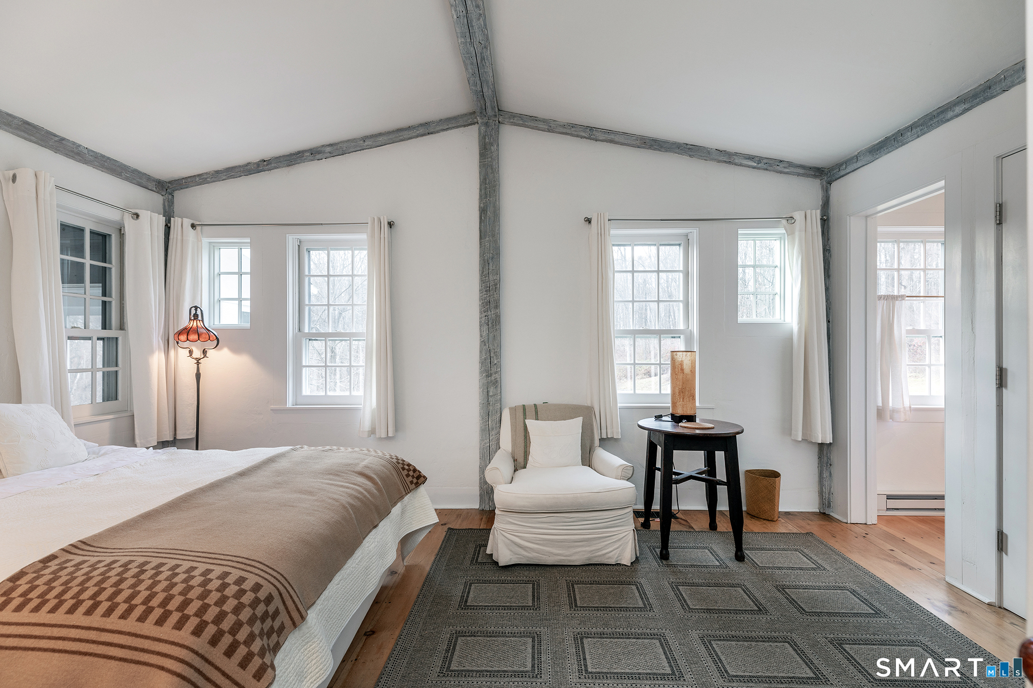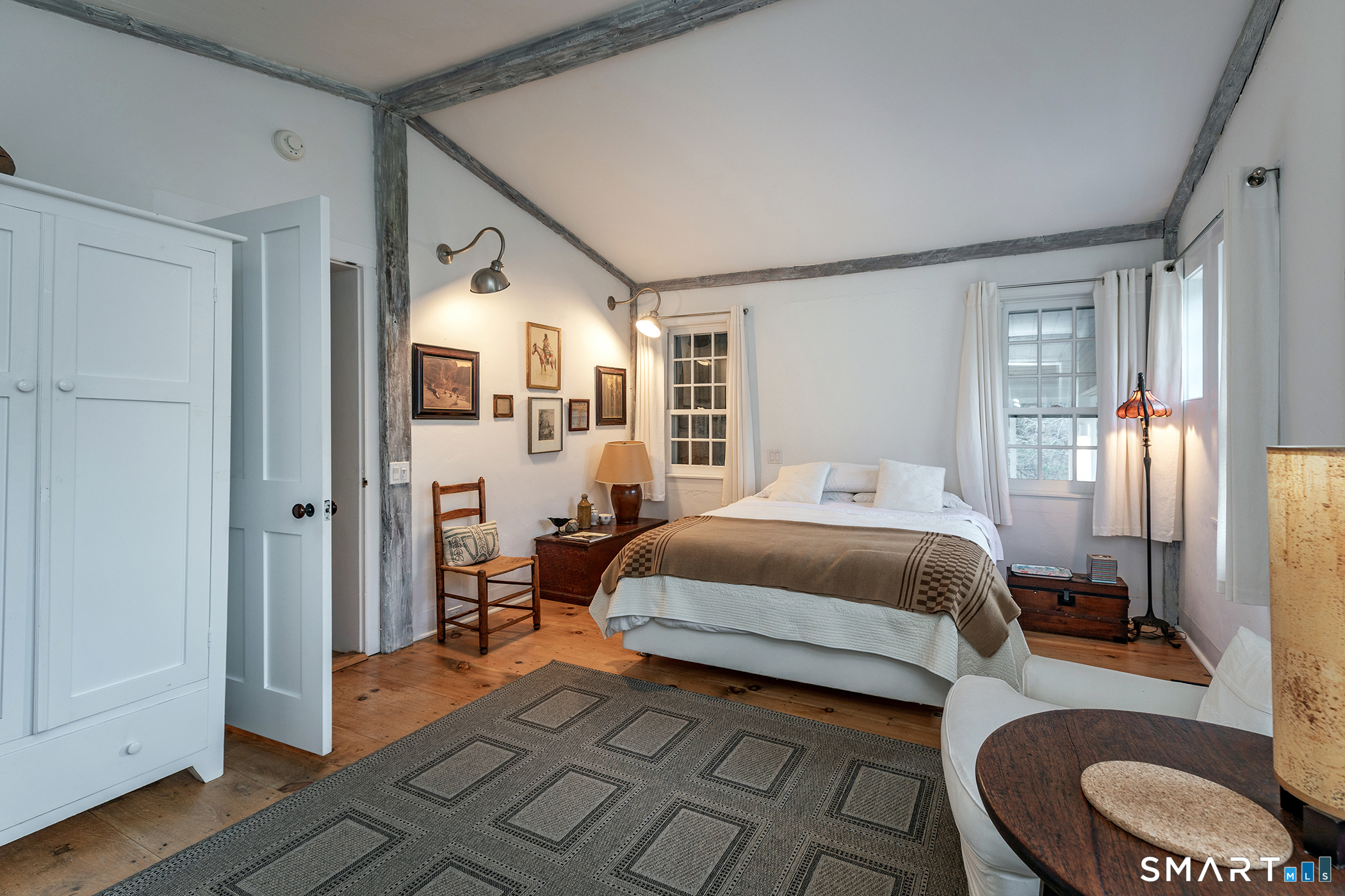 Rarely available. 1880 antique gem on 10 acres, with a first level primary bedroom and bath, situated on one of Bridgewater's most prestigious and quiet roads, offering a private setting. This residence masterfully blends historic character with an airy, open floor plan where the kitchen flows seamlessly into a spacious great room and a formal living room anchored by a classic fireplace. The interior living space consists of a main floor primary bedroom and bath, second level with 2 bedrooms and shared bath and a third level bedroom with it's own bath. The spaces transition beautifully to a 24 x 18 screened porch with slate flooring, opening onto a bluestone terrace. Perfect for entertaining, the terrace overlooks the pool and captures western exposures. The property is further enhanced by a two-story barn, providing ample space for storage or workshop. This is a unique opportunity to own a quintessential New England retreat in a premier location.