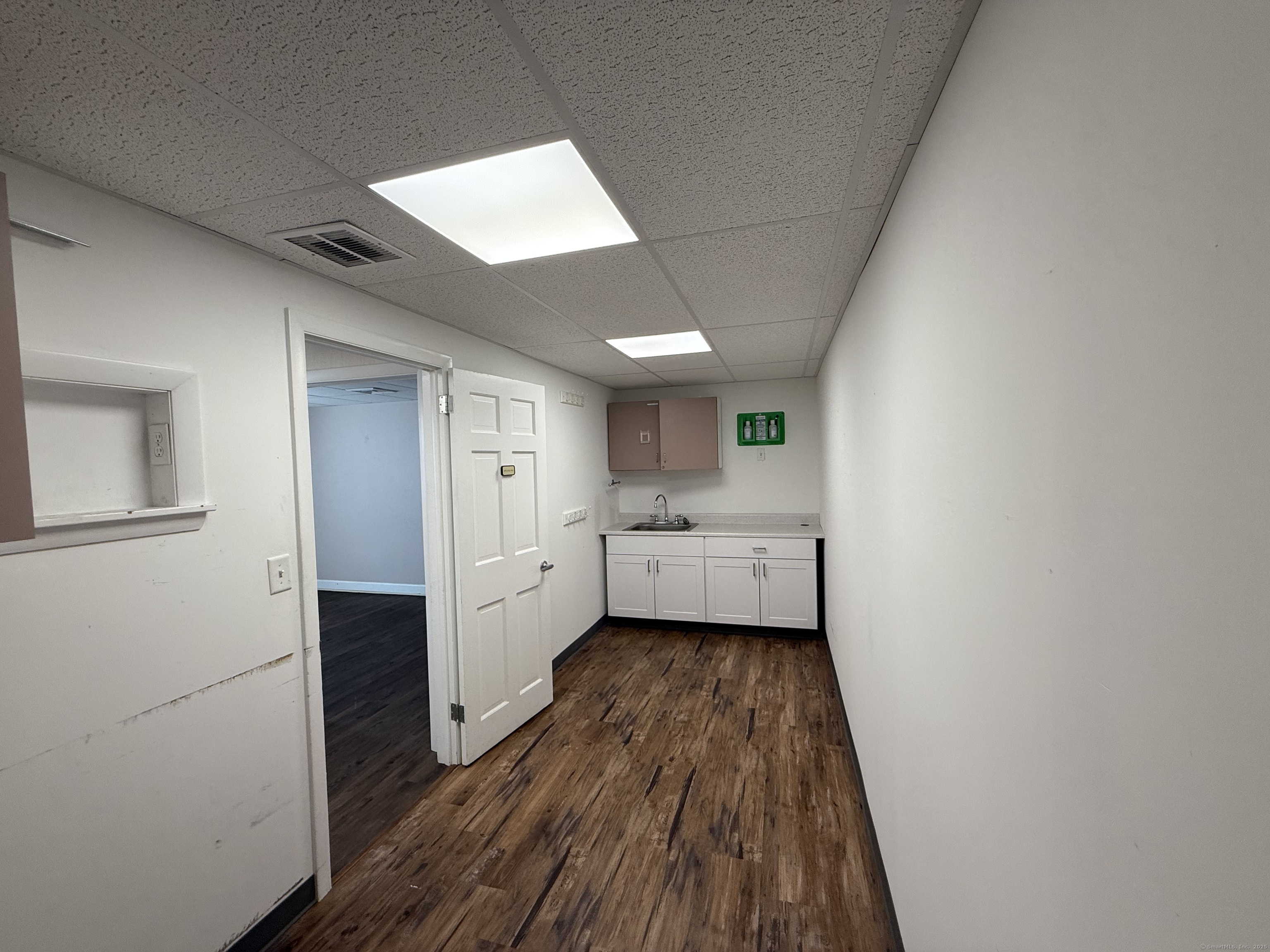 This prime office condo, located on busy Route 83/Main St in Manchester, offers an excellent opportunity to lease a versatile commercial space in a high-traffic area. Spanning 1,509 sq. ft., the first-floor unit features a central reception area, five therapy rooms or offices (three of which include sinks), a restroom, and a kitchenette/storage room with a sink. Gas heat, city water, and sewer services are included. Ample on-site parking ensures convenience for both staff and clients, and the space is fully accessible, featuring an elevator and a handicap lavatory. Previously utilized as a sleep lab for a medical office, this space is move-in ready and adaptable for various professional uses, including medical, dental, therapy, legal, accounting, and more. Constructed with solid cinderblock, the building provides excellent insulation for energy efficiency. It also includes a private rear exit for added convenience. Situated just 1/4 mile from Manchester Memorial Hospital, this office enjoys excellent visibility and easy client access.