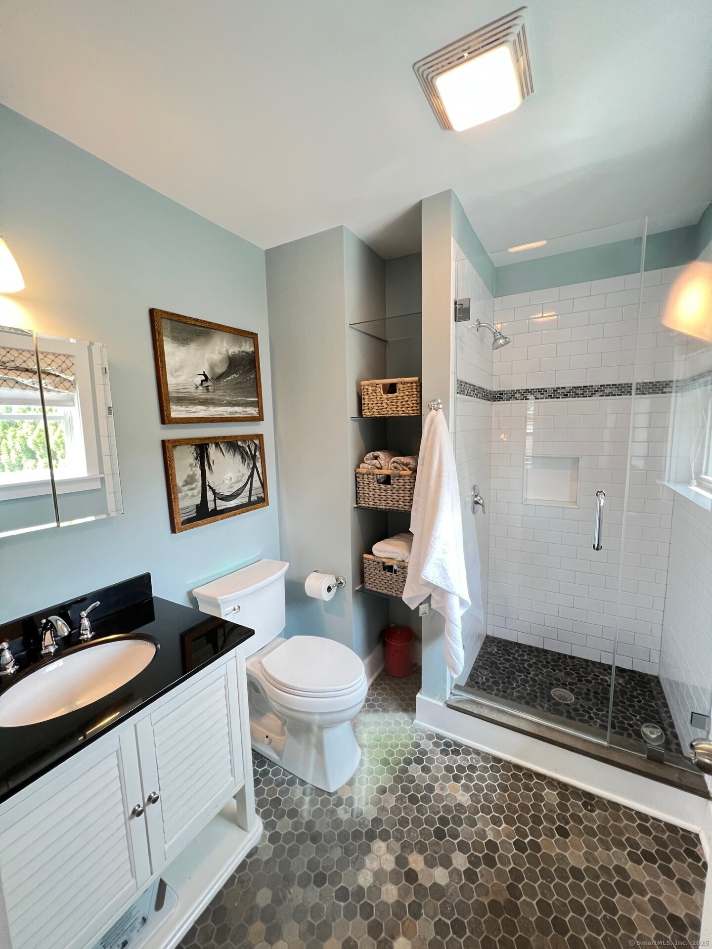 TURNKEY SUMMER RENTAL IN OLD GREENWICH AVAILABLE FROM MEMORIAL DAY UNTIL LABOR DAY. Pristine 4BD/3.1 BA house in a charming neighborhood very close to the beach and the quaint village of Old Greenwich with restaurants, shops, train and parks. A fully equipped chef's kitchen w/breakfast nook and Family Room provide the perfect combination of function and enjoyment. The open LR/DR provides additional entertaining space, as does the screened-in porch, adjoining patio with a gas grill and large fenced backyard with sports gear/games provided! The lower level has a home theater w/a 10' projection screen and cozy sectional to hang out for movies or games. Upstairs the Primary BD (w/exercise bike) has a large spa-like bathroom and a private deck for morning coffee or evening cocktails. Three additional bedrooms include one with an adjoining bathroom, another BD that could be bunk beds or two twin beds, another full bathroom and a laundry room complete the upstairs. The house comes with bikes, beach equipment, yard games, excellent Wi-Fi and much more!
