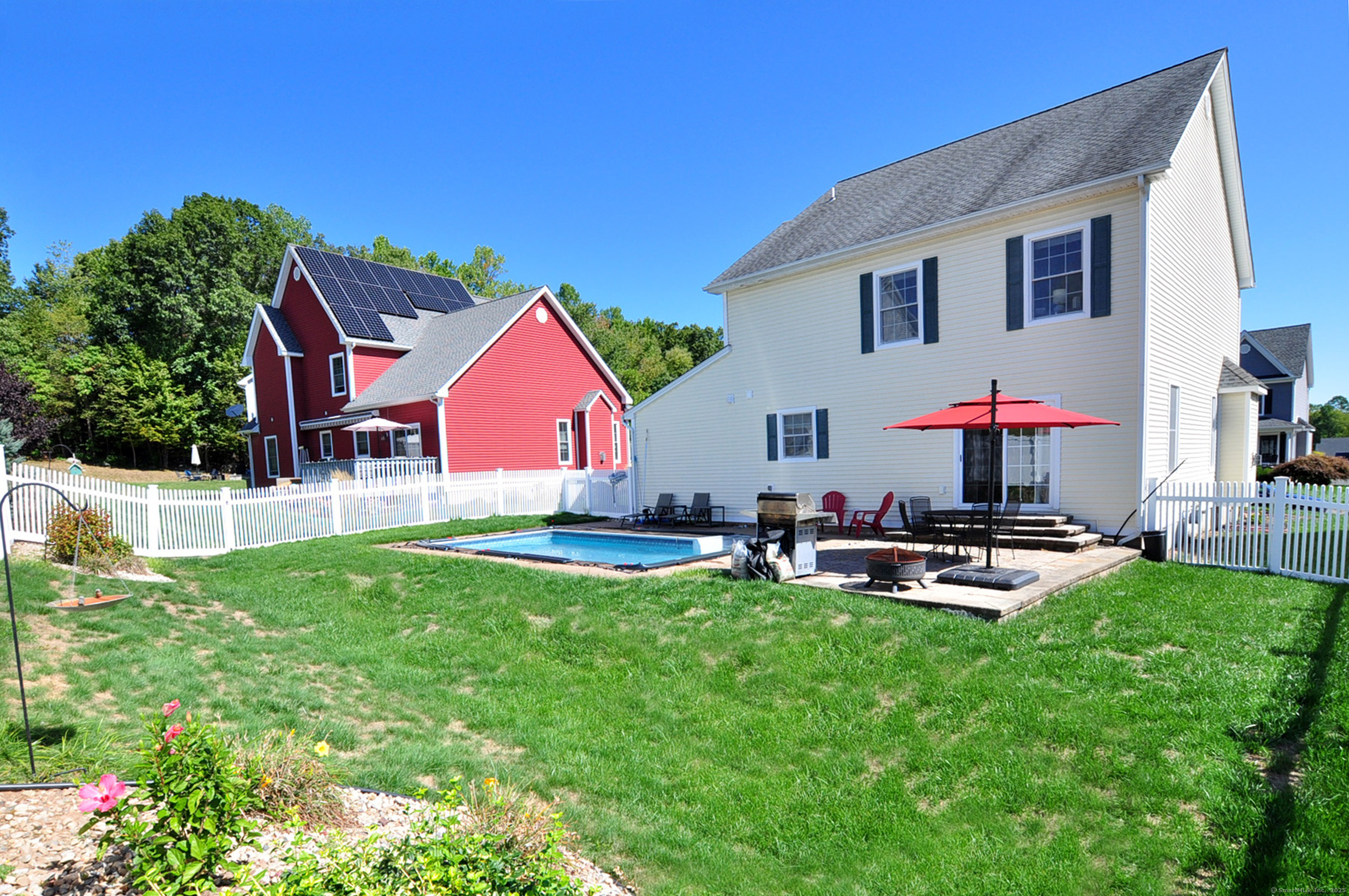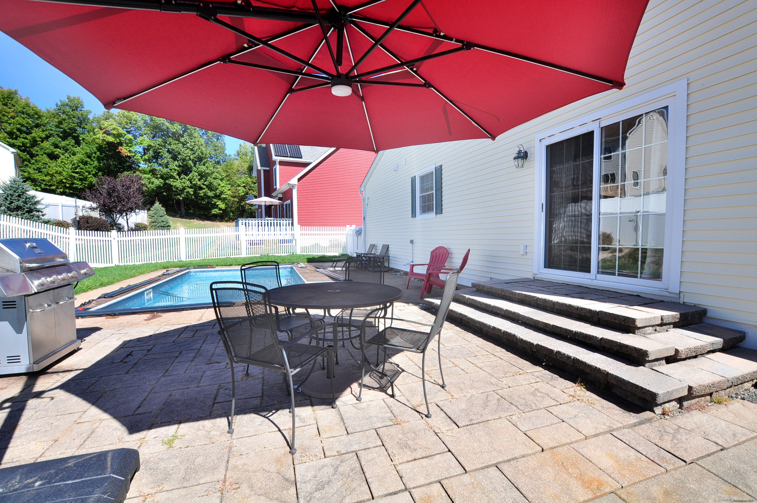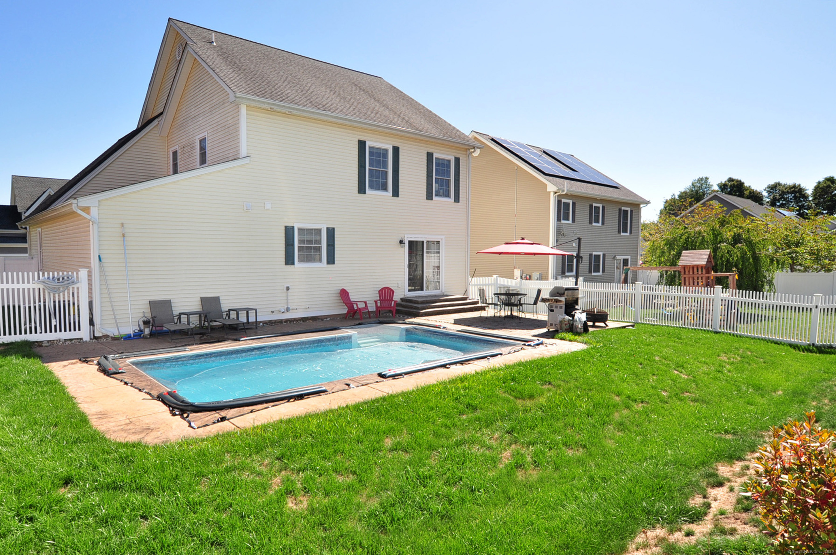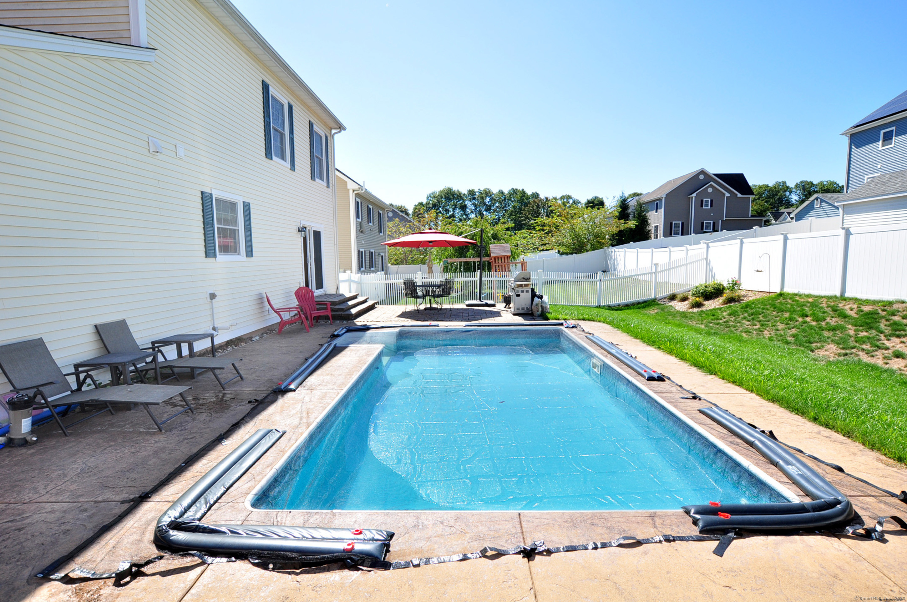 WOW! Welcome to this stunning 3-4 bedroom colonial located in the highly sought-after Samuel's Crossing subdivision. Nestled at the end of a quiet cul-de-sac, this spacious Carrier-built home offers over 2,000 square feet of beautifully maintained living space with an open-concept layout designed for both comfort and style. From the moment you pull into the large two-car garage, you'll feel the sense of security and pride of ownership that this home includes. Step through the front door into a sun-soaked, oversized living room featuring gleaming hardwood floors and a cozy gas fireplace-an ideal space for entertaining or simply relaxing at home. The living area flows seamlessly into the well-appointed kitchen, complete with granite countertops, abundant cabinet space, and sliding doors that open to a private backyard oasis. This property is one of the few in the neighborhood that boasts its own inground pool-perfect for hosting gatherings or enjoying peaceful summer days. Upstairs, the home offers a spacious primary suite highlighted by elegant tray ceilings, along with two additional bedrooms that are generous in size and filled with natural light. The fully finished basement adds incredible versatility, featuring a separate bedroom, bathroom, and living area with walkout access to the garage-making it perfect for guests, in-laws, or a private home office. Added feature the central air system was recently replaced, adding to the comfort and value of this move-in-ready hom