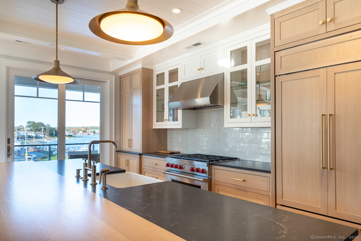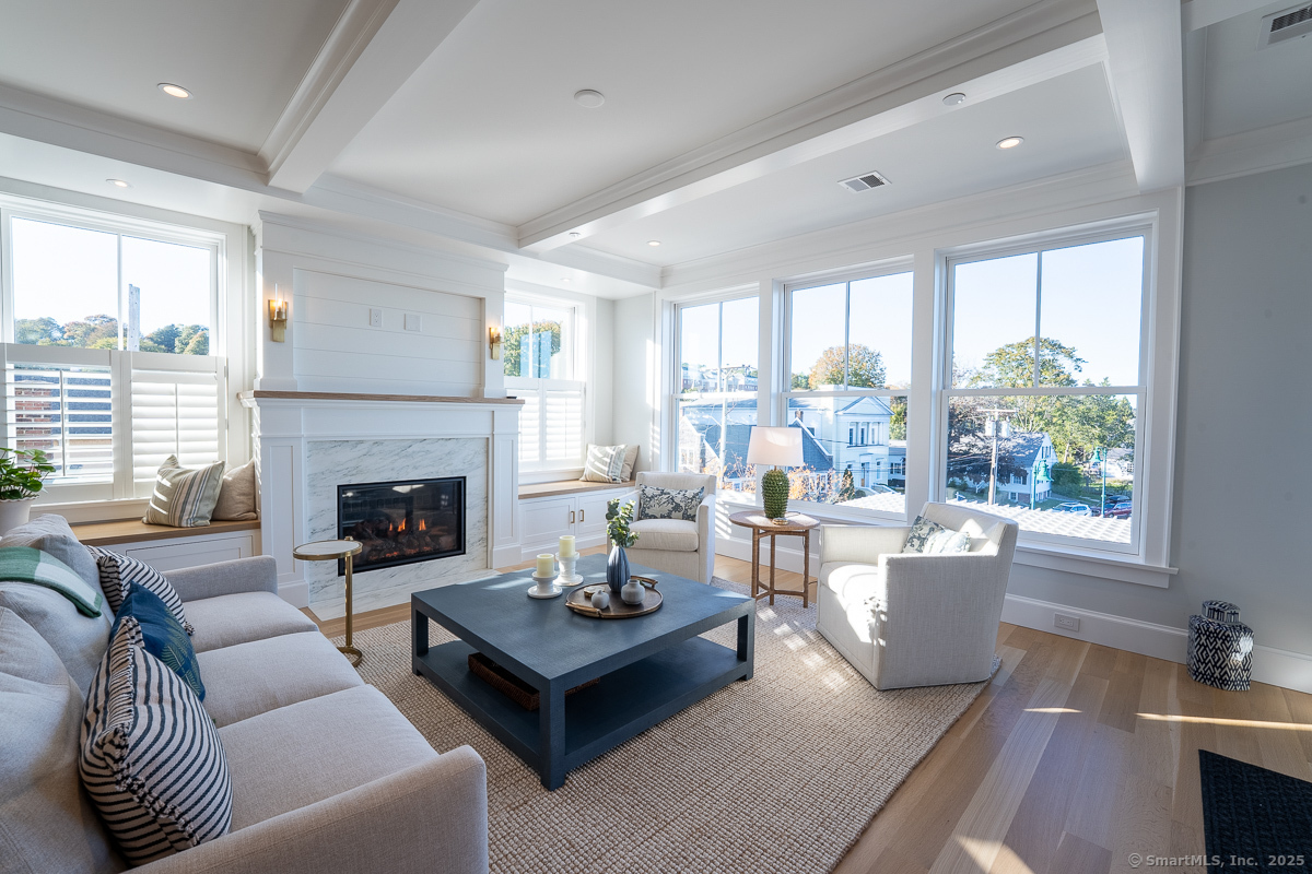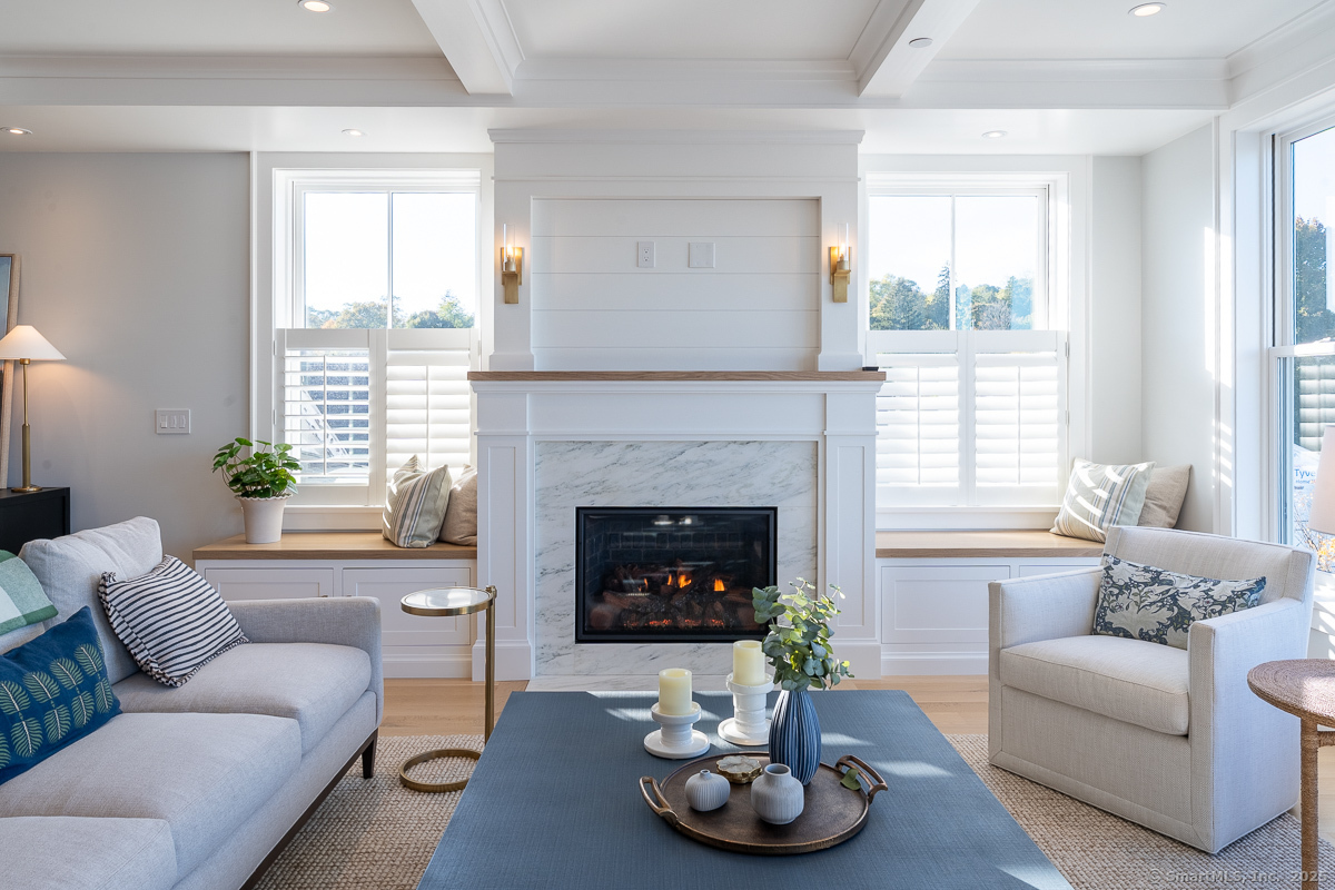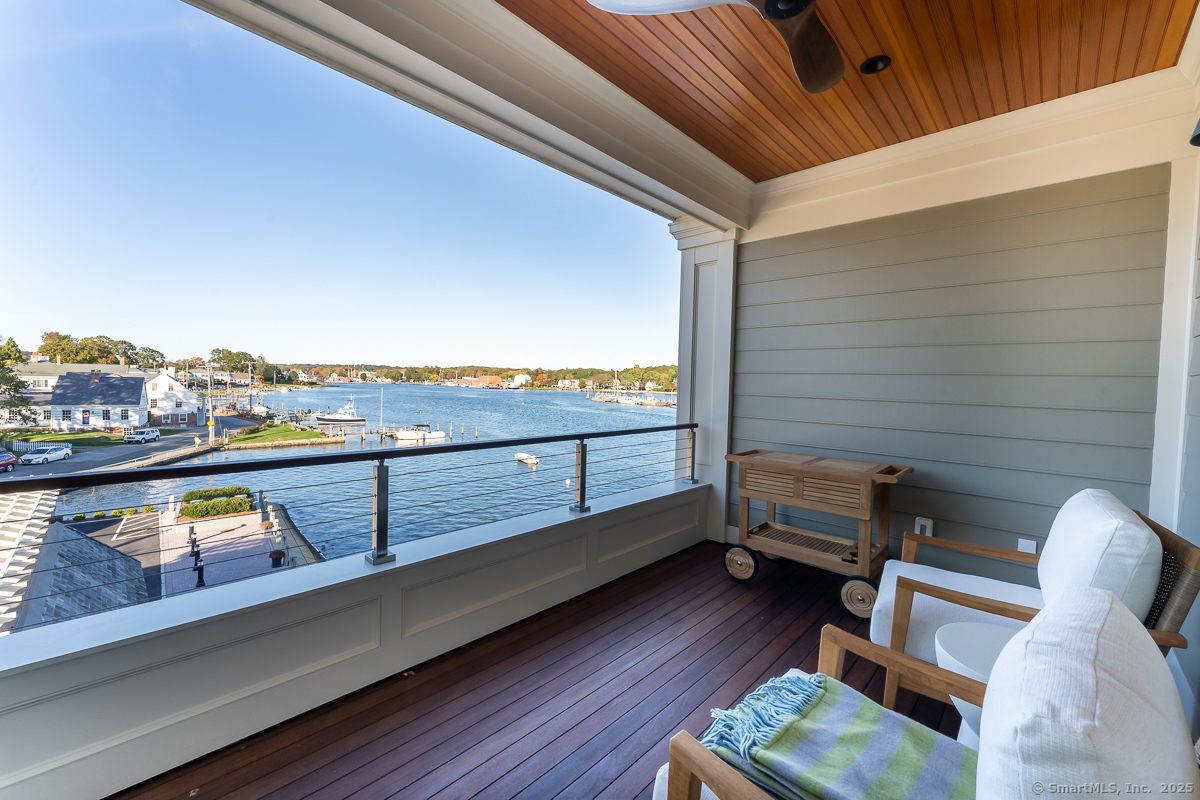 Welcome to Central Hall, where modern design meets the charm of Mystic's vibrant downtown. This nearly completed waterfront and end unit condominium offers breathtaking Seaport views and 1,735 square feet of thoughtfully curated, light filled space. Wide-plank rift and quarter-sawn white oak flooring, crisp modern paint tones, and contrasting light oak finishes create a striking yet inviting aesthetic. Dramatic stone surfaces and bold tile accents add depth, while modern brass fixtures and clear crystal door knobs on painted doors bring refined detail. The open-concept living area features a gas fireplace, flows into a chef's kitchen with custom cabinetry, a Wolf six-burner range, and a SubZero refrigerator. The generous open living area allows you year round entertaining while a private balcony is perfect for spring, summer and fall enjoyment. The primary suite boasts a "California Closets" walk in closet adjacent to spa-like bath with soaking tub and walk in shower. A flexible den, with adjacent full bath, and two ensuite bedrooms offer ample space. With two dedicated parking spaces and private floating dock access, this is one of the final opportunities to own in this unique waterfront residence. Experience the best of Mystic living. Targeted for May/June completion. Surfaces may be covered/protected during early showings. UNIT 3 COMPLETE AND READY FOR 30 DAY CLOSING.