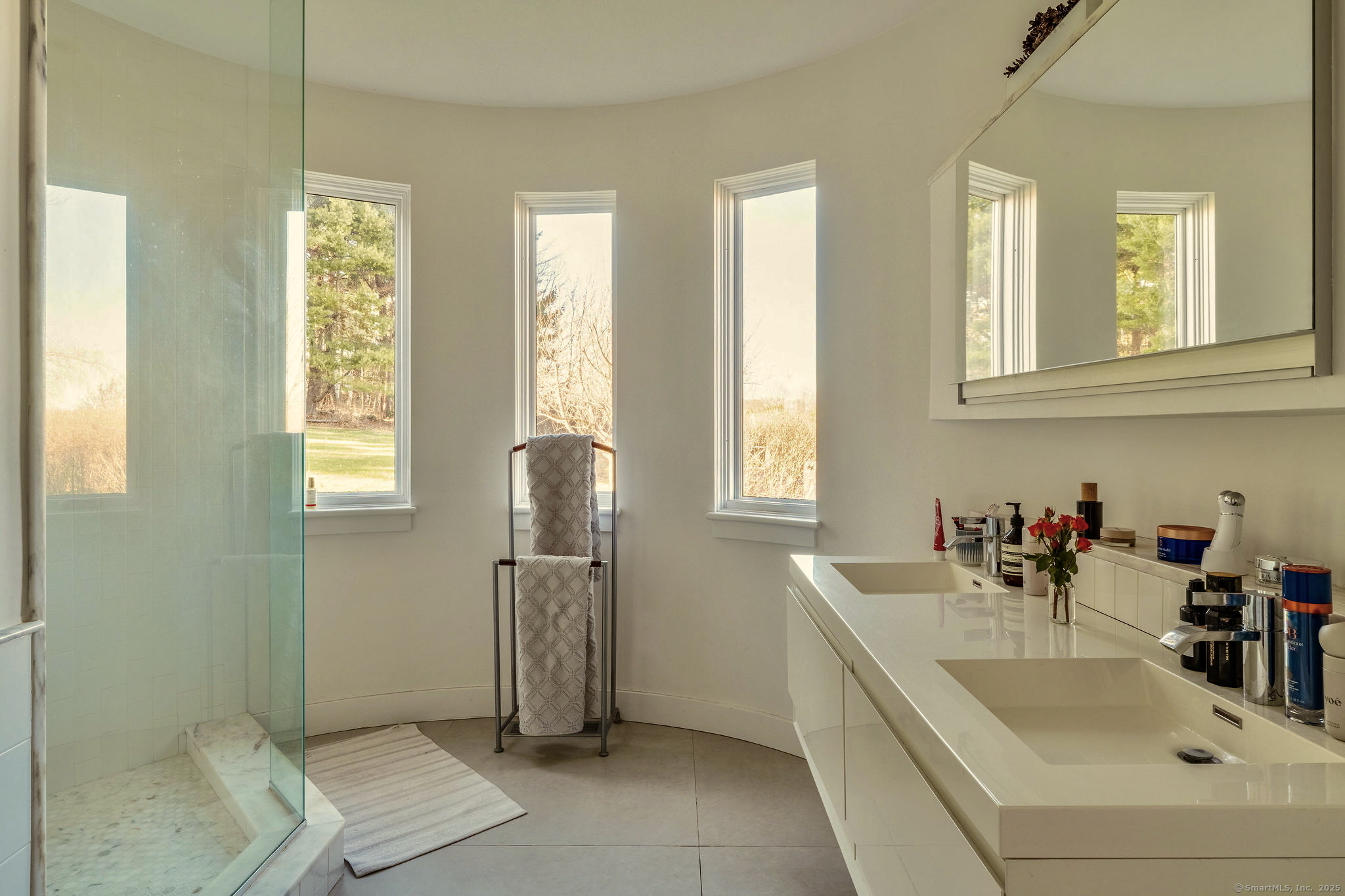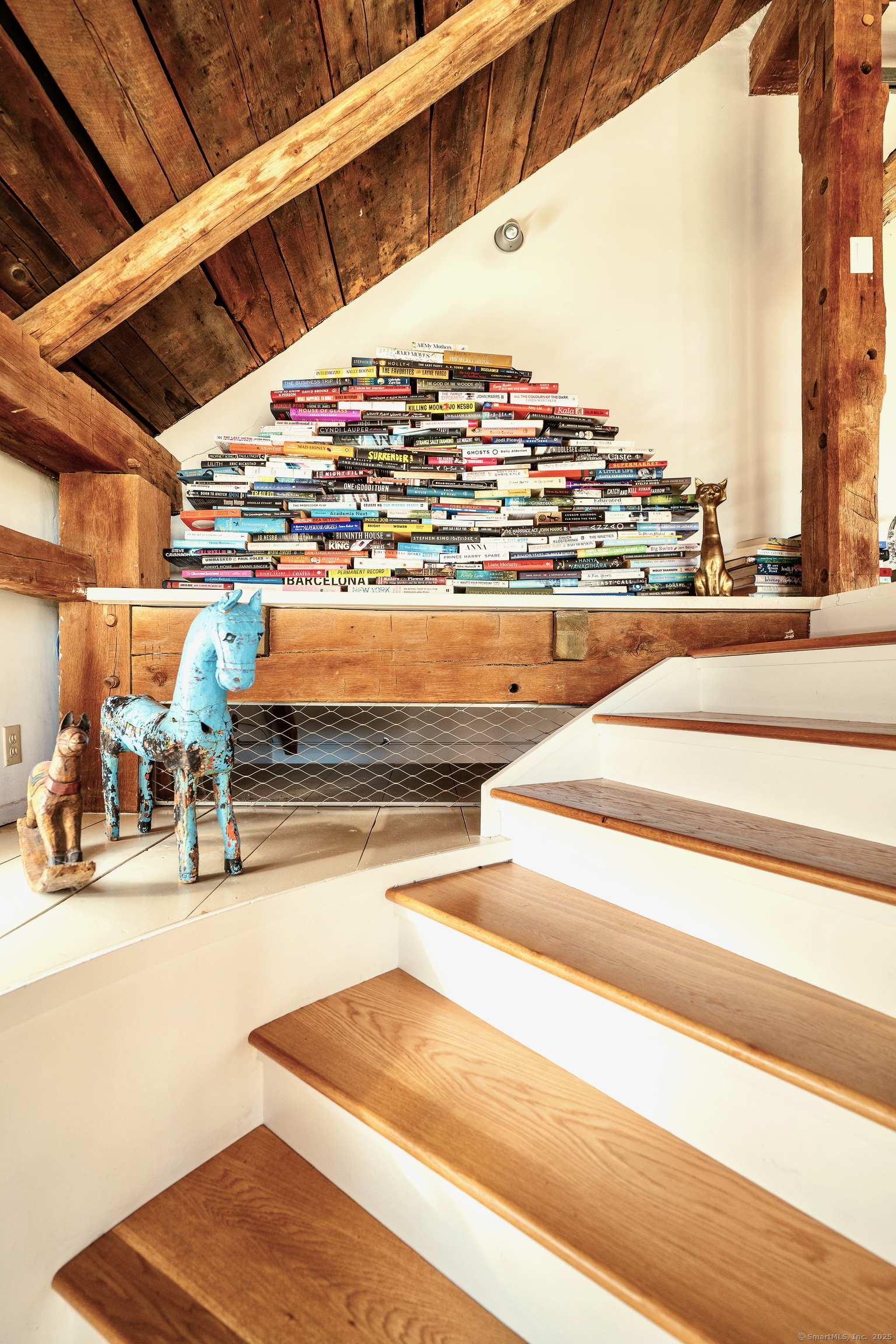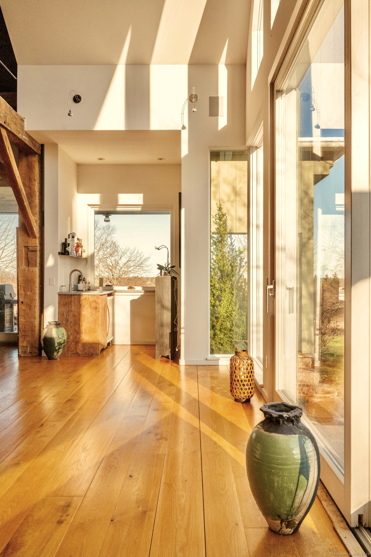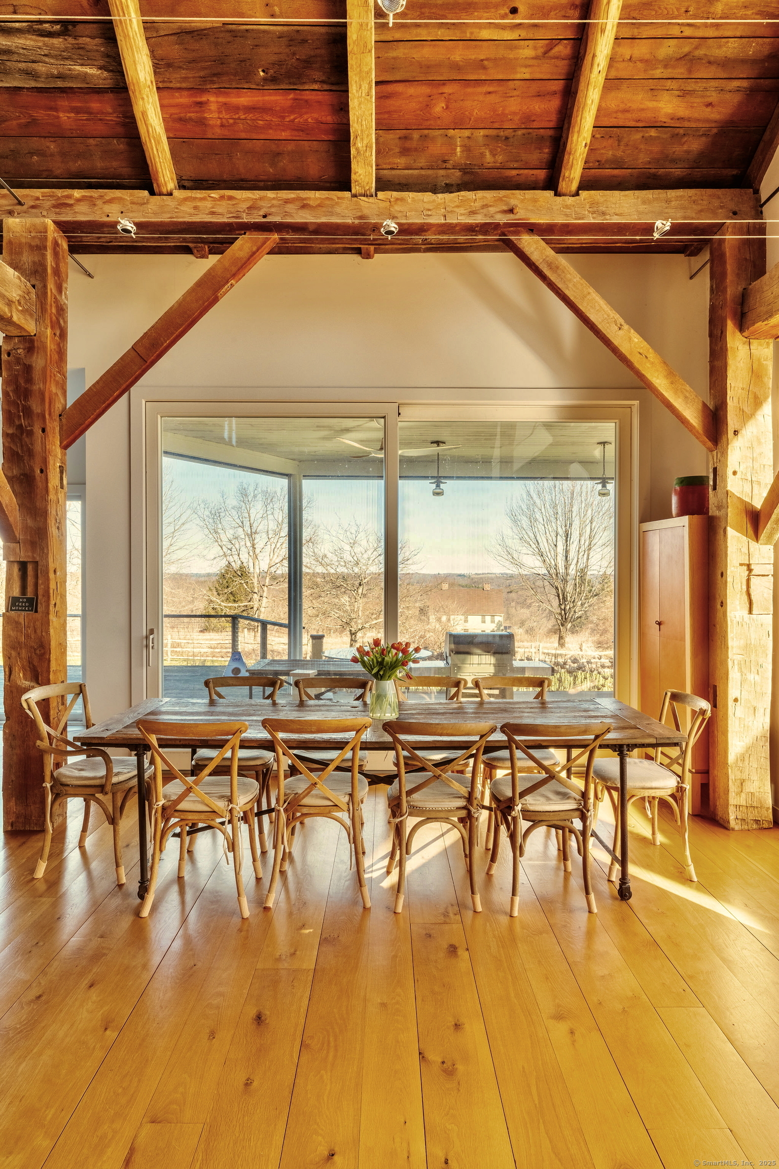 Academic-Year Rental | September-June | $8,500/month | Fully Furnished At the end of a winding country drive, where tall pines rise like quiet sentinels and sunlight filters through branches, the Bantam Barn reveals itself-set high on a hill, completely hidden from view. This exceptional long-term rental blends the soul of a 19th-century barn with the ease and elegance of modern living, offering a rare opportunity to dwell in both history and comfort. Thoughtfully restored and architecturally reimagined, the home features reclaimed barnwood, antique hand-hewn beams, and wide-plank floors throughout. Natural textures are paired with clean lines and contemporary finishes, creating interiors that feel both grounded and luminous. The heart of the home is a dramatic great room with soaring ceilings and a fieldstone fireplace, surrounded by walls of windows that frame views of the surrounding woods. The sleek, modern kitchen is outfitted with integrated appliances, double ovens, an induction cooktop, and a massive island-ideal for both daily rituals and entertaining. Just beyond, a sunken den/TV room provides a cozy, informal space to unwind.