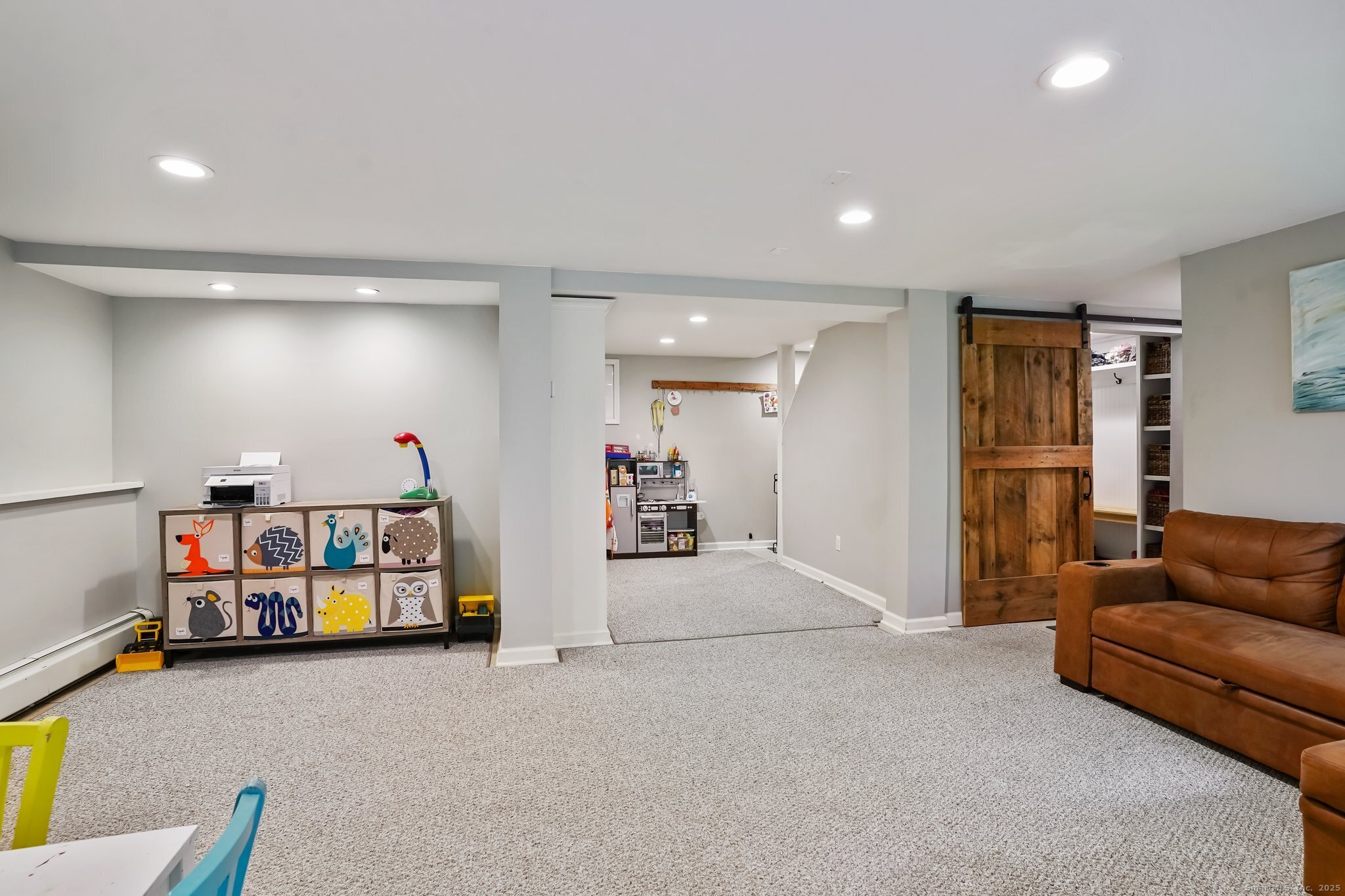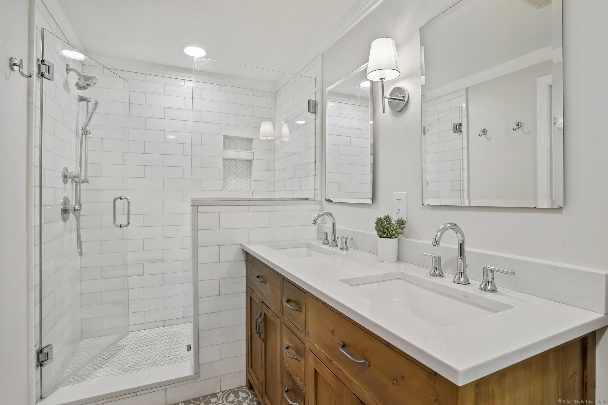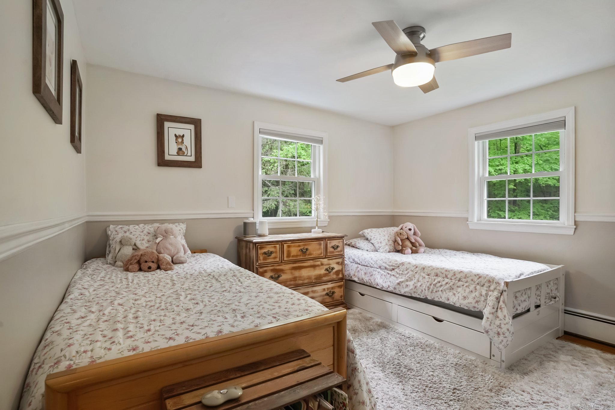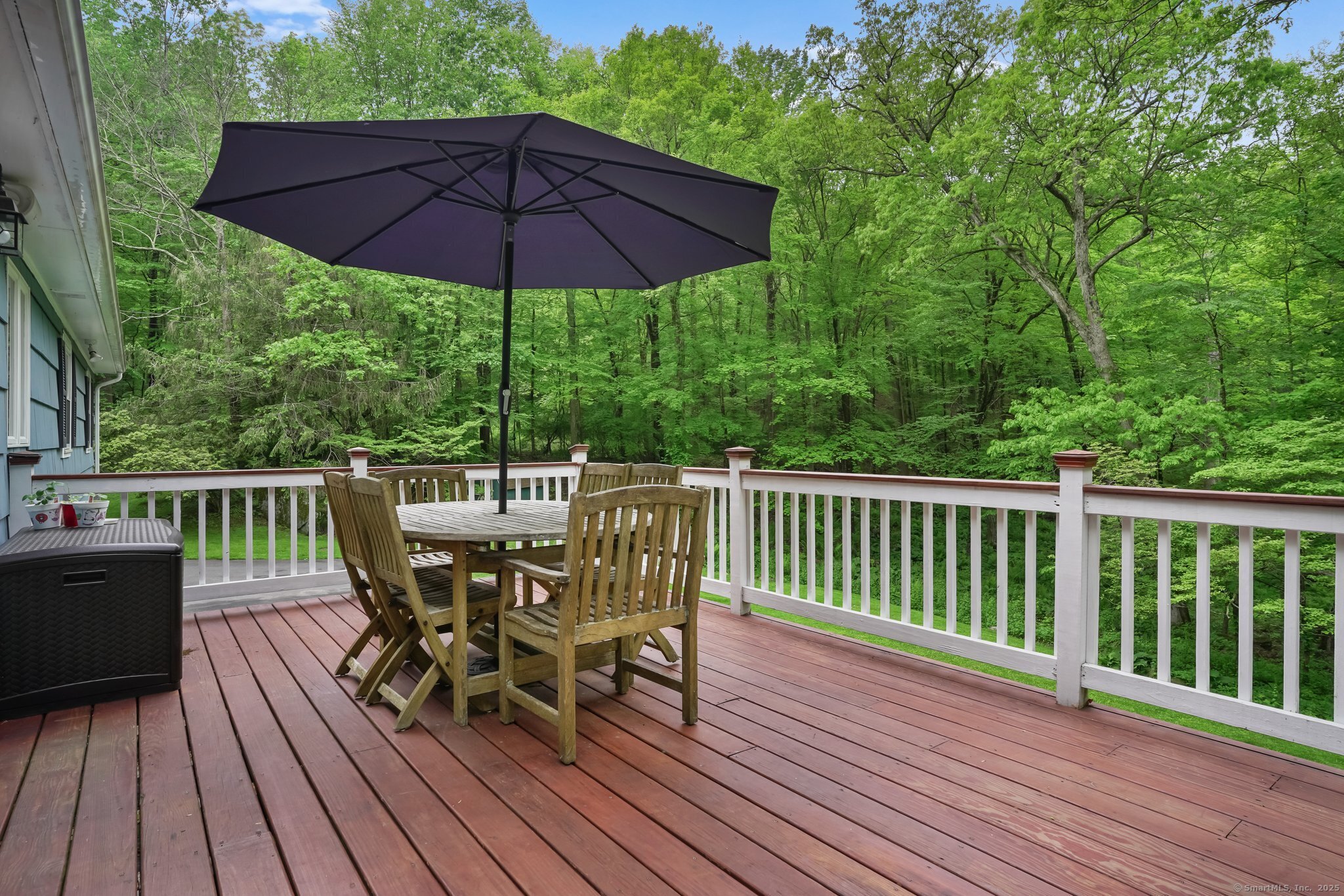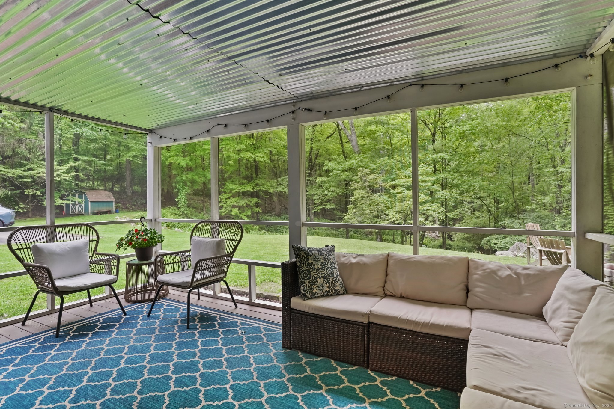 Welcome to this beautifully updated 3-bedroom, 2.5-bathroom ranch home, nestled on 1.12 acres, and located on a picturesque, scenic road in Ridgefield. This light and bright home offers the perfect blend of comfort and convenience. Just moments away from Branchville, you'll have easy access to the train station, elementary school, local restaurants, and shops. Step inside and you are greeted by the light-filled living room with fireplace and the dining room, perfect for everyday gathering and dining, yet spacious enough for entertaining. The fully renovated kitchen features a large island with seating, quartzite counters, a farm sink, top-end appliances, white cabinetry, a pantry closet, and under-counter lighting. Sliding doors lead you to the deck overlooking the stunning and private back yard, with a cozy fire pit, stone outcroppings, mature trees, and a level lot bordering a nature preserve available for hiking and exploring. Primary bedroom features built-in wardrobe cabinetry, an en-suite bathroom with double sinks, a large walk-in shower, and modern cabinetry. Two bedrooms and a full hall bath complete the main level, featuring spacious closets and hardwood floors. Downstairs, the finished lower level provides a family room/playroom, half bathroom, laundry, mud room with custom cabinets, mechanical rooms, sliders to a screened-in porch, plus a two-car garage and an electric charger. Minutes away from Ridgefield restaurants, shopping, arts & culture.