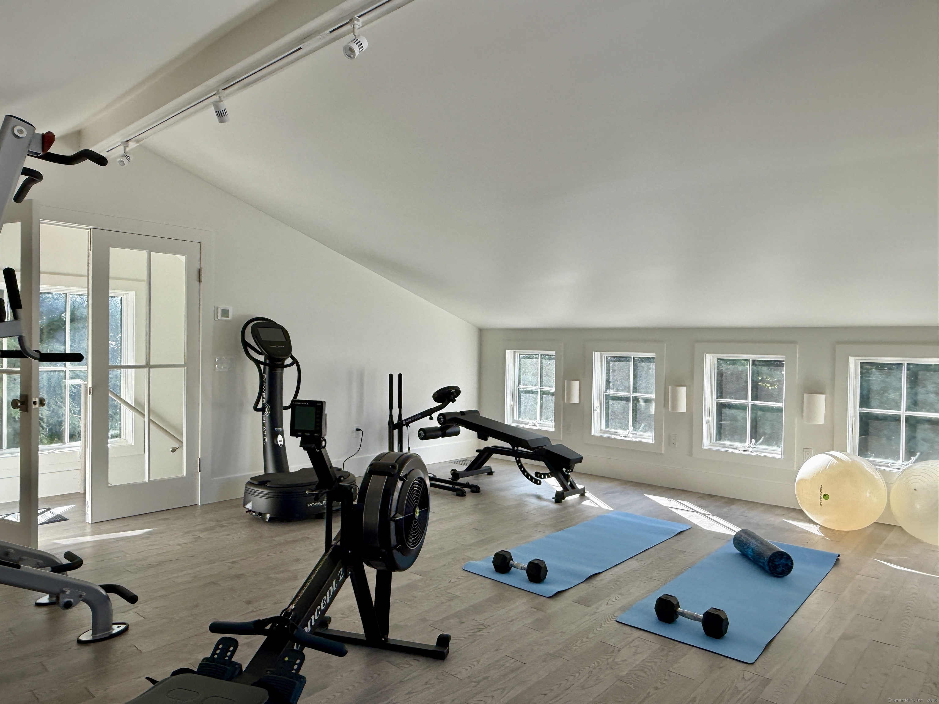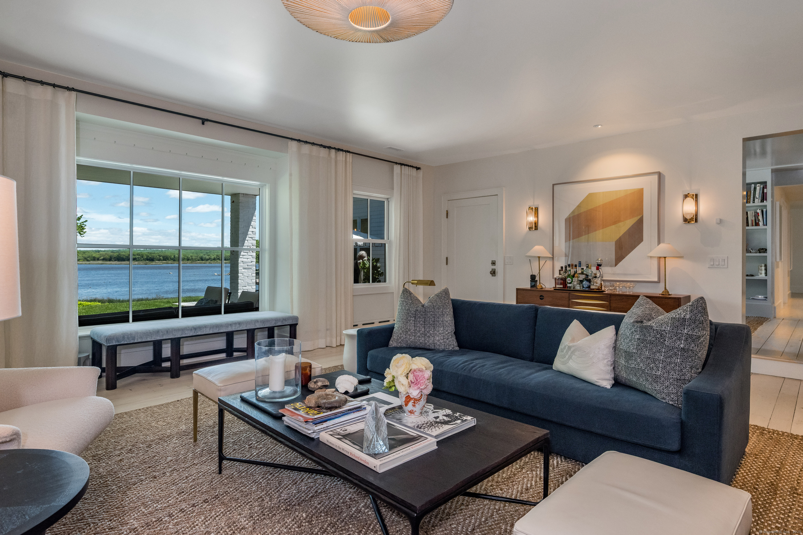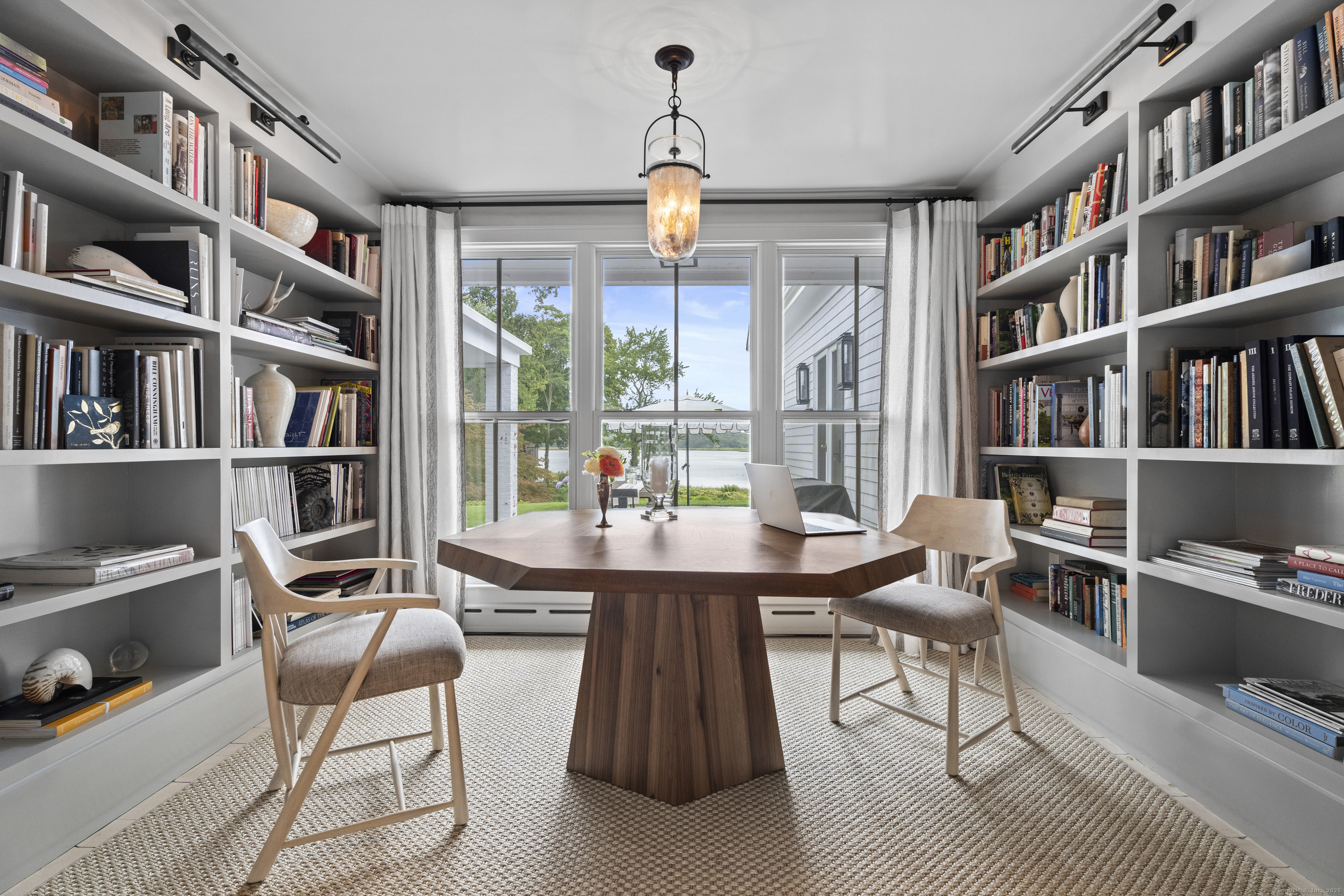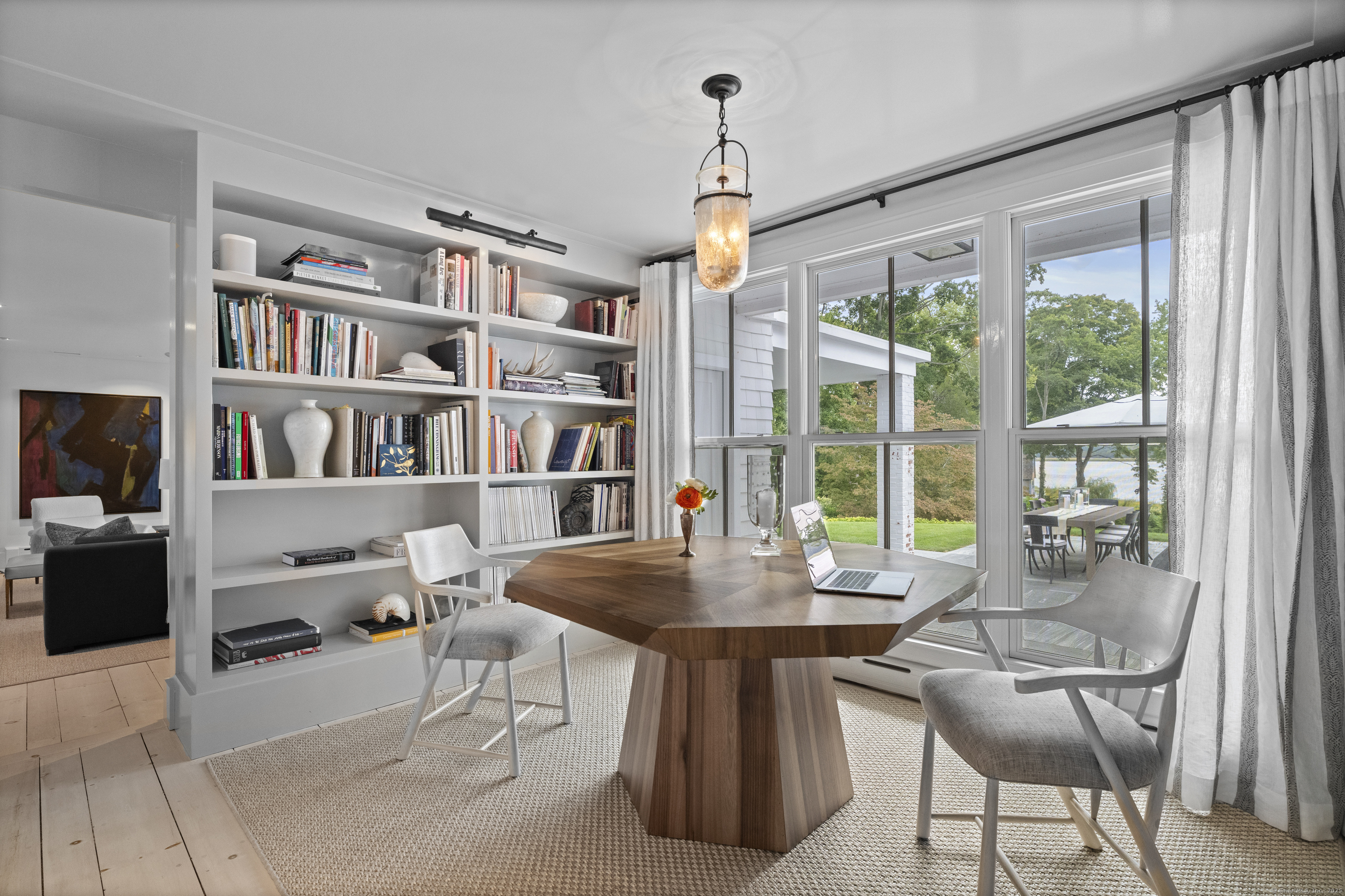 Fresh Update for a Classic Connecticut Home - Discover a beautifully restored 1955 waterfront classic. Stunning panoramic water views, privacy and walk-to-town convenience. Ascend to the family room, crowned with cathedral ceilings and expansive windows that invite the breathtaking views of the Connecticut River. A Danish gas fireplace adds a touch of sophistication, creating a cozy yet chic atmosphere year-round. At the heart of the home lies a vast chef's kitchen, a culinary masterpiece equipped with top-tier appliances and exquisite millwork by a master craftsman, ensuring both style and functionality. There is a butler's pantry, an elegant paneled library with water views, as well as an outdoor shower in the garden. The entertainment quotient soars in the spacious playroom, complete with a vaulted ceiling, a chic bar, and a sub-zero wine cooler, setting the stage for memorable games of ping pong and billiards. This riverside haven is graced with two large, sumptuous en-suite guest rooms. An entirely new primary bedroom suite was added to the original house in 2021. Gorgeous views from the primary bed as well as an extra-large dressing area and jaw-dropping primary bathroom with vaulted ceilings. Part of the restoration and renovation was the addition of a sleek new garage, housing a gym designed to cater to the wellness-minded.