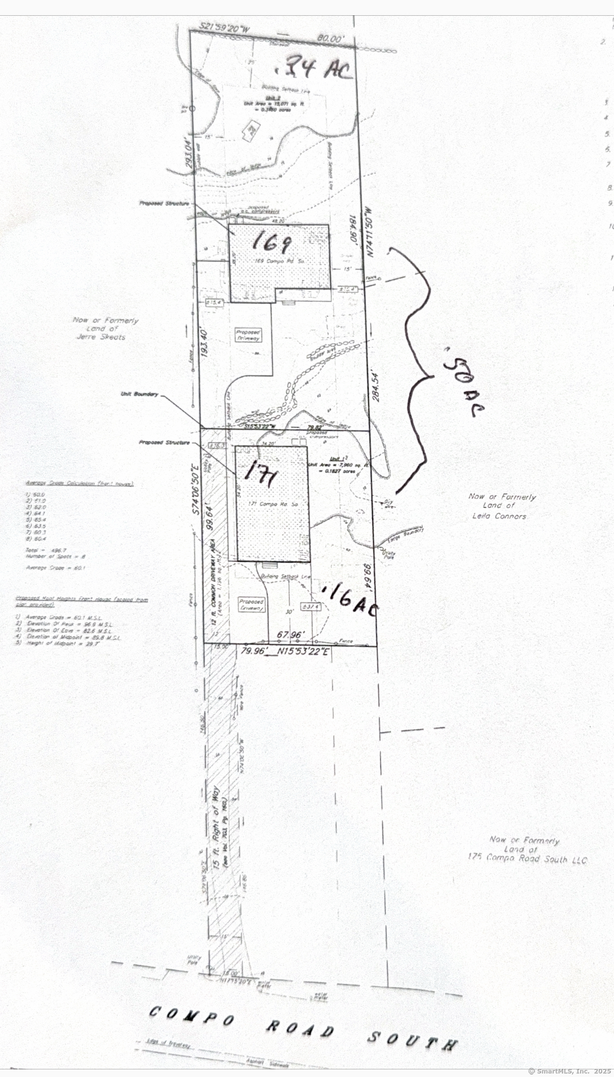 REDUCED! Stunning 3800+SF of new construction, tucked well away from the road offering a private setting on a .50 acre parcel with REMARKABLE potential. Offering fabulous proximity & convenience to Saugatuck train, Longshore town-golf club, Compo Beach and Downtown all via sidewalks. Together, 171 & 169 Compo Rd. S. make up a .50 acre and offer a NEW house, with potential for a pool and separate guest house. The original (torn down) homes at 171/169 were built prior to Planning and zoning existing and allows for 2 completely separate single family structures on the .50 ac, that are able to be sold separately. Note: 171 Compo is being marketed separately on .16 ac. and offered at $2395,000. see MLS #24094300.