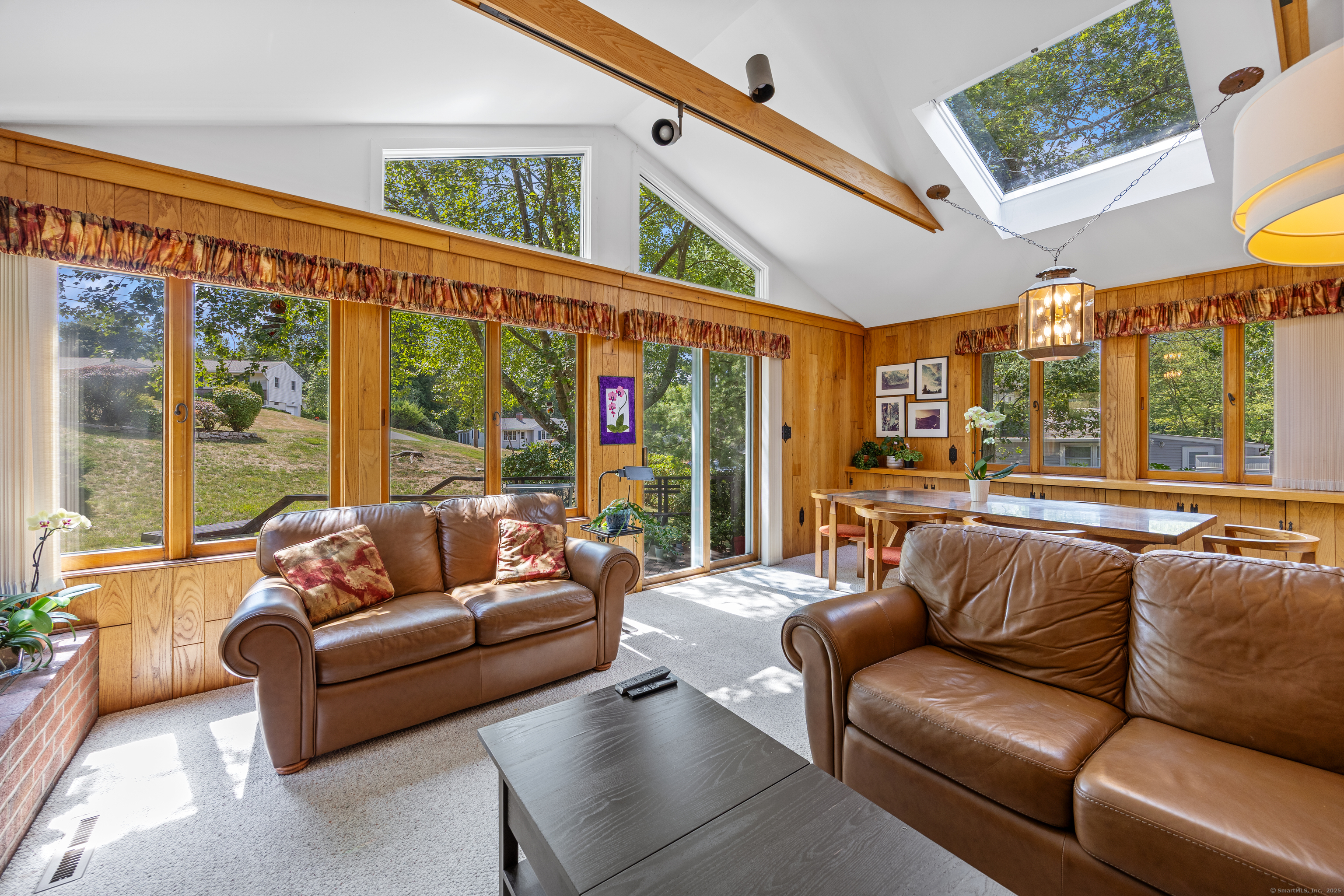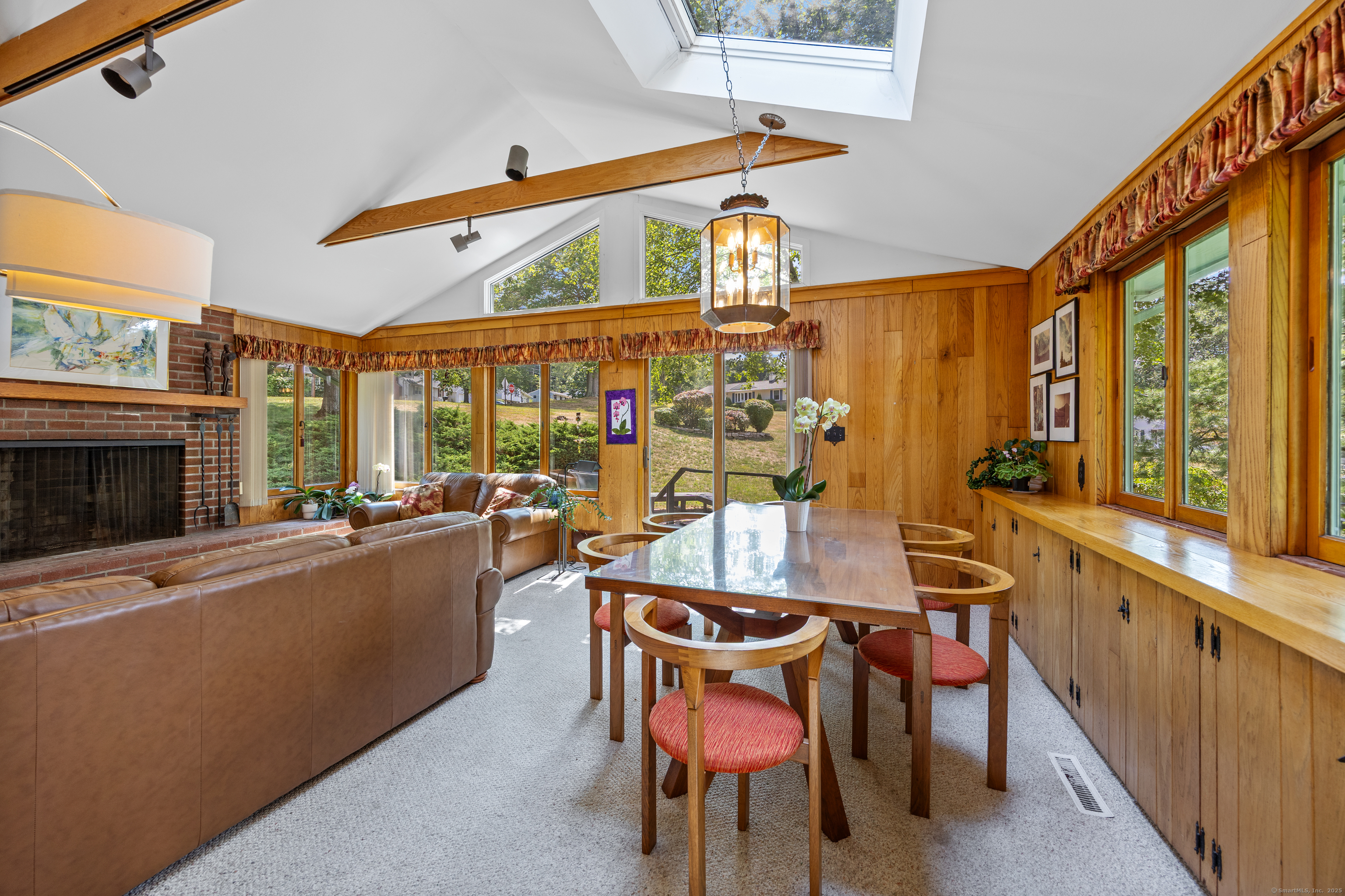 Don't miss out on this beautiful, well-kept home with a manicured lawn in the Northford section of North Branford. Lovingly maintained by the original owner, this bright and spacious ranch-style home offers over 2,100 square feet of comfortable, well-designed living space. Soaring vaulted ceilings, skylights, hardwood floors and large windows fill the home with natural light, creating a warm and inviting atmosphere throughout. The cozy family room features a charming fireplace perfect for those crisp fall evenings along with custom built-ins providing abundant storage. The open-concept layout enhances the flow of the home, making it ideal for both everyday living and entertaining. One of the home's most unique features is in the lower level: "Pop Pop's Trains," a fully set-up train room that will delight enthusiasts of all ages. This extraordinary space conveys with the home exactly as is, an incredible extra you won't find anywhere else! Set on a beautifully landscaped lot in a desirable neighborhood, this meticulously cared-for home offers timeless appeal, both inside and out. Don't miss this rare opportunity to own a truly special home that blends classic charm with standout features! Roof is approx. 10 years old and driveway approx. 3 years old. Close to major highways, shopping centers, medical facilities, parks, schools, playgrounds, pickleball courts and much more! If that's not enough, having Wallingford Electric is a plus!!!