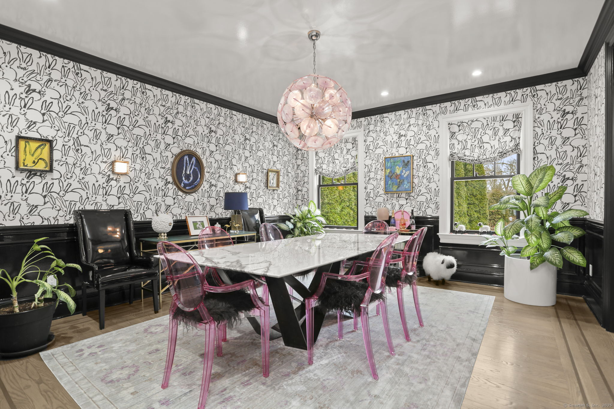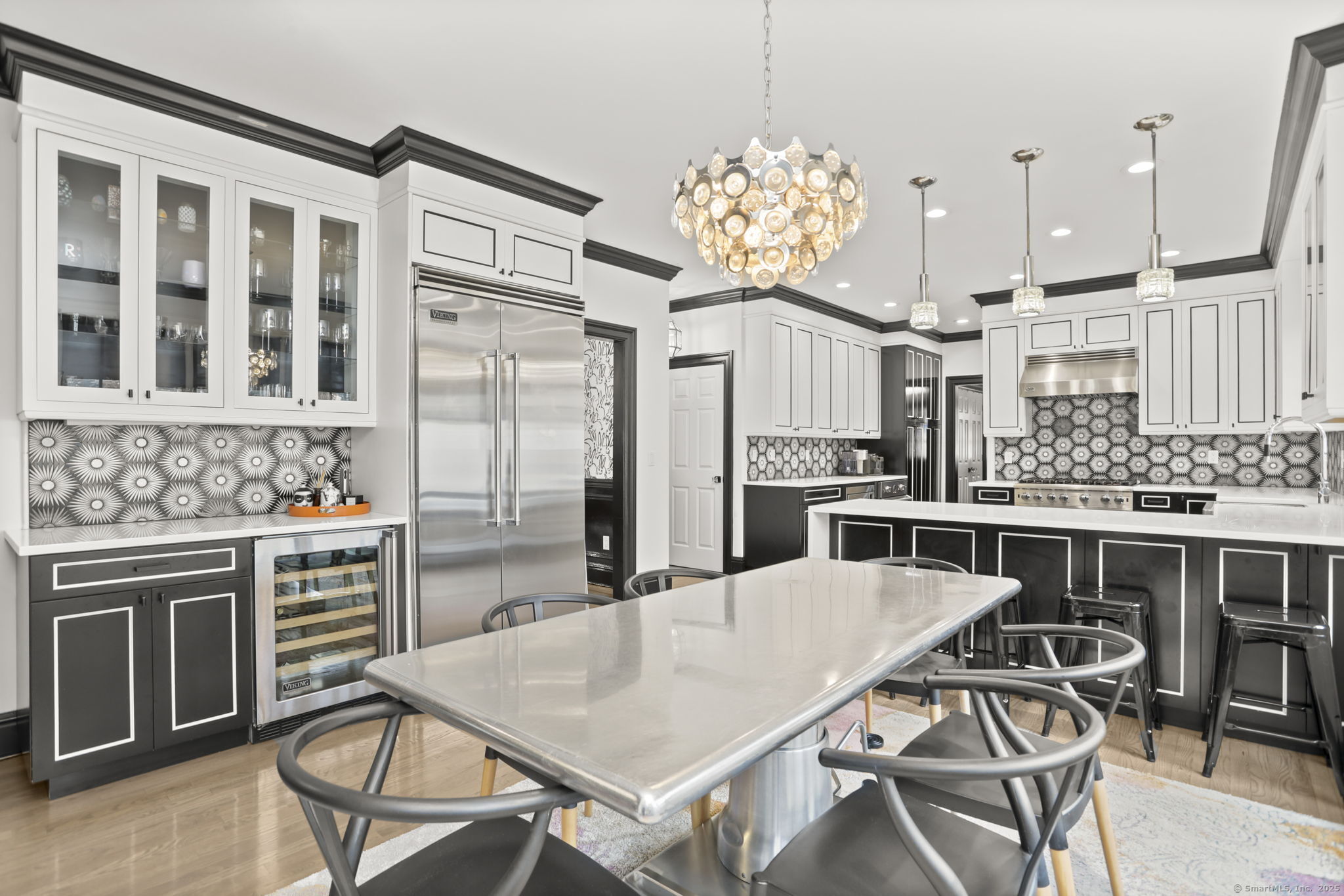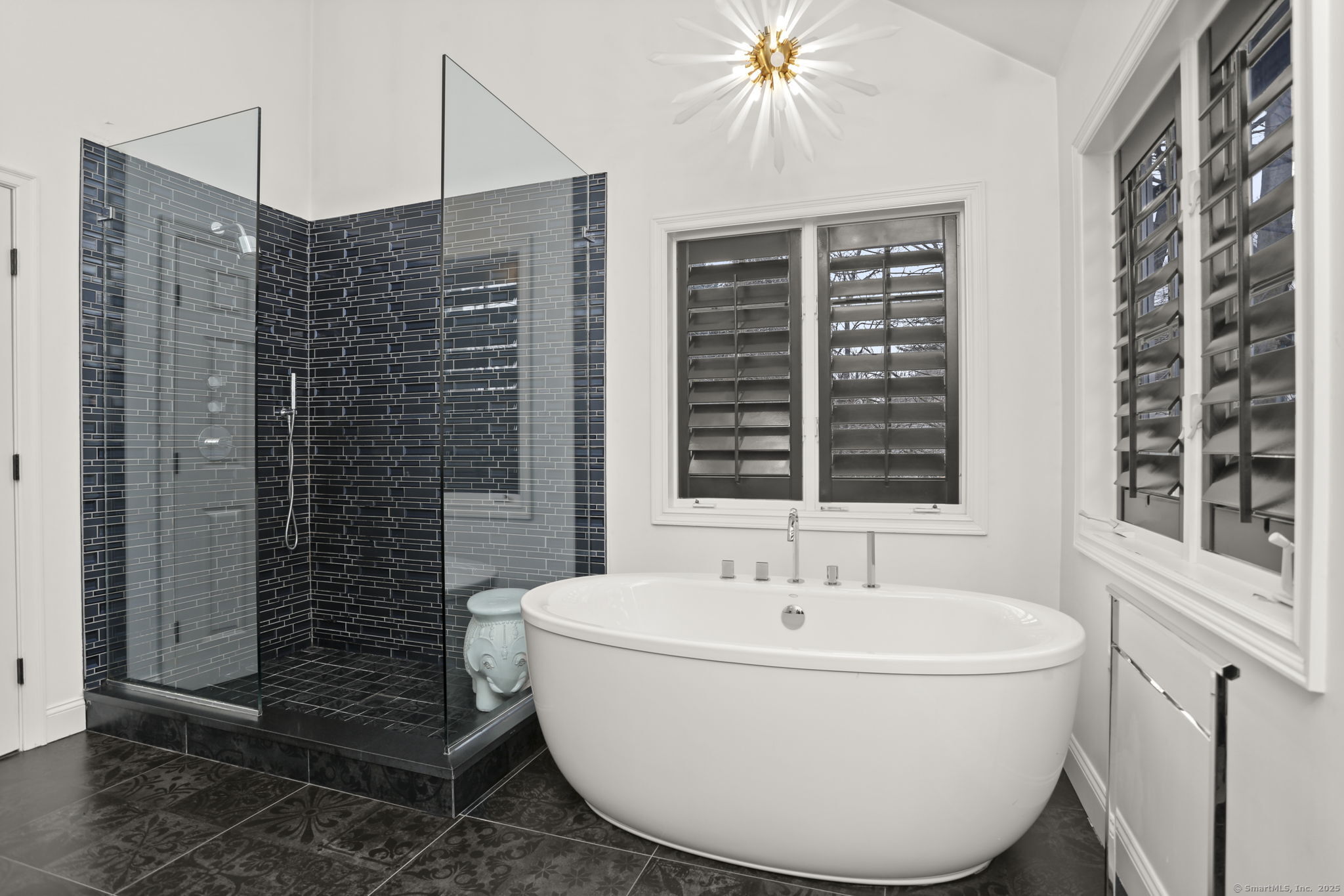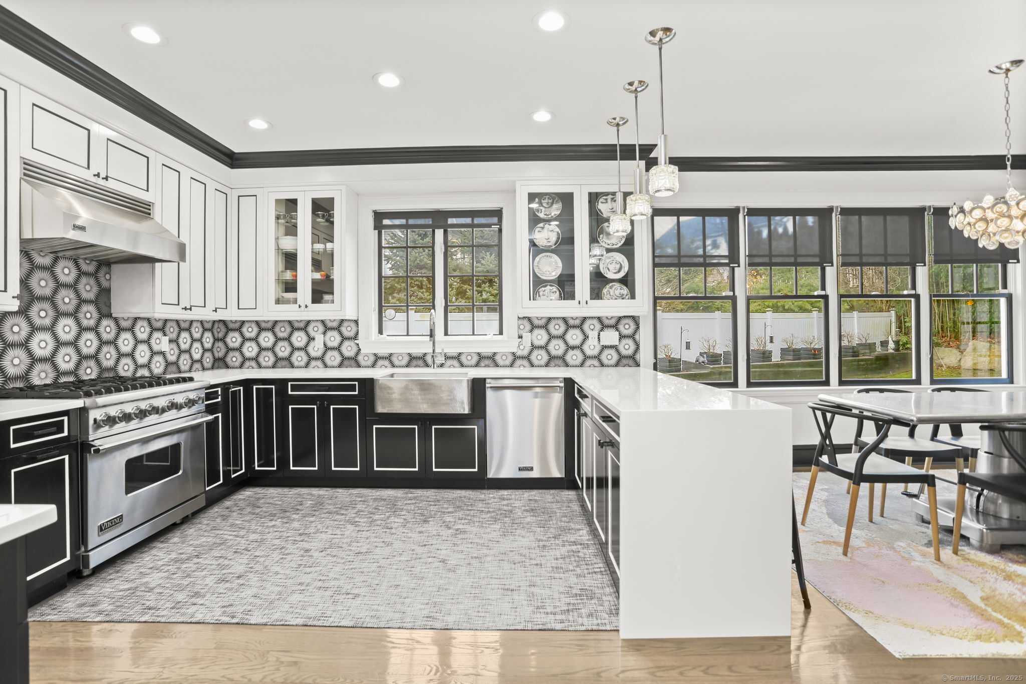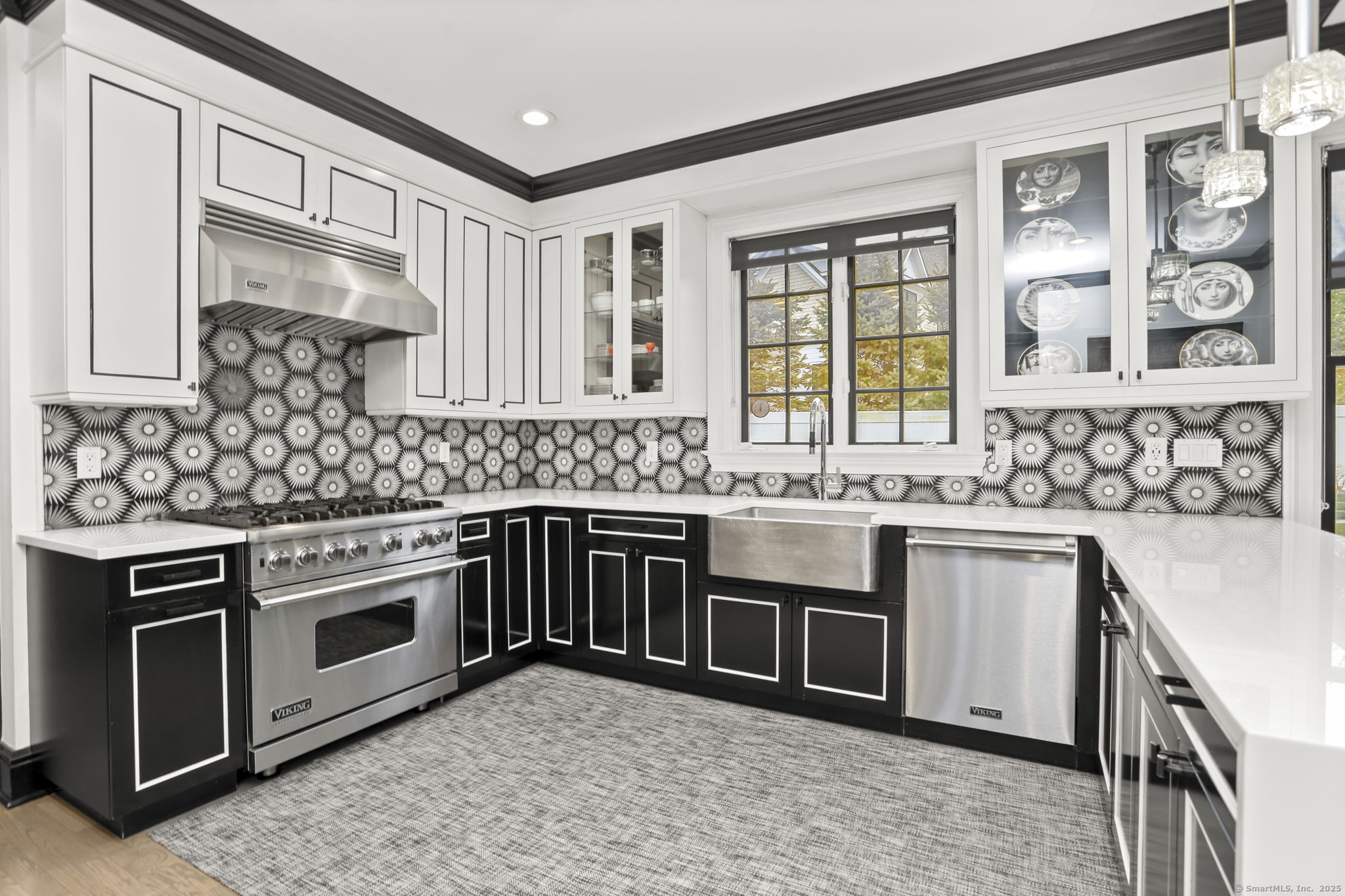 Experience the lifestyle of Riverside in this beautifully renovated 6-bedroom, 4.1-bath home. Close to schools, minutes to train, beach, and Old Greenwich village. With over 5,000 sq ft and $600K in recent upgrades, this turn-key home offers a vaulted family room with Palladian windows and fireplace, elegant living and dining spaces, and a gourmet kitchen with Italian milk glass countertops, double Viking ovens, and premium appliances. The upper level includes a serene en suite primary, three additional bedrooms, and a flexible-use bonus room ideal for an office or nursery. The finished, walk-out lower level features a bedroom, full bath, media room, wet bar, second laundry, and a private room with closet-perfect as a nanny or in-law space. Additional highlights include a spacious mudroom, detached garage with home gym, EV charger, central air, and curated designer finishes throughout. Enjoy coastal living close to everything in one of Greenwich's most desirable neighborhoods.