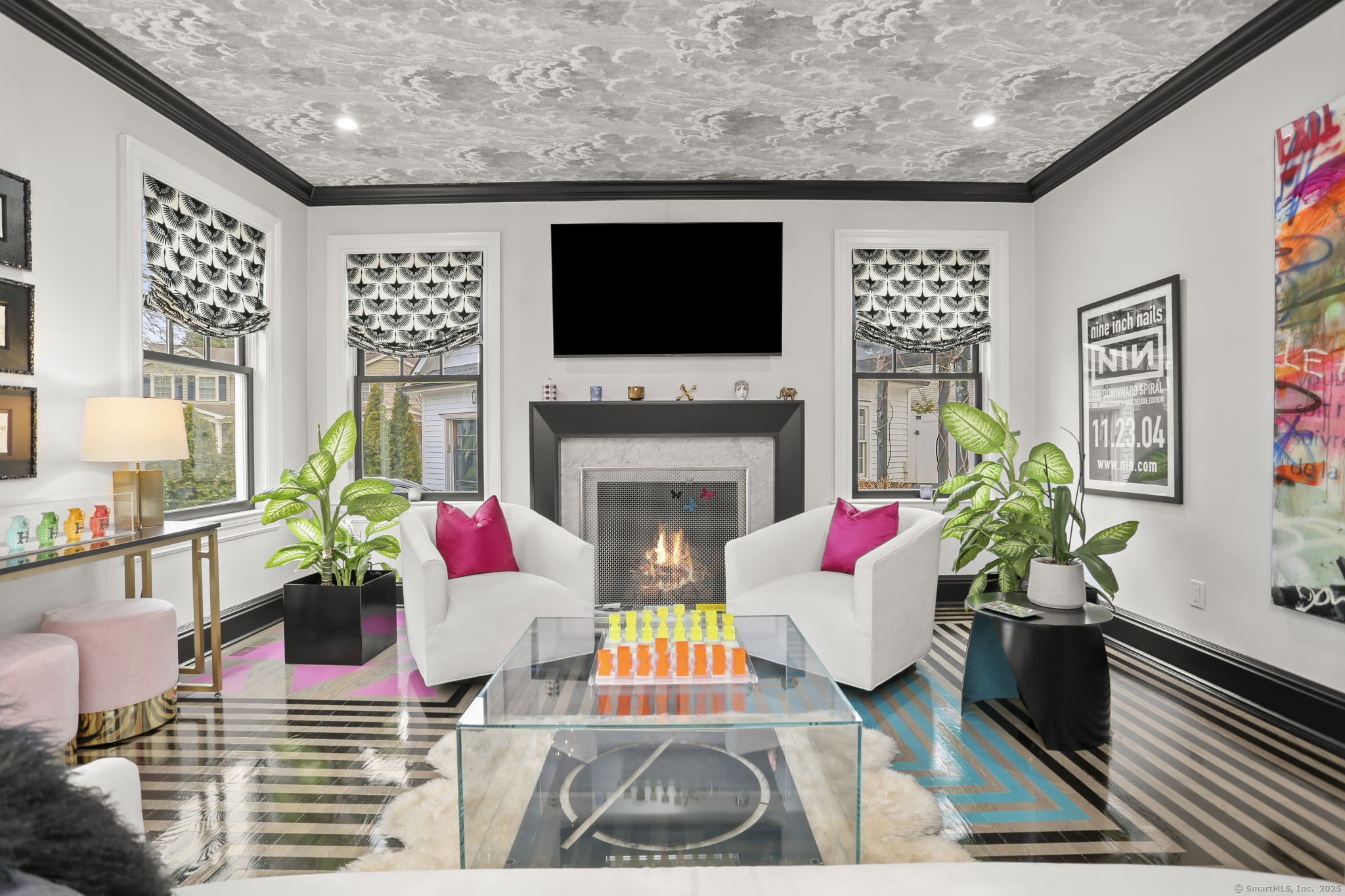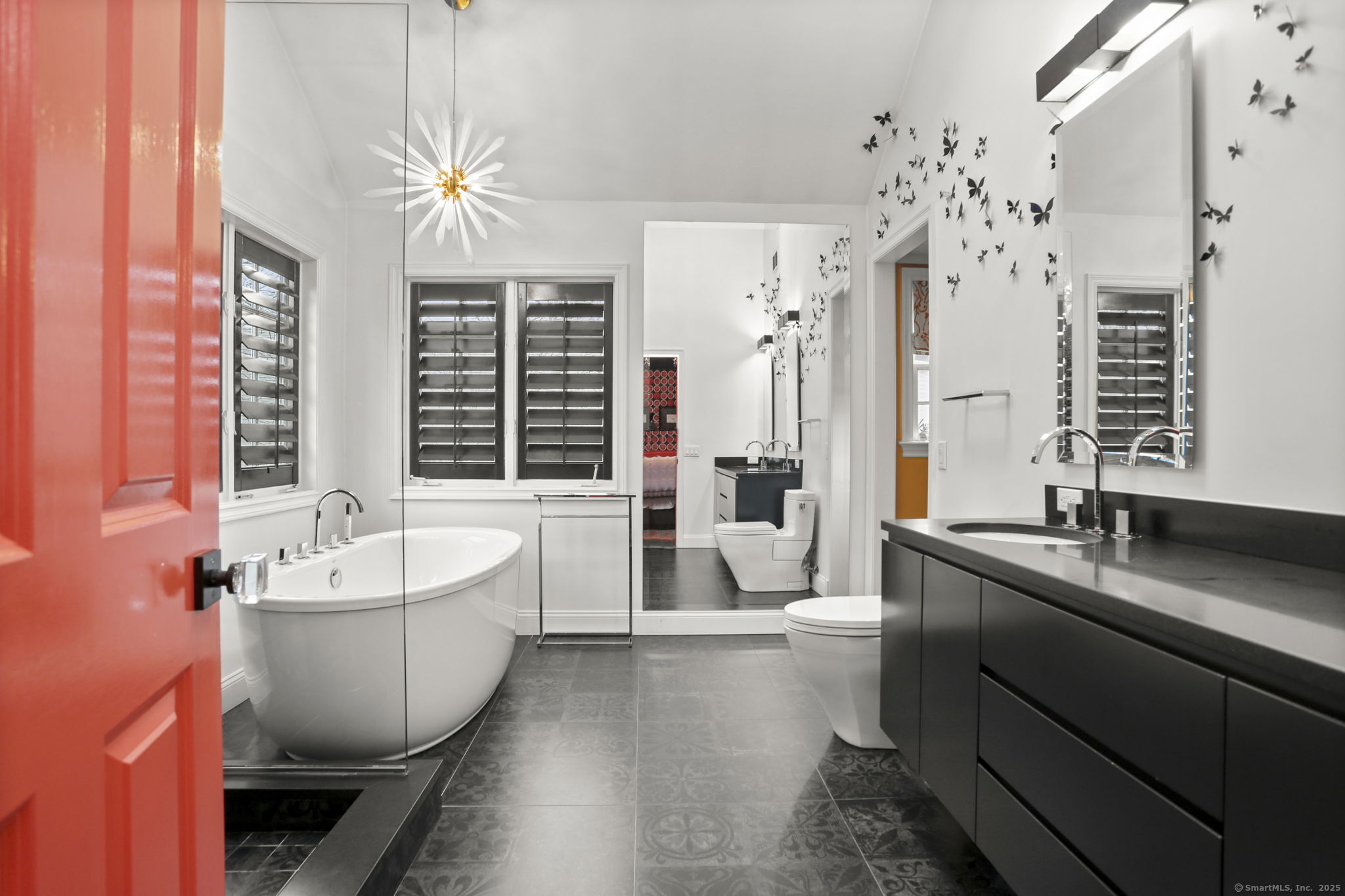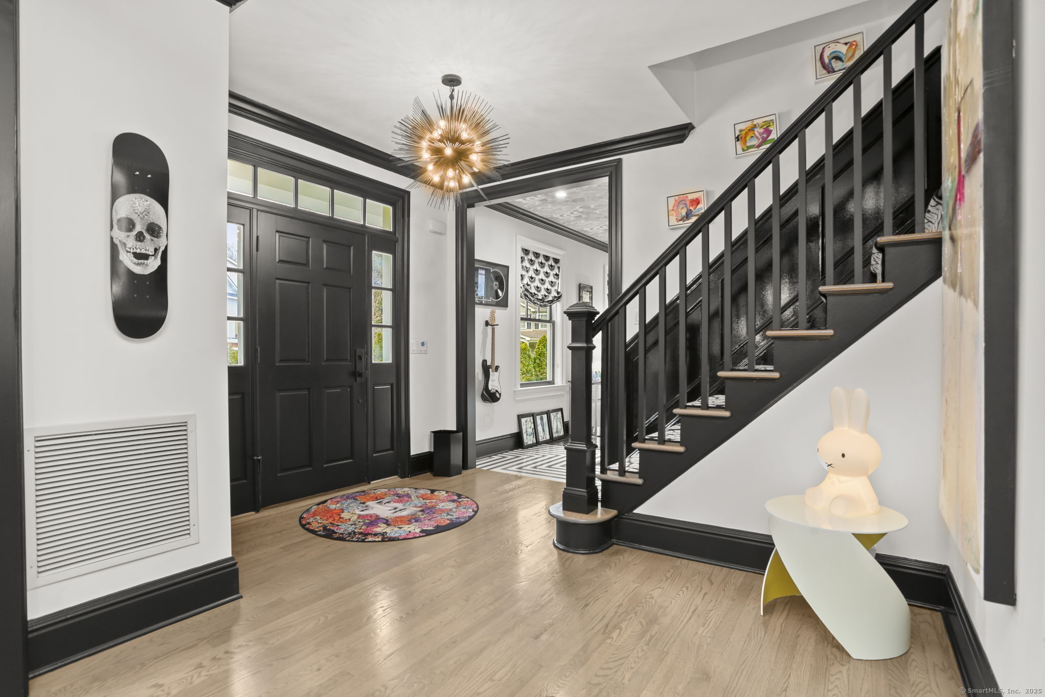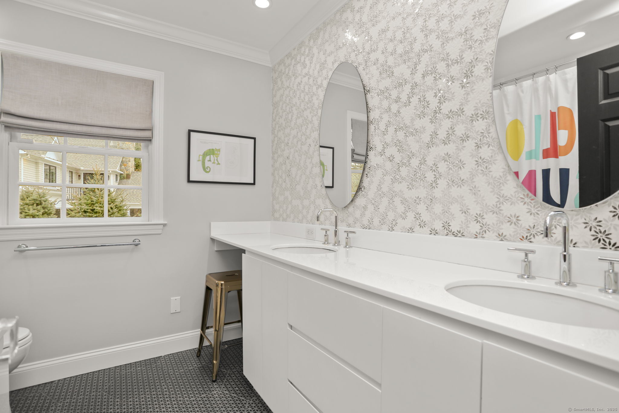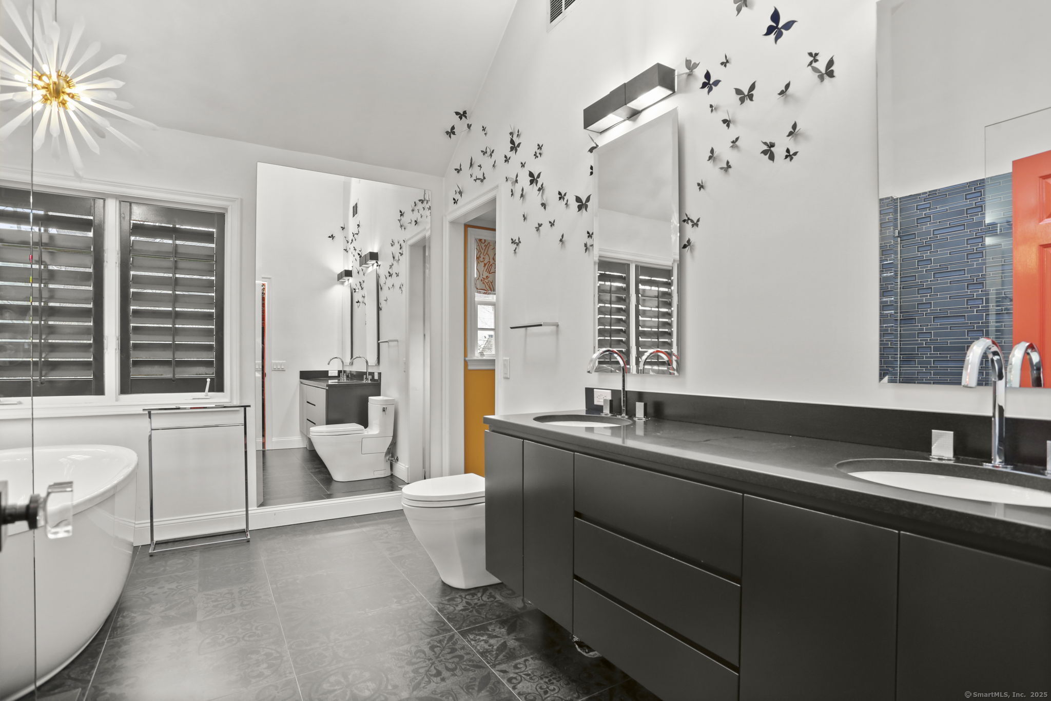 Experience the lifestyle of Riverside in this beautifully renovated 6-bedroom, 4.1-bath home. Close to schools, minutes to train, beach, and Old Greenwich village. With over 5,000 sq ft and $600K in recent upgrades, this turn-key home offers a vaulted family room with Palladian windows and fireplace, elegant living and dining spaces, and a gourmet kitchen with Italian milk glass countertops, double Viking ovens, and premium appliances. The upper level includes a serene en suite primary, three additional bedrooms, and a flexible-use bonus room ideal for an office or nursery. The finished, walk-out lower level features a bedroom, full bath, media room, wet bar, second laundry, and a private room with closet-perfect as a nanny or in-law space. Additional highlights include a spacious mudroom, detached garage with home gym, EV charger, central air, and curated designer finishes throughout. Enjoy coastal living close to everything in one of Greenwich's most desirable neighborhoods.