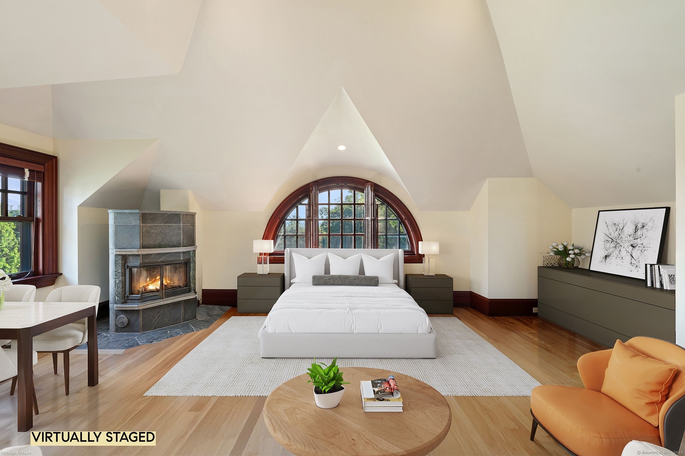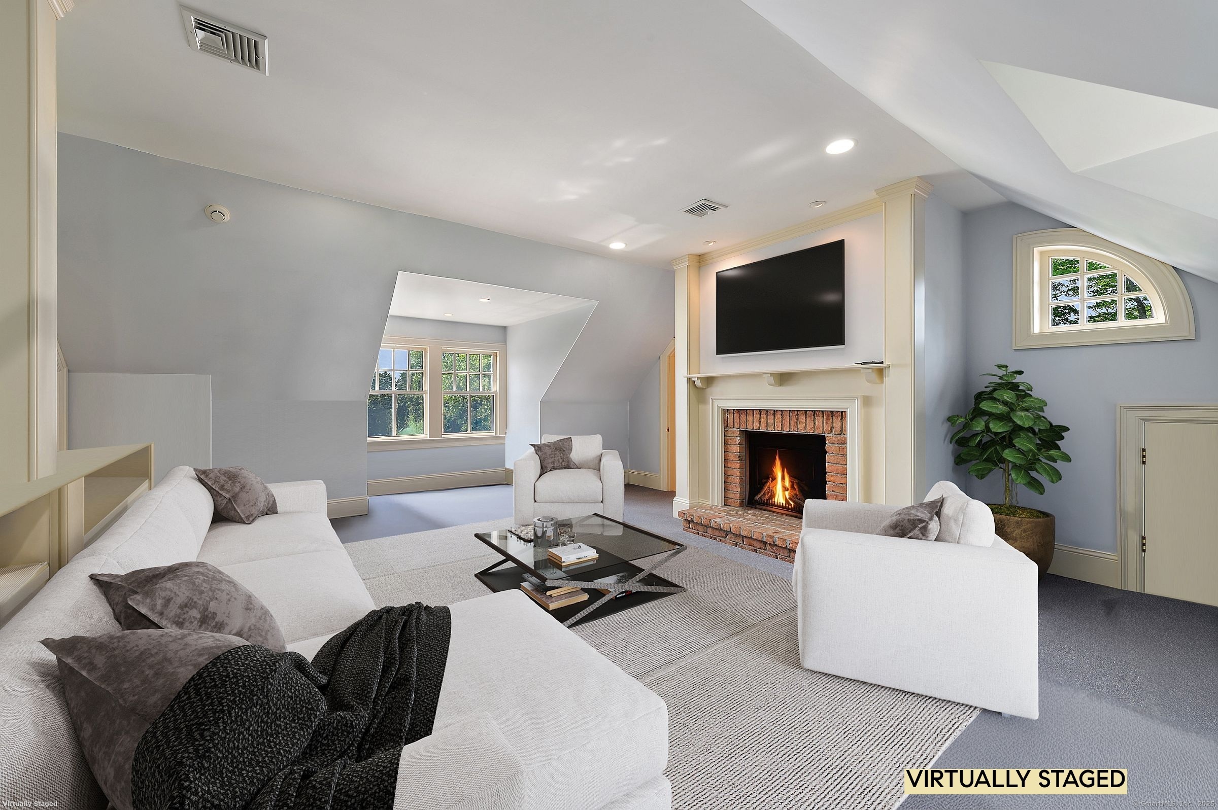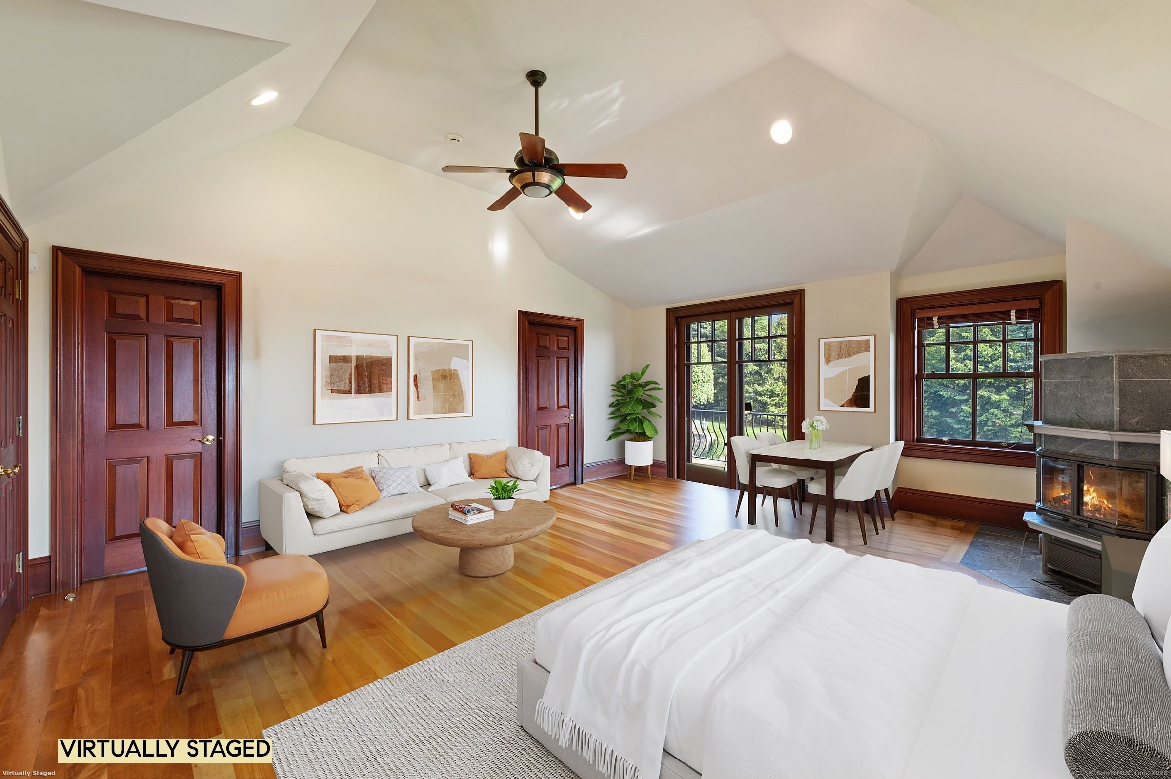 61 High Ridge Ave, a regal estate nestled in the heart of Ridgefield, CT's Historic District, with walking distance to downtown. Custom built in 1997, this exceptional property is anchored by a distinguished Stone Manor-a showcase of timeless elegance, expert craftsmanship, and dedication to quality. Spanning over 8,000 sq ft across 3 levels, the main residence features a stone facade, slate shingle roof, 5 spacious bdrms, and 6.1 baths. A front to back, 2-story foyer filled w/ natural light leads you to an expansive dining room, formal living room and home office/library. Each space is accented w/ rich mahogany windows and doors, hardwood floors and millwork. The large eat-in kitchen flows into the family room w/ fireplace, creating the perfect space to gather. The upper level finds the primary suite w/ 2 walk-in closets, a fireplace and a private balcony. 3 additional ensuite bedrooms and an additional bedroom complete the upstairs. The finished 3rd flr, currently used as a home gym, offers flexibility for a variety of uses. Beyond the main house, is a separate 627 sq-ft studio/cottage complete w/ a full bath and fireplace, ideal for guests, a home office, or artistic pursuits. Main home offers a 2-car garage with height for lifts, complemented by the cottage's additional 2-car garage. Set on 2.61 acres of landscaped, park-like grounds, this remarkable estate also includes a tennis court and serene pool, making it the perfect retreat for both relaxation and entertaining.