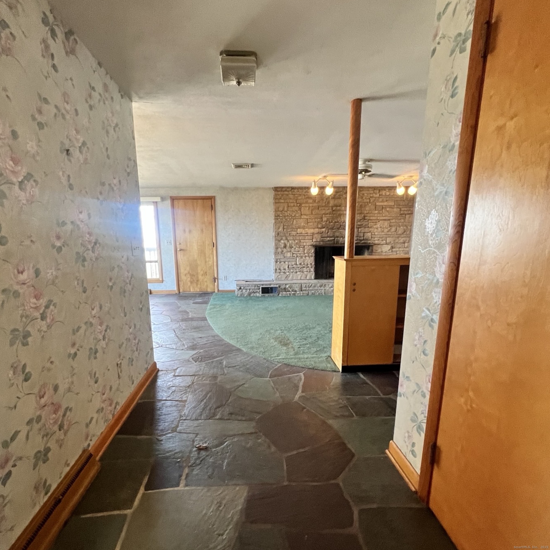 Brick Beauty with Breathtaking Views! Step into timeless elegance with a distinguished 1961 builder's special-expansive ranch perched on scenic View Street, surrounded by landscaped grounds, stately homes and undeniable curb appeal. Enter striking double doors into a home where classic craftsmanship meets modern comfort. The bright, open layout invites exploration, with retro kitchen featuring birch cabinetry, spacious dining room & living room with large expanses of glass drenching this home in light, casting a warm glow on solid slate floors and a stone fireplace-perfect for cozy nights or festive gatherings. (Three well-appointed bedrooms feature hardwood floors and built-ins, offering both beauty and function. Downstairs, a generous lower level with private entrance and bath provides ideal space for a guest suite, studio, or home business. Step outside into a lush outdoor sanctuary where poppies, roses, tulips, and other perennials bloom around custom stone walls. A plush lawn and elegant hardscaping create a private retreat for relaxing or entertaining. The attached, climate-controlled garage offers ample storage for car enthusiasts, hobbyists or collectors-keeping your prized possessions safe and sound. Set in a great neighborhood, this property presents a rare opportunity for discerning buyers, in a town that blends suburban tranquility with vibrant community life, picturesque parks, top schools, and a rich history--Plainville is a wonderful town to live!