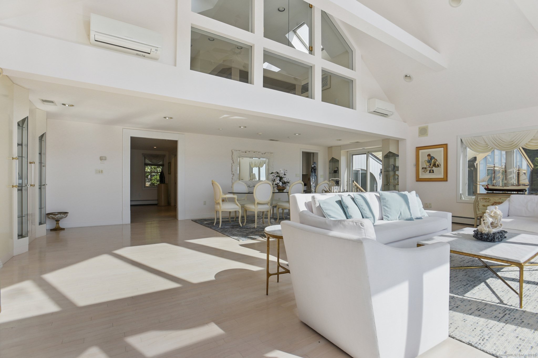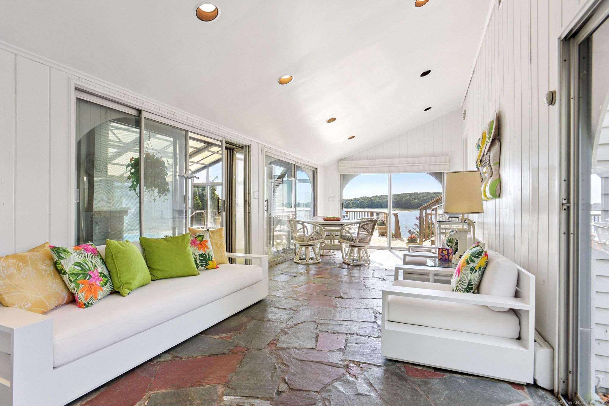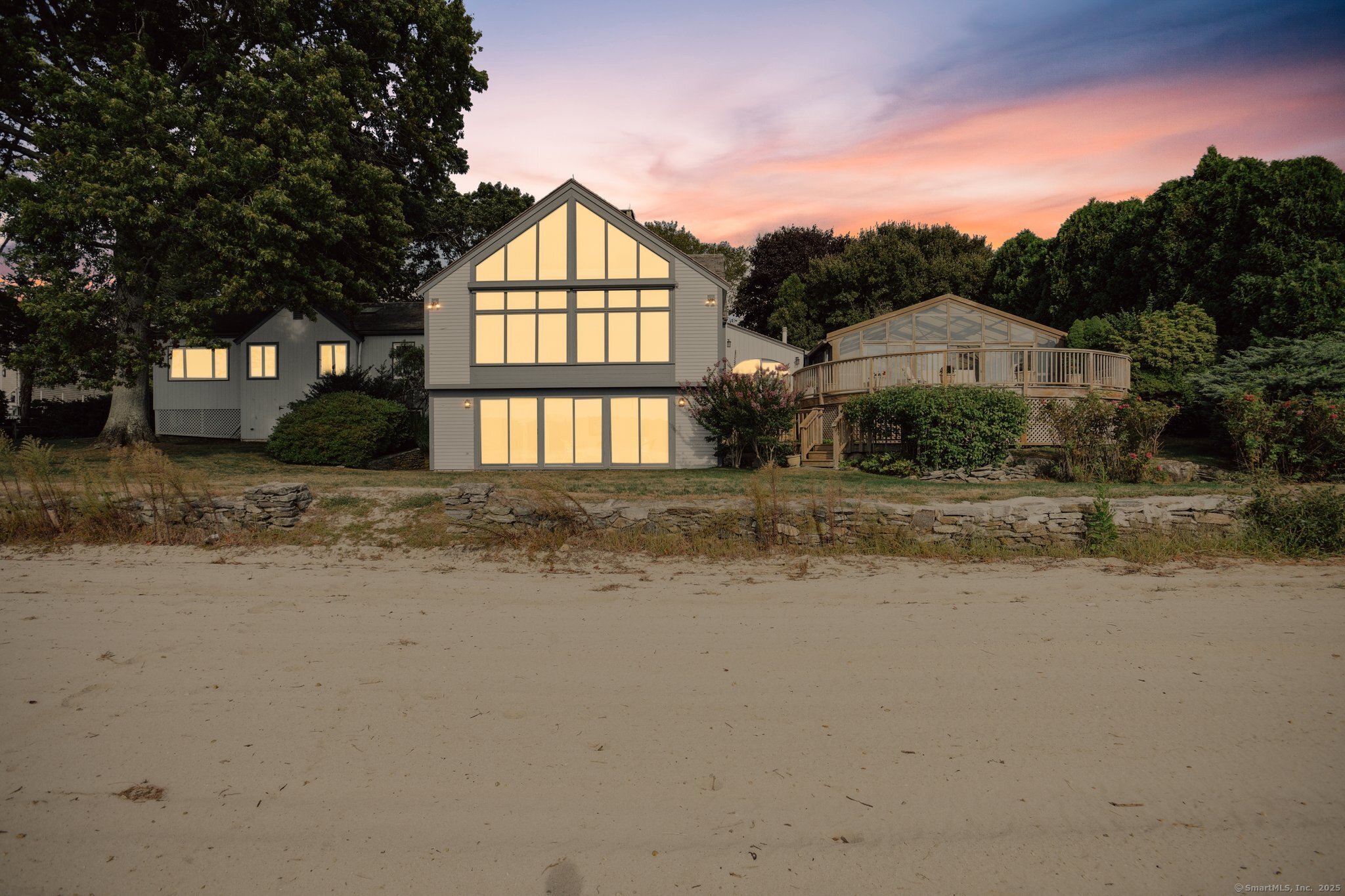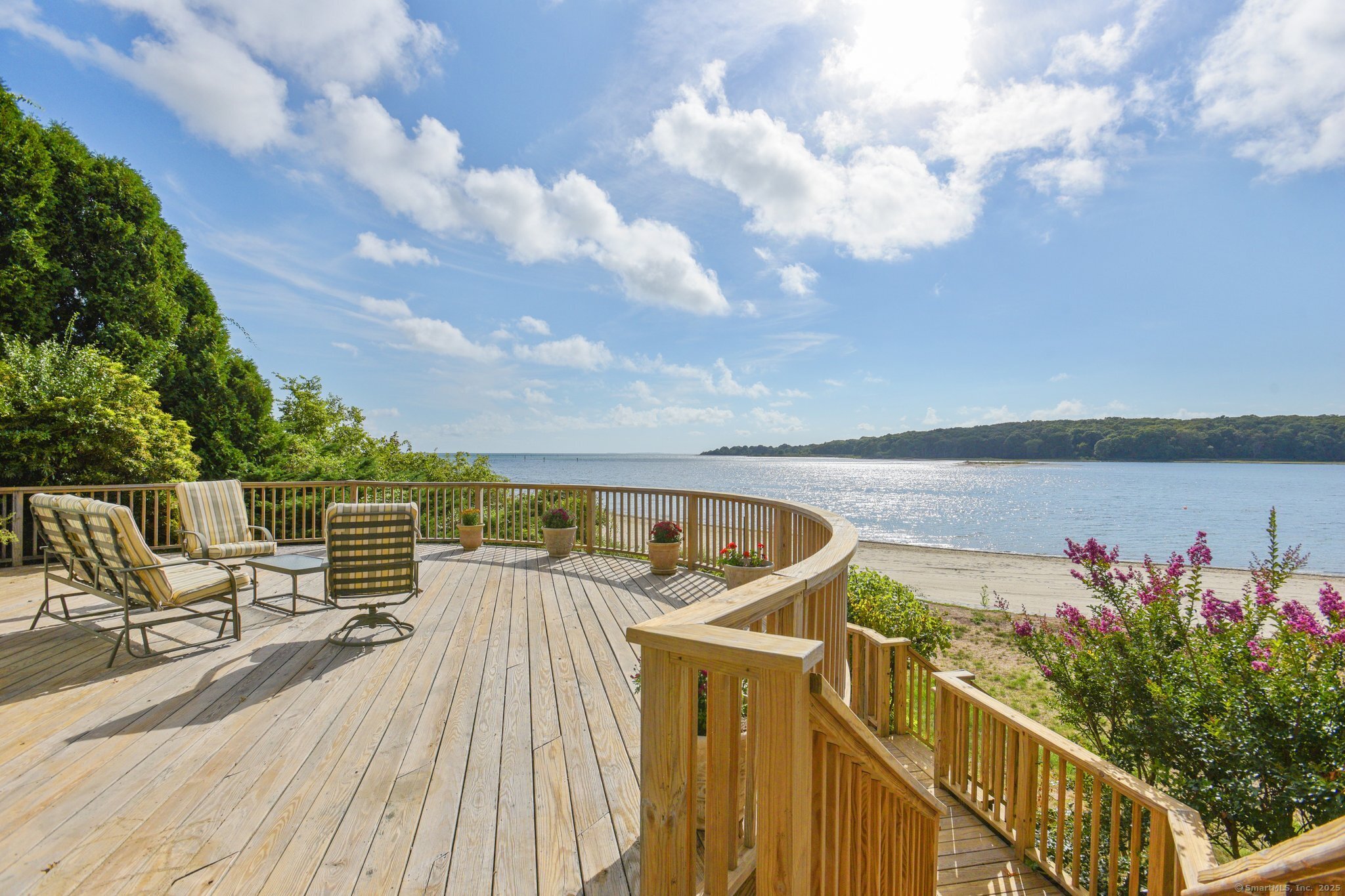 Welcome to 65 Neptune Dr, a 4 BR 4.5 BA house nestled in the sought-after Mumford Cove community- one of Groton's most desirable private beach neighborhoods. This charming property offers the perfect blend of comfort, style and coastal living, with over 160+ feet of direct waterfront. Step inside to the large open floor plan with spacious living areas ideal for both entertaining and relaxing. The open living and dining rooms, with large windows that bring in natural light offering panoramic unobstructed water views and sunsets. The main level foyer has a wood fireplace, bright kitchen with fireplace, all opening up to the great room. First floor BR with full bath, half bath in hallway and primary bedroom suite features an ensuite bath with separate jetted tub. The breezeway from the garage opens up to the in-ground swimming pool and large back deck. Upper level is a bedroom with skylight, water views and what could be a work from home office area. Lower level has laundry, sun room that you can walk right out to the beach to stroll, swim, kayak or just relax and read a book or nap. Bedroom, full bath and a theatre room with club chairs to sit back and enjoy movies from home. Mumford Cove residents enjoy access access to beaches, deep water docks, lagoon docks, playground, tennis/pickleball courts. Property borders open space with biking/walking trails in Haley Farm and Bluff Point.Located just minutes from Mystic dining and shopping. Centrally located between NYC & Boston.