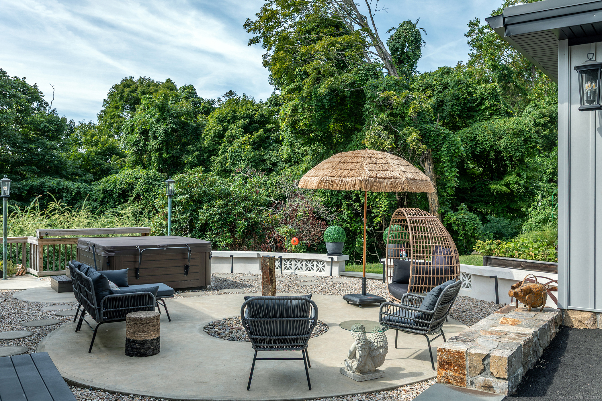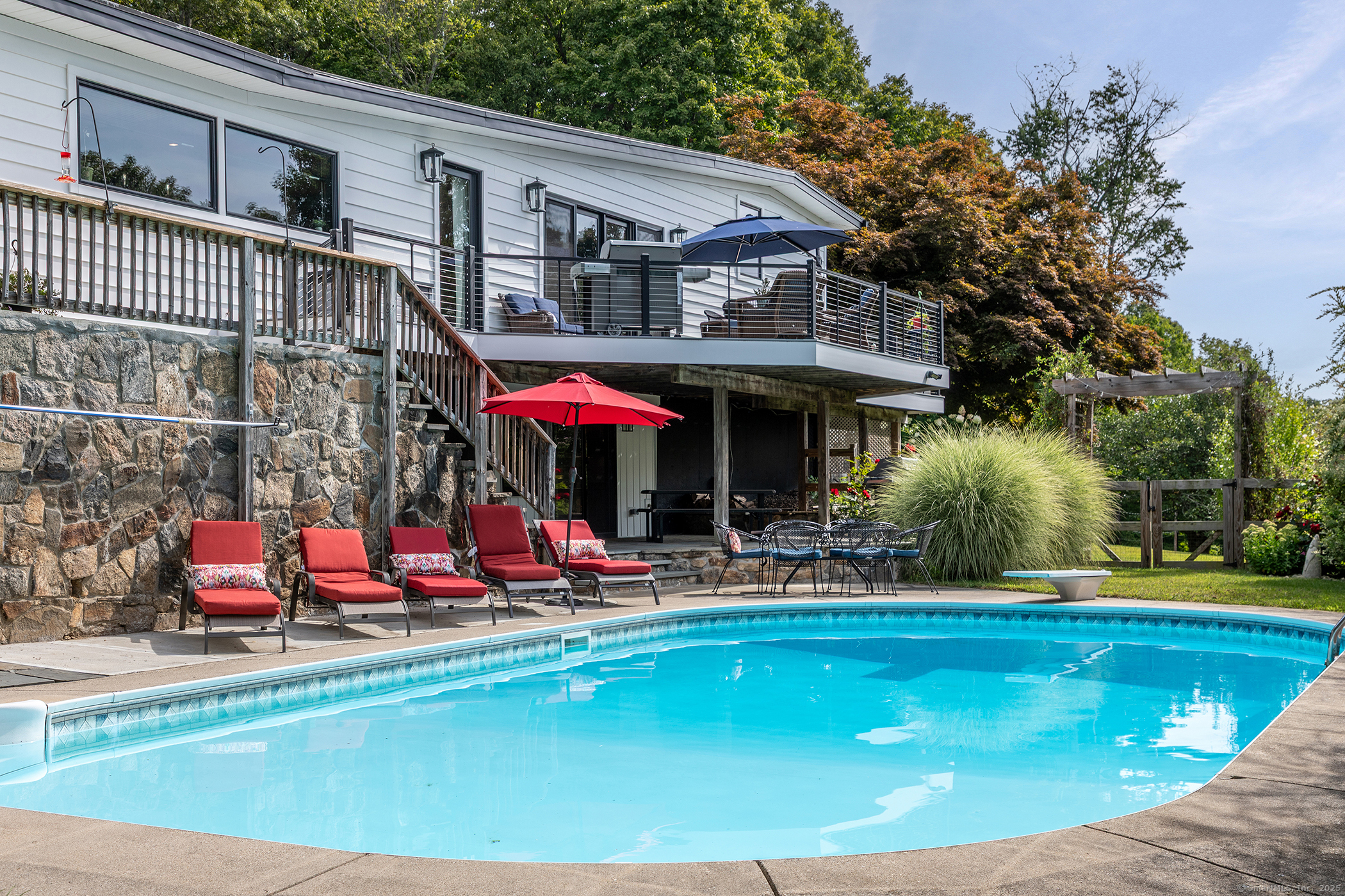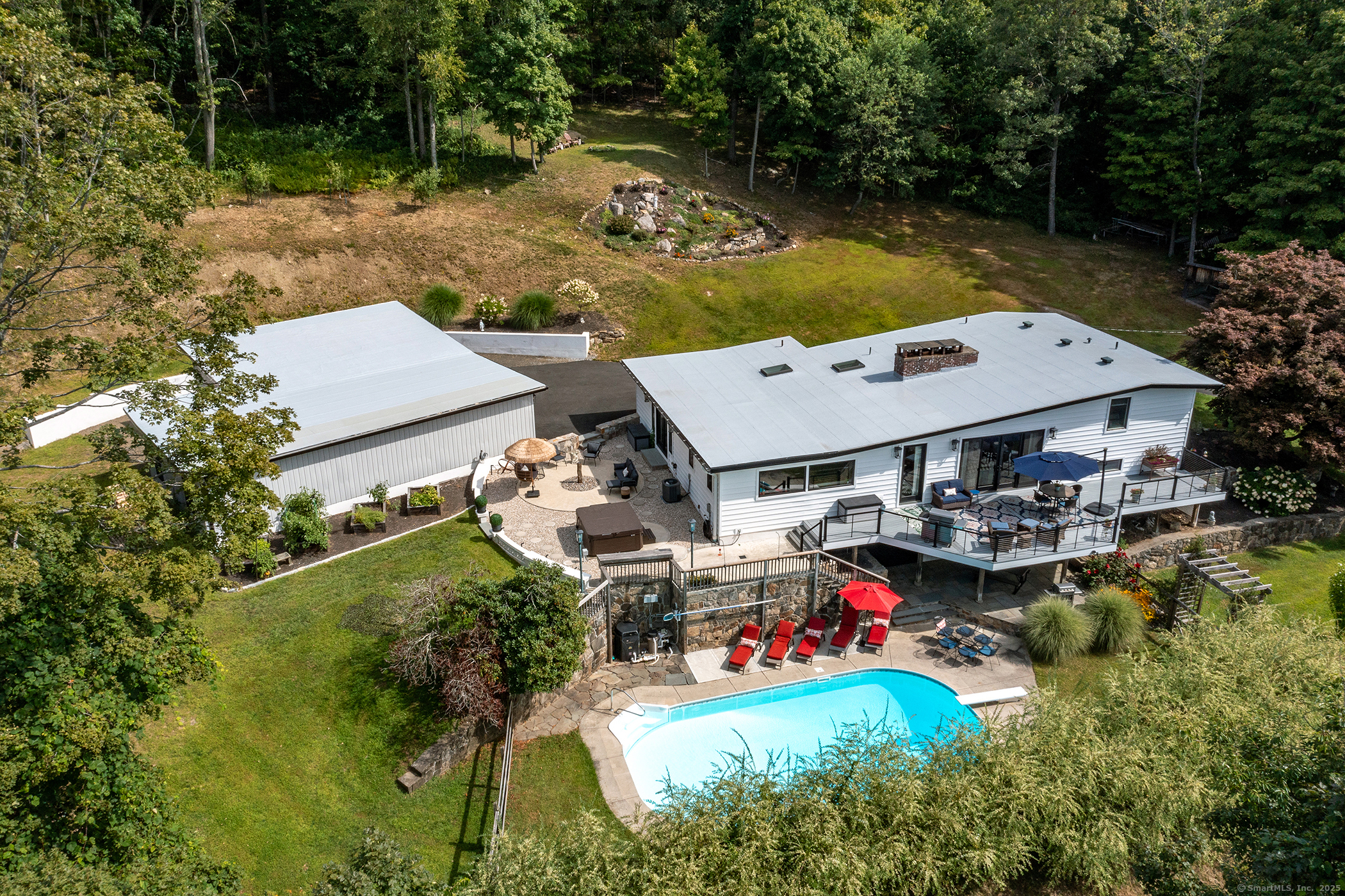 Welcome to 145 Pine Hill Rd! An exquisite home offering 4-bedrooms with 3.5 baths and a generous 3400+/- total sf. Home is set on a spacious 4.57 -acre lot and features an oversized 4 car-detached garage. As you approach the property, you'll be greeted by a front porch, welcoming you inside. The heart of the home is adorned w/reclaimed, hand-hewn beams accentuating the ceilings & mantle, paired harmoniously with a propane log fireplace. This central gathering space is bathed in natural light spilling in through expansive windows, complemented by a twelve-foot wide Anderson double slider leading to a meticulously crafted deck, optimizing the western exposure for all day sun. The kitchen offers a state-of-the-art appliances and extensive countertop space with over 20 feet on the perimeter and an 11 ft island. Each of the 4 bedrooms provides a unique space, while the 3.5 baths feature refined fixtures & chic designs. Off the primary bedroom is a retreat unto itself, featuring a circular patio where one can reflect in the joyful sounds of the water fountain or unwind in the private hot-tub. The lower-level family room with a built-in bar and a cozy wood-burning stove, ideal for entertaining & relaxation alike. A saltwater in-ground heated pool & beautifully crafted outdoor entertainment areas, including a whimsical chicken coop/shed, enrich the outdoor living experience. Nestled near captivating attractions such as Pootatuck State Forest & Candlewood Lake.