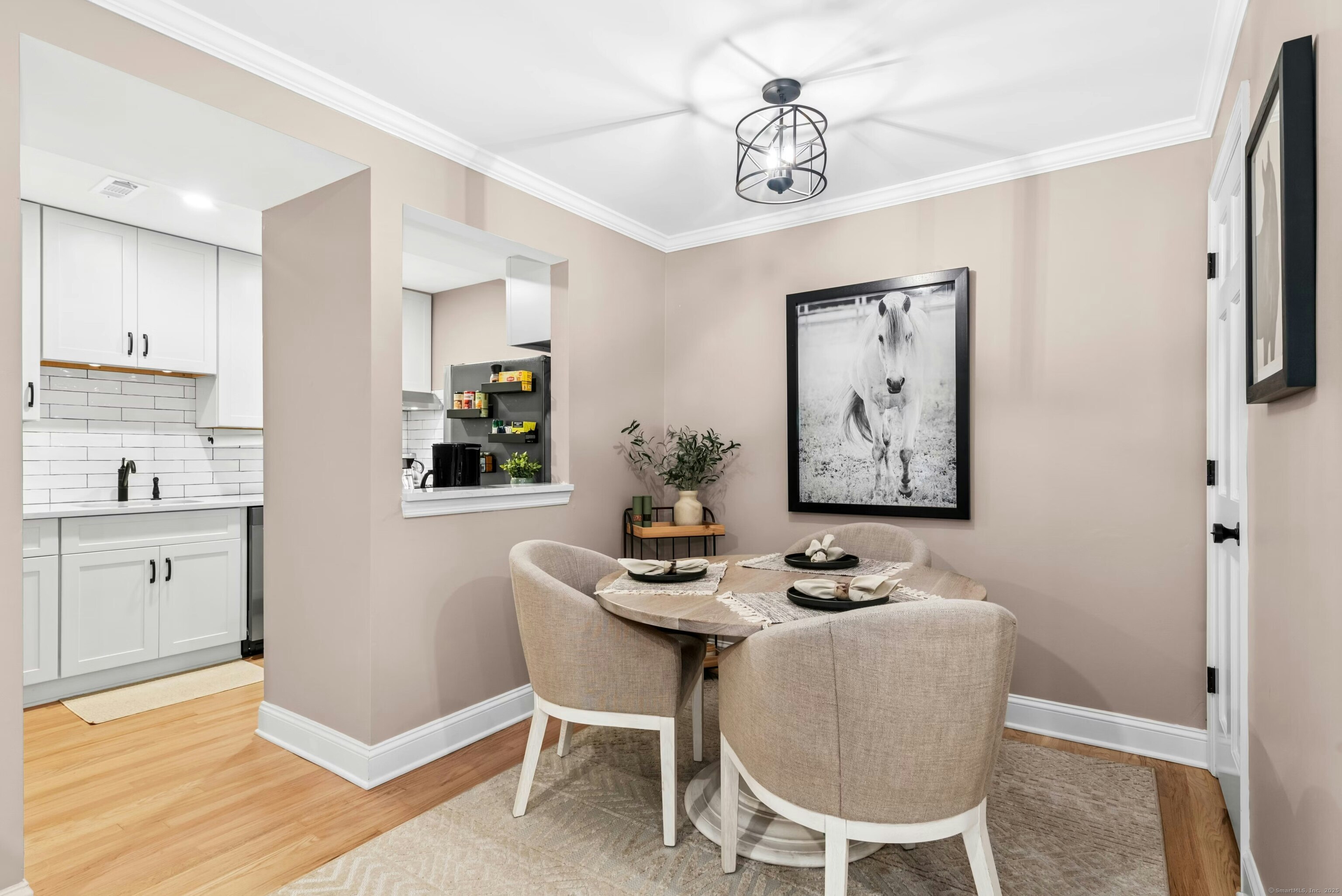 Welcome to Fox Hill! This beautifully updated 1-bed/1 bath unit offers modern comfort and a bright, open layout in one of Ridgefield's most desirable communities. Full renovation completed in 2024 with crown molding throughout, recessed lighting in every room, new kitchen, appliances, and refurbished hardwood flooring just to name a few. Enter into a spacious living room with an open floor plan that flows into your dining area and all new kitchen with shaker cabinets and quartz countertops. Relax the stress away in the luxurious bath with a soaking tub or enjoy a meal outside on your private patio. Fox Hill has so much to offer, including a pool, clubhouse, and walking paths. Just minutes from Ridgefield's vibrant Main Street with shopping, dining, and cultural attractions. Carefree, convenient living in a beautiful setting!