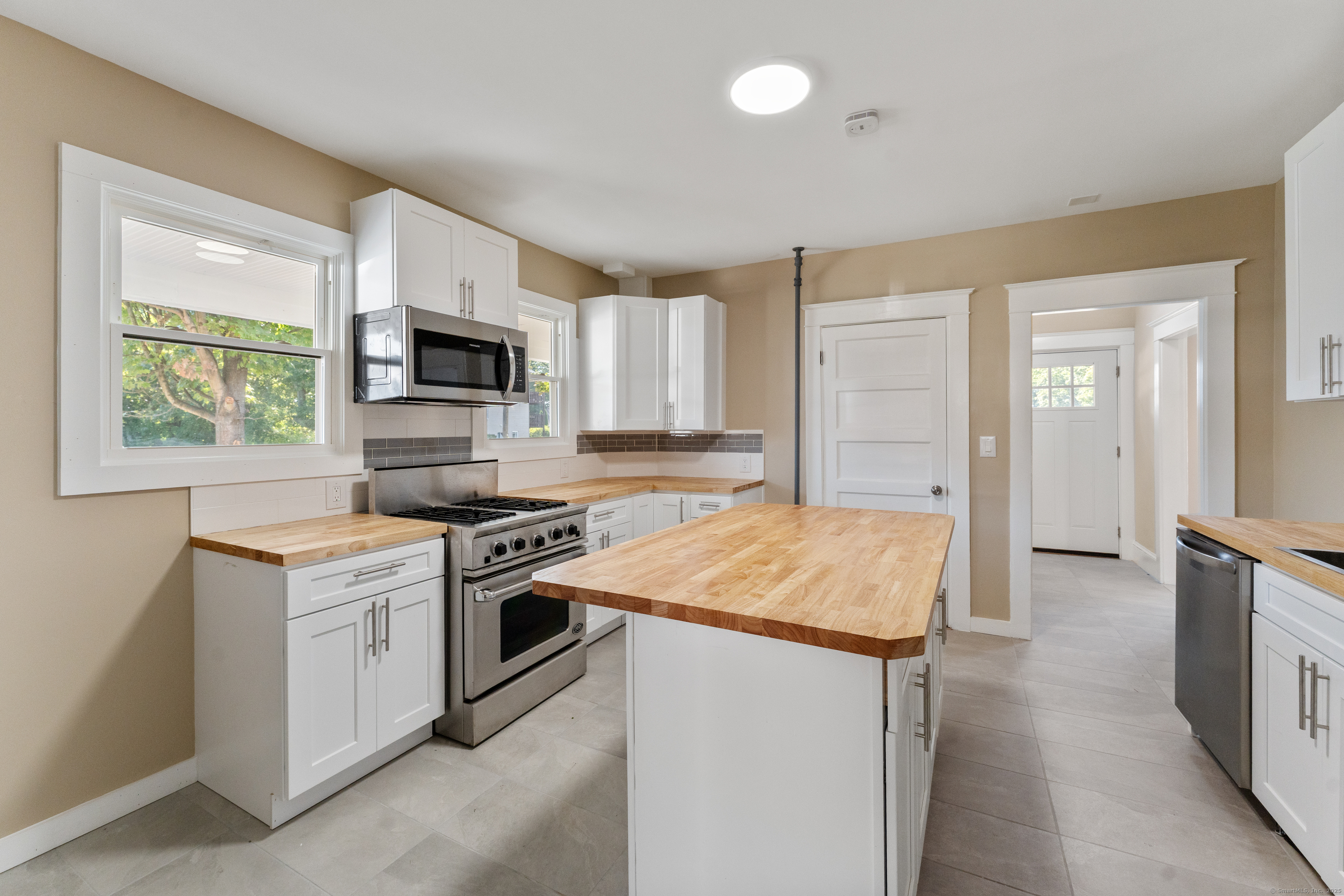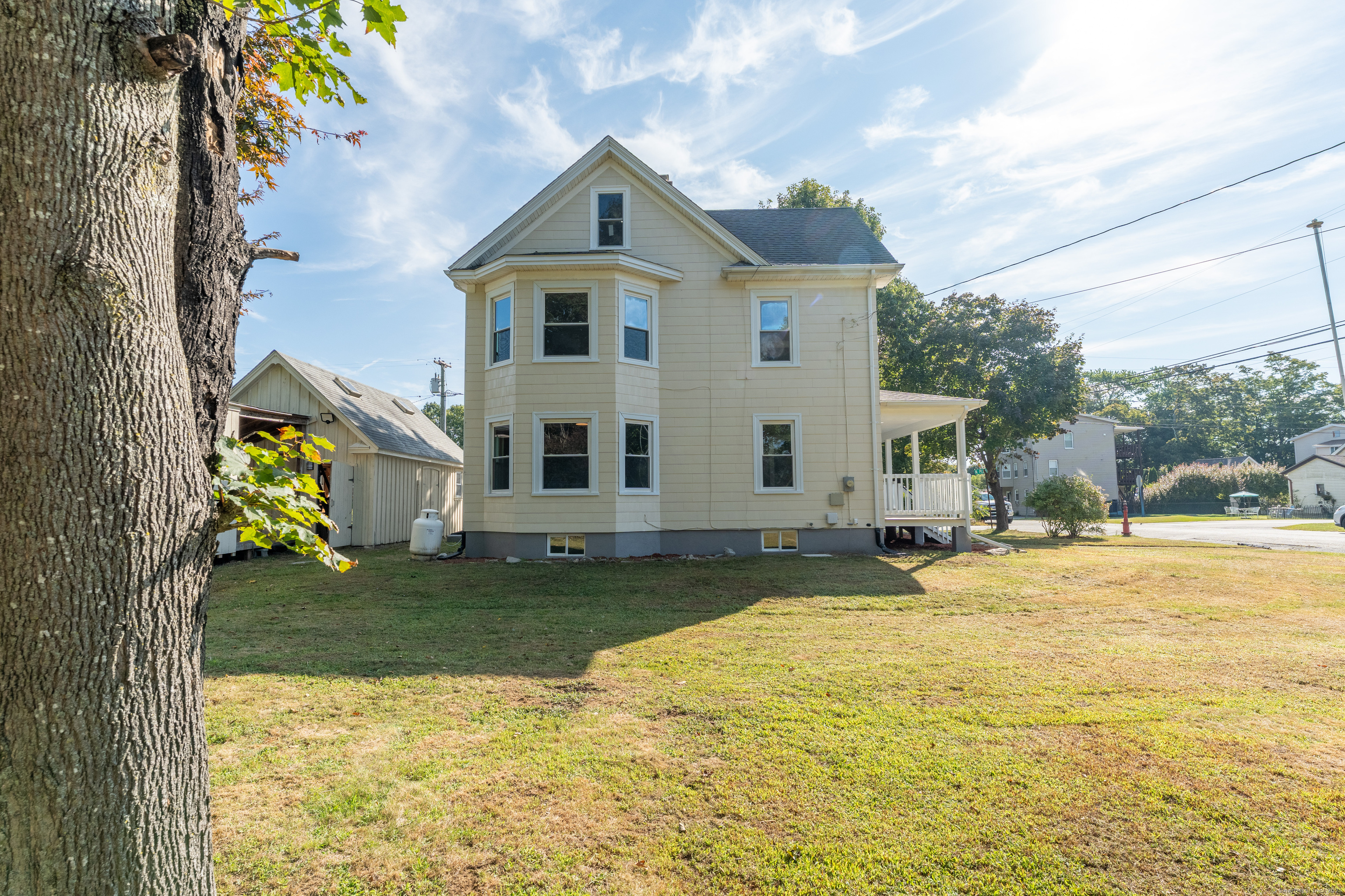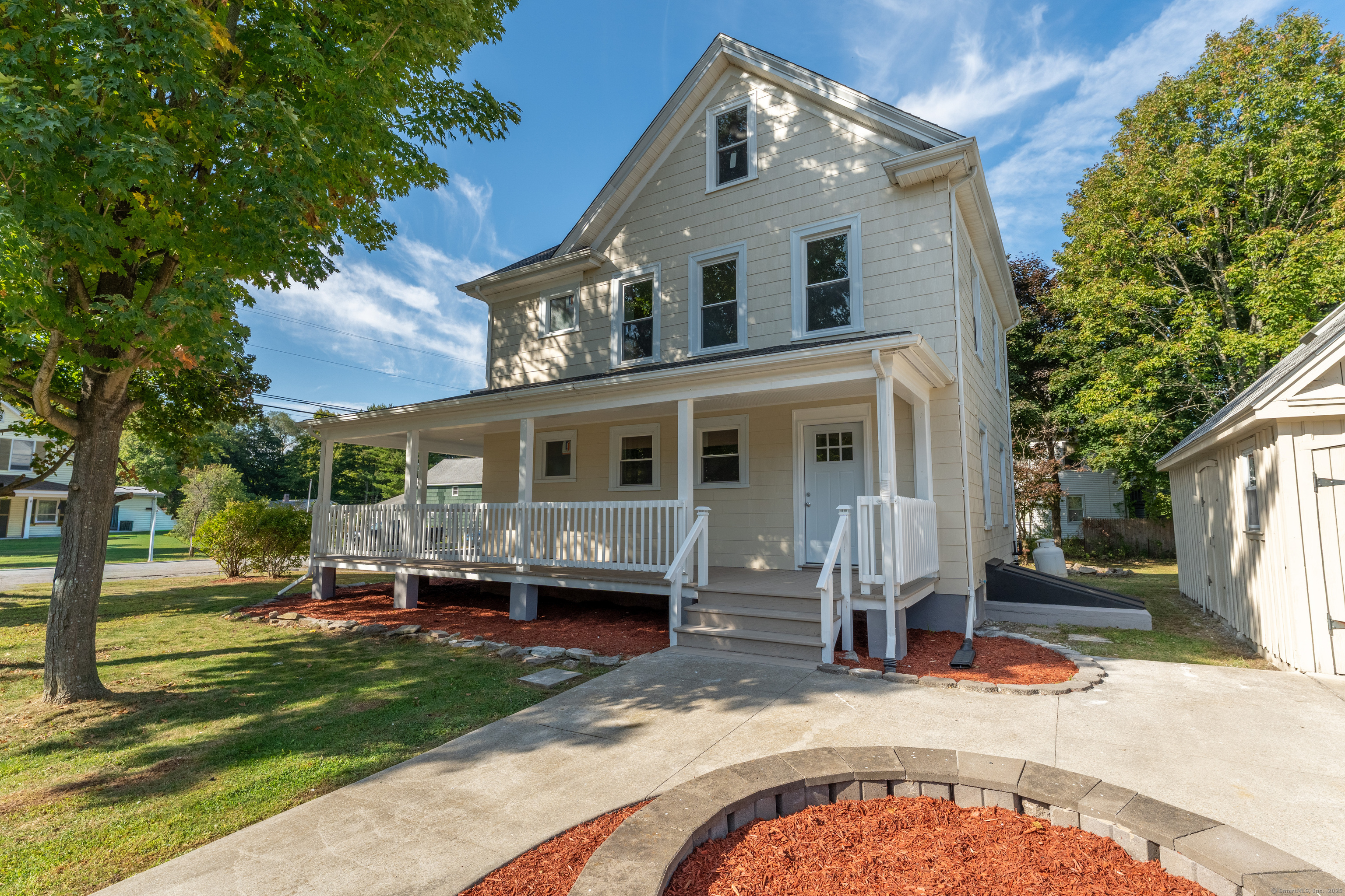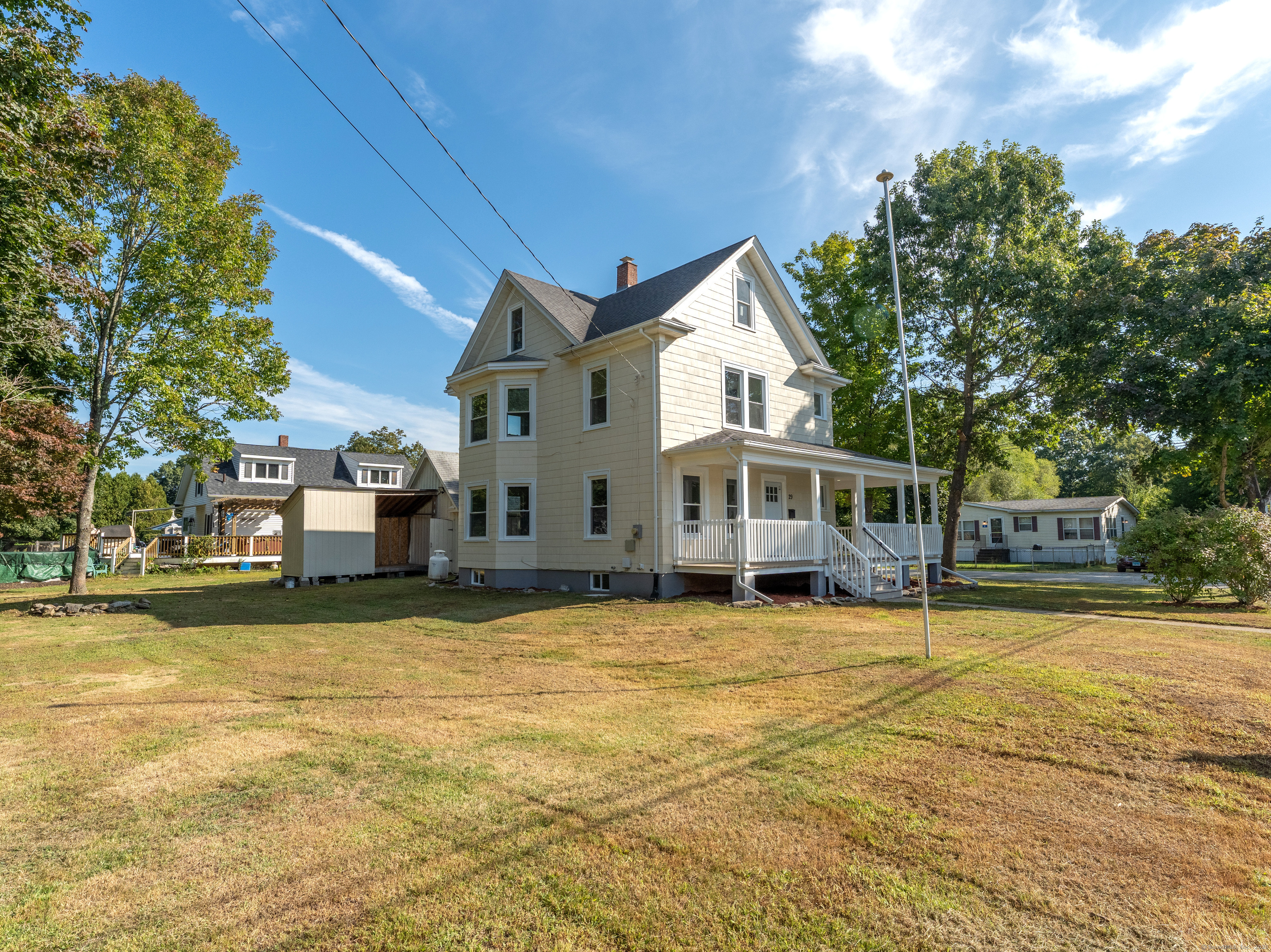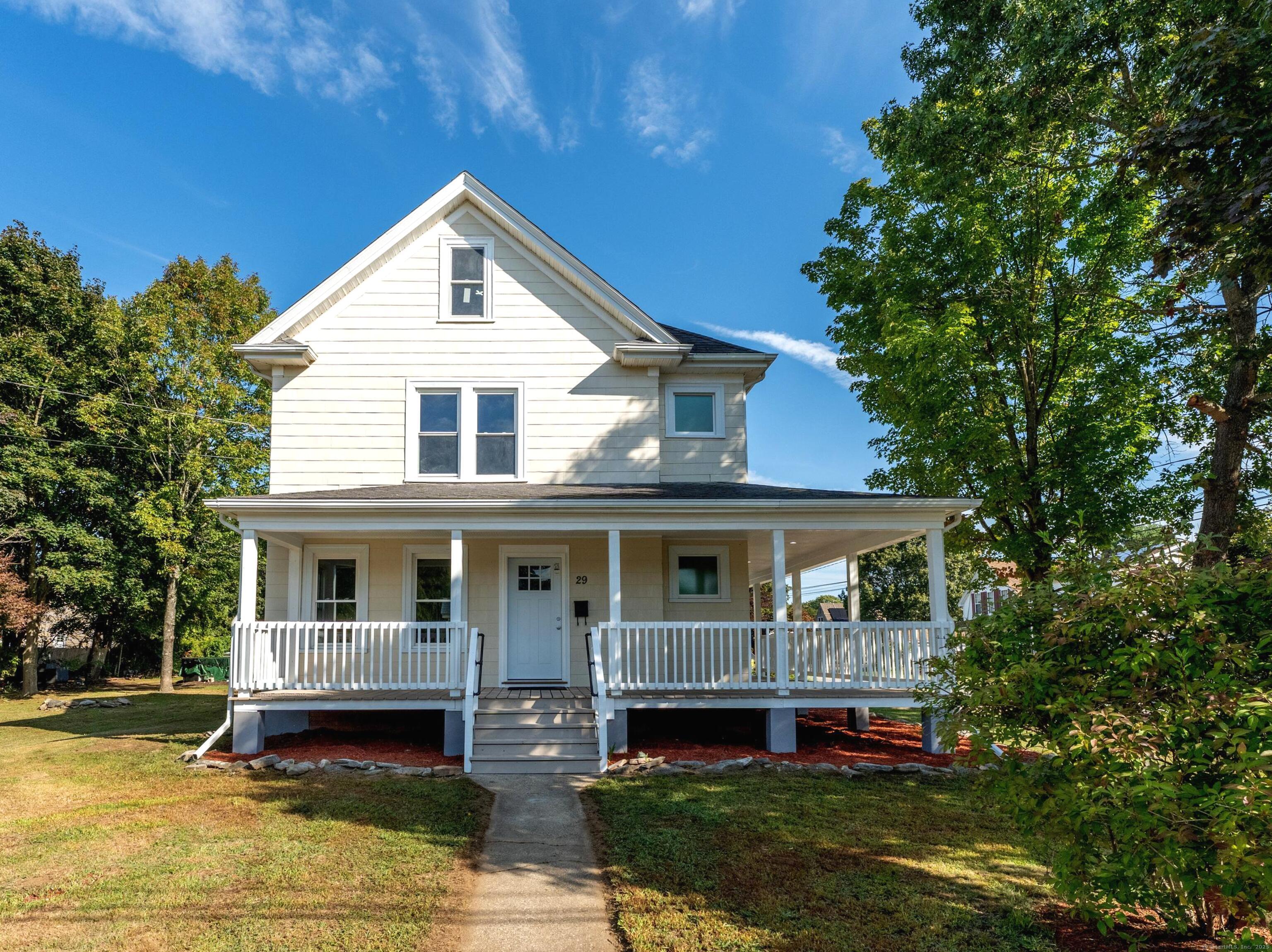 NEED A LOT OF SPACE??? Beautifully Remodeled Colonial with Character, Space & Modern Comforts! Looking for space and charm? Welcome home to 29 Pleasant Street in Plainfield - a newly remodeled Colonial offering over 2,300 sq' (including finished attic) of usable space, plus a wraparound porch perfect for relaxing or entertaining. Step inside to find expansive rooms, tall ceilings, elegant moldings, and warm hardwood floors throughout. The modern kitchen features solid wood soft-close cabinets, butcher block counters, a movable island, and a commercial-grade gas range that's a chef's dream. Enjoy two full baths with ceramic tile finishes, a first-floor laundry, and three generous bedrooms with plenty of storage. A finished walk-up attic with skylights of bright, flexible space. The post-and-beam garage (24x16) with a loft and skylights offers tons of storage or creative workshop potential, plus there's an 8x15 shed behind it for even more space. Some updates include: New insulated windows (most brand new), New 100-amp electrical panel,Bluetooth-enabled, interconnected smoke/CO detectors, LED lighting throughout (interior & exterior, dimmable fixtures, motion floods, and recessed porch lights), Freshly painted and sealed basement walls and floor. With all work professionally permitted and certified complete, this home is truly move-in ready - combining vintage charm with modern comfort and peace of mind. Offers due Sunday night, October 26, 6pm