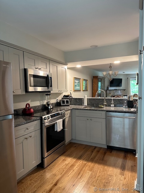 Move right in! You will not want to miss out on this opportunity to own this great home located in a small complex with newer kitchen cabinets and granite counters, gleaming hardwood floors on main level.Enjoy all your meals either at the breakfast bar or dining area. When you are ready to unwind ,relax on the back deck overlooking a peaceful private wooded area, or unwind watching the glow of the lit fireplace.