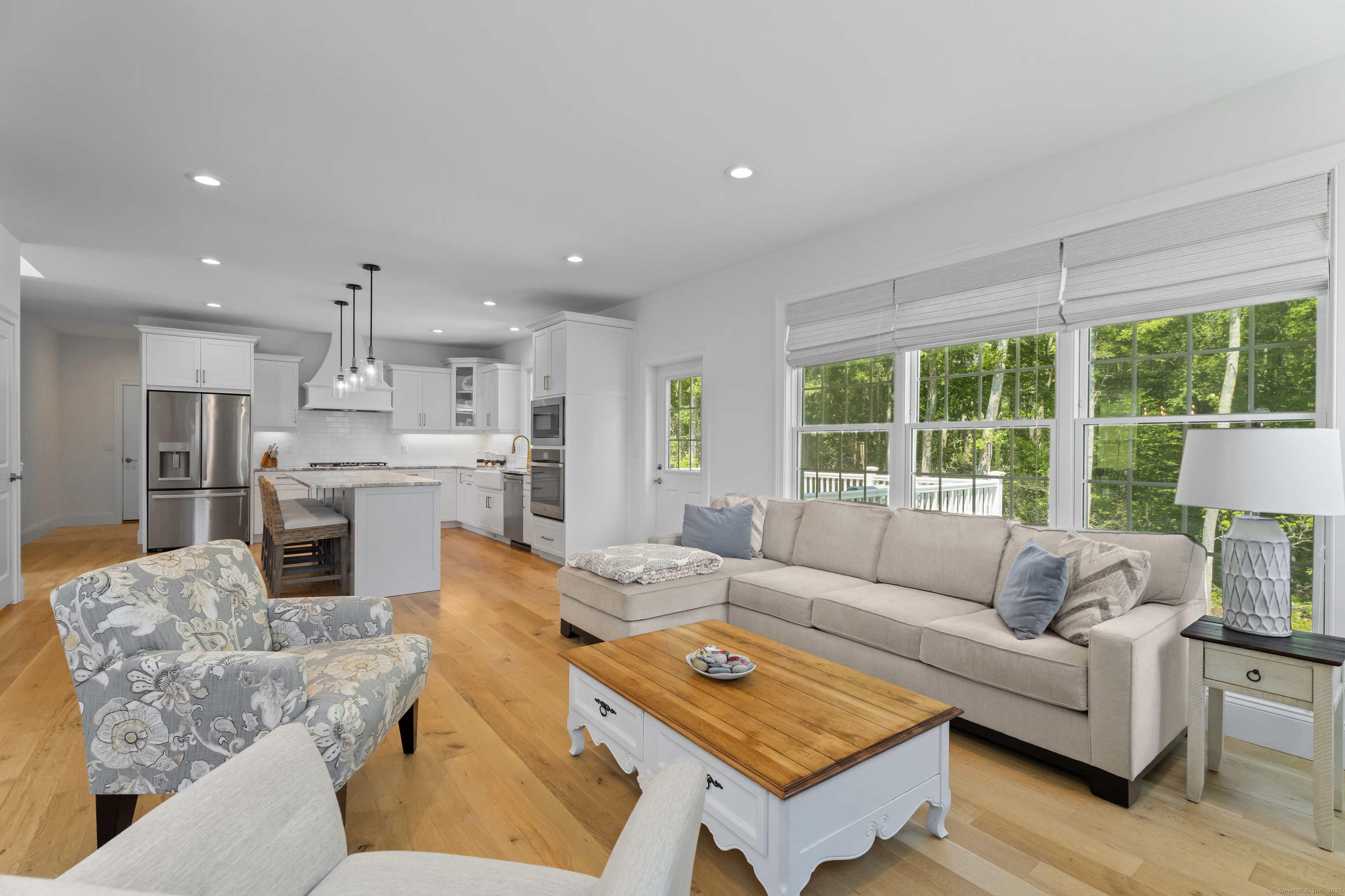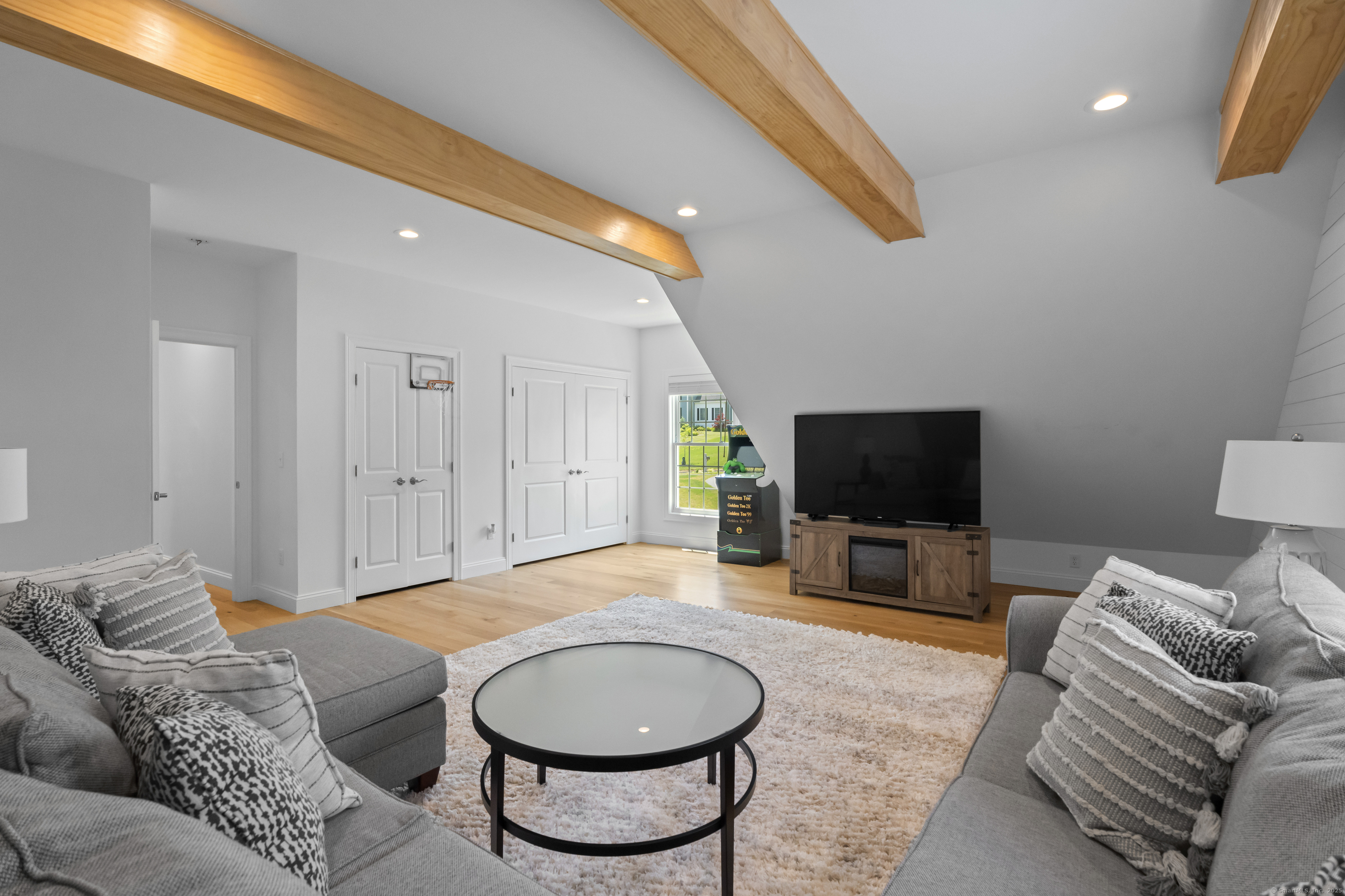 New Price: $995,000 - Exceptional Value in The Orchards! This impeccable home shows like a model and is move-in ready-offering the feel of new construction. Flooded with natural light from oversized windows, the open floor plan features beautiful wide plank white oak flooring and 9' ceilings throughout the main level. The spacious great room with gas fireplace flows into the dining room and kitchen, which boasts white shaker-style cabinets, quartz countertops, soft-close doors, gas cooktop, stainless steel appliances, and a large pantry. A generous deck off the kitchen is perfect for entertaining. A limestone-tiled mudroom with half bath and abundant closets connects to the oversized two-car garage. Formal dining room features wainscoting and oversized windows. Main floor office/den with large windows and closet is ideal for working from home. Upstairs, the spacious primary suite includes a walk-in windowed closet and stylish bath with double vanity and walk-in shower. Two additional sun -filled bedrooms offer ample closet space. A spacious media/game room with beamed ceiling and double closets provides a great retreat. Second-floor bath features limestone floors, dual vanities, and a tub/shower combo. A laundry room with window and sink completes this level. The walk-out basement with high ceilings and multiple windows is perfect for a gym or recreation space.