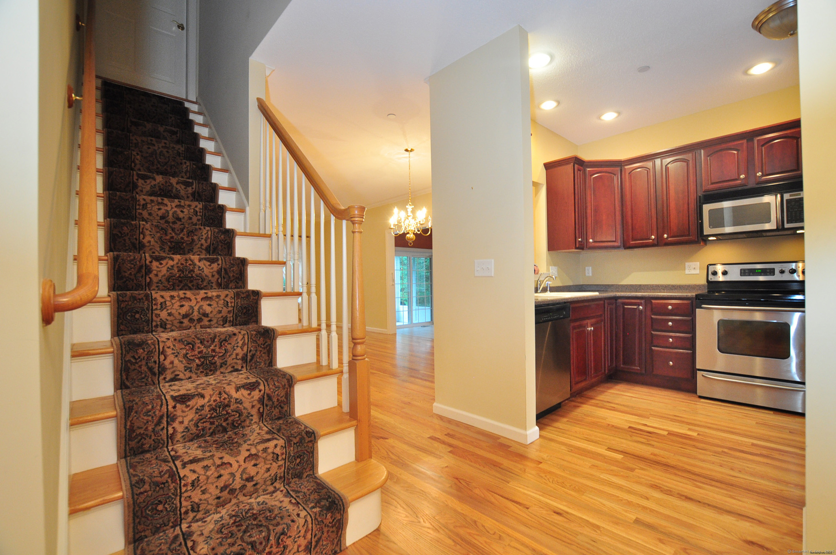 Welcome to the idyllic setting that defines Ballymeade's sought after, active adult community nestled in a breathtaking and tranquil setting. Invite your guests in from the shelter of the covered entryway to this beautiful, two bedroom and two full bath home. An expansive kitchen features an abundance of gorgeous cherry cabinetry and countertop space, stainless steel appliances, recessed lighting, a dine-in area and hardwood flooring. Open to one another, the stunning dining room and living room boast gleaming, newly refinished hardwood flooring, crown molding, recessed lighting and a gas log fireplace. Unwind with your favorite novel in the peace of the bright sunroom, featuring tile flooring and a slider to the enclosed 9' x 12' porch where you can relax as you enjoy the beautiful surroundings. At the end of your day, retire to the spacious, first level Primary bedroom suite featuring a private full bath and linen closet. A second full bath completes the first level. Hardwood stairs lead to two unfinished rooms on the second level, perfect for storage and expansion. There is tremendous value in the central air, newer furnace (2020), newly refinished hardwood flooring, 200 amp electrical, nine foot ceilings and the ease of one-level living. Conveniently located near restaurants, shopping, hiking trails, commuter routes and Bradley Int'l Airport. Ballymeade is recognized for its meticulously maintained grounds and outstanding community. Come on...Let's take a look inside!
