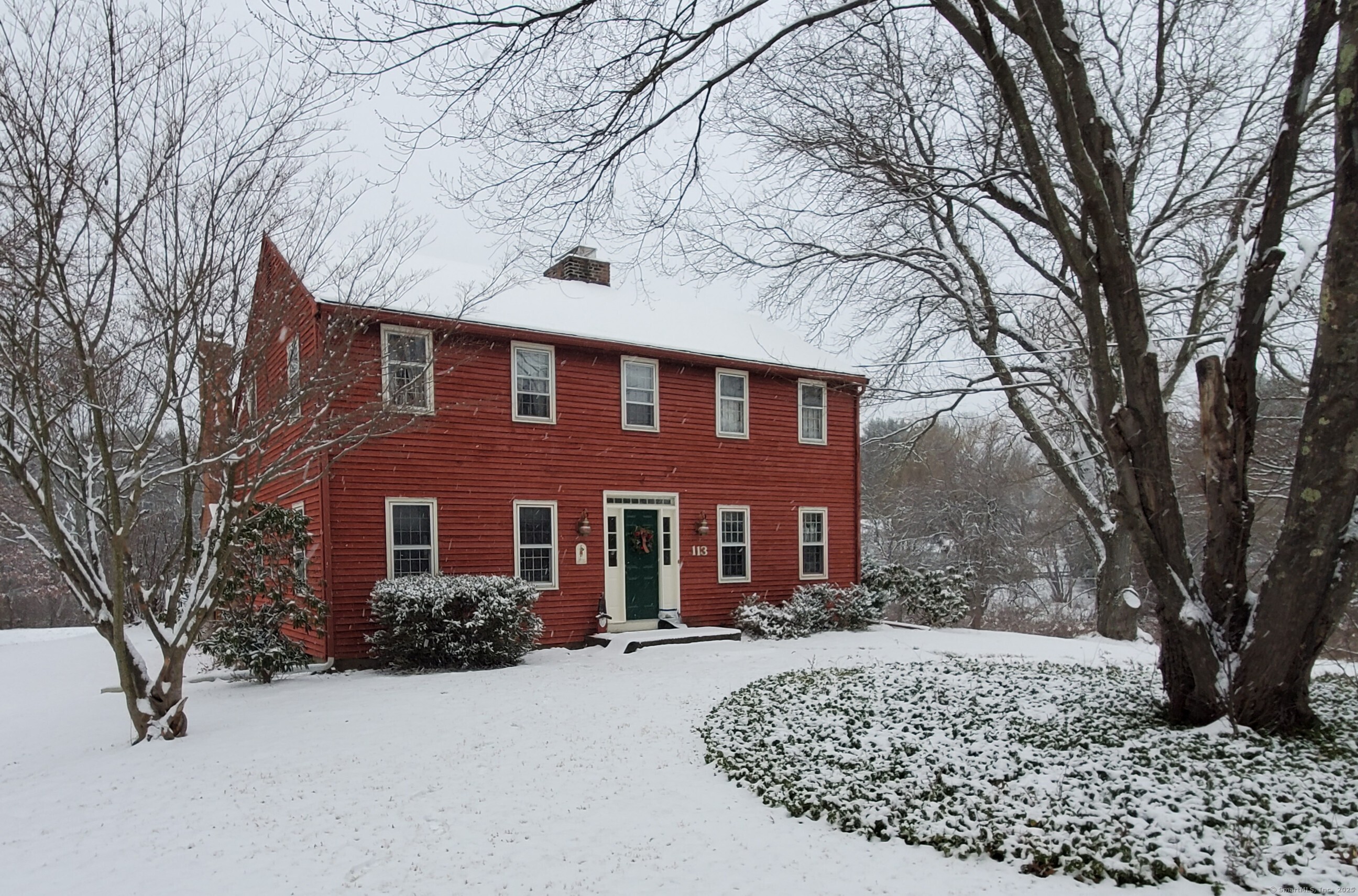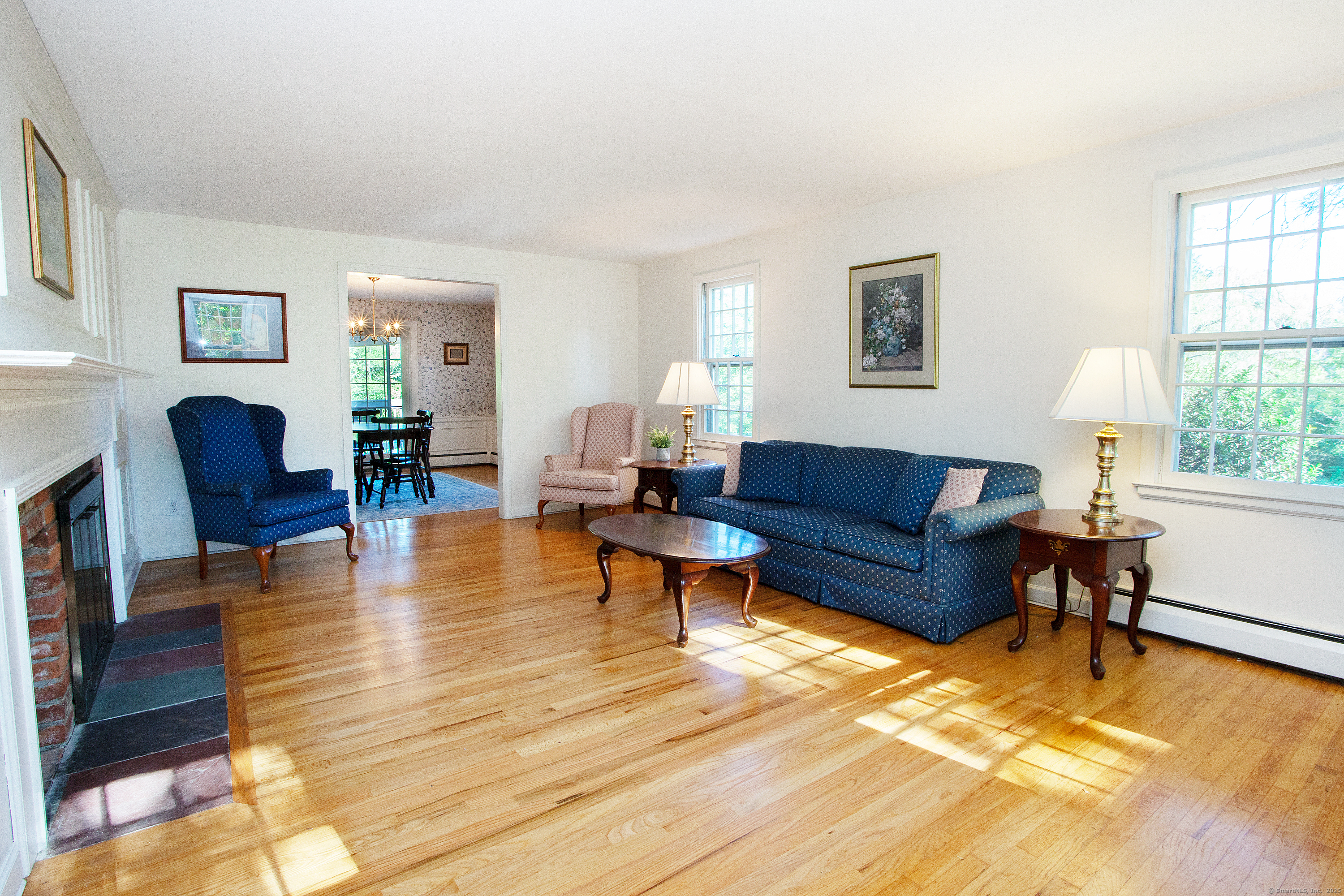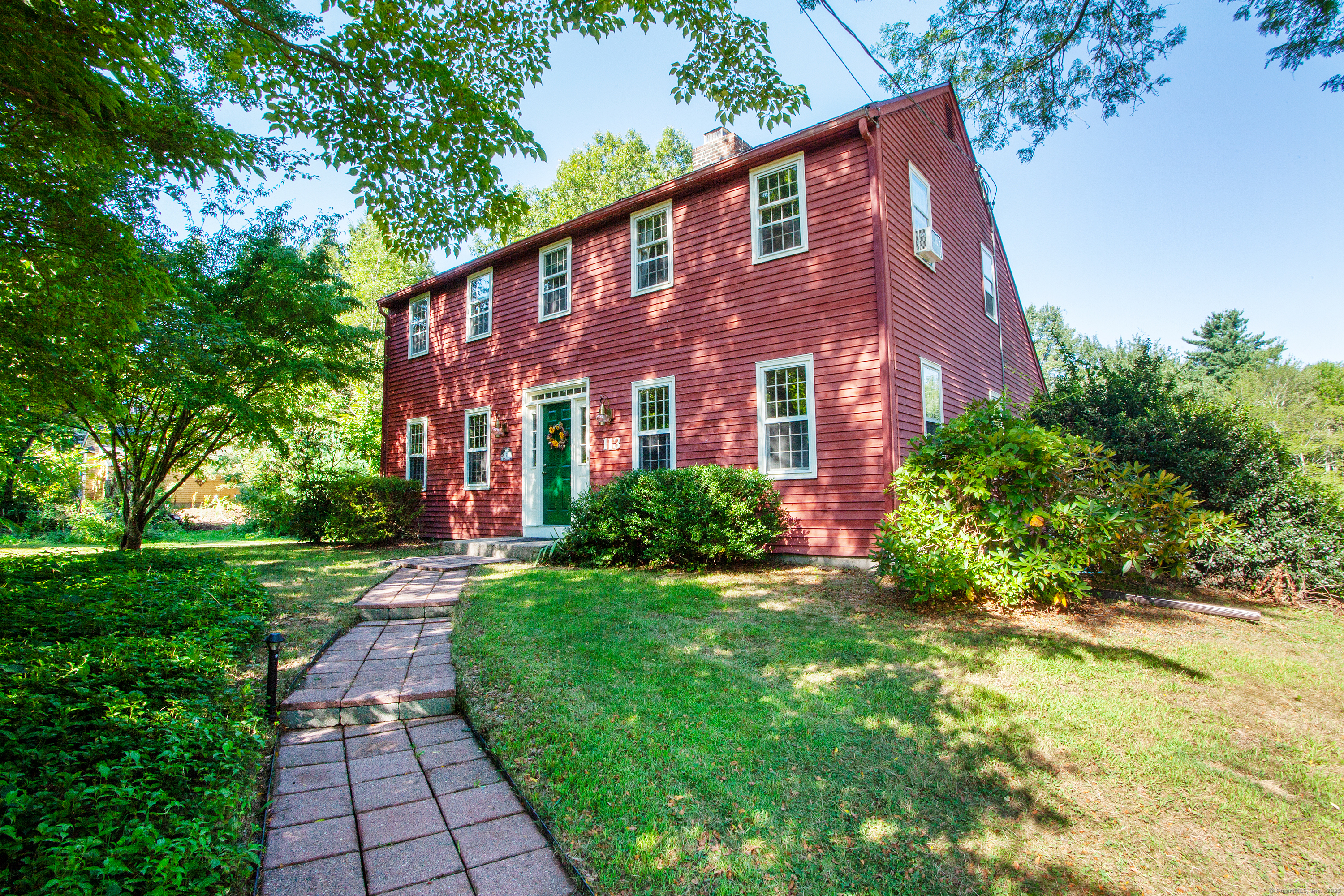 BEST AND FINAL DEADLINE IS SATURDAY 9/6 AT 6PM. Welcome home to 113 Old Farms Rd with an ideal setting for nature lovers. This home offers a gracious living room with hardwood floors and a wood burning fireplace, an eat in kitchen with a second fireplace integrated into a brick wall creating a warm and rustic character-filled space. A dining room with new sliders to the deck, and a cozy den with built ins. Inviting 3 season porch that overlooks a serene, park-like private back yard. The second floor offers 4 spacious bedrooms including the primary with full bath and his/her closets. The lower level offers ample storage space with opportunities for more sqft. Newer roof, hardwood floors throughout. Surrounded by nature offering a serene backdrop, you will love this picturesque location all within walking distance to Simsbury Farms recreation center.