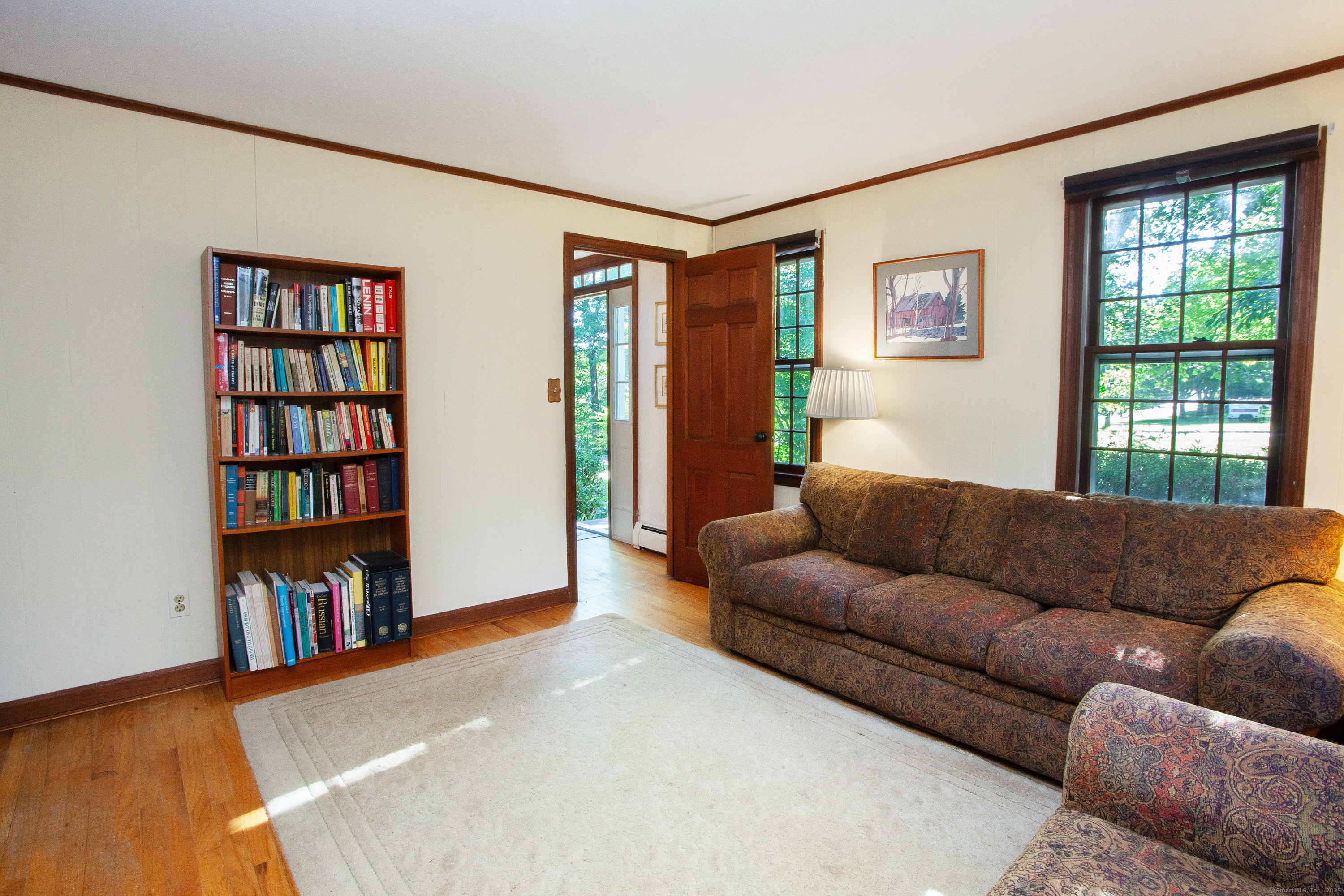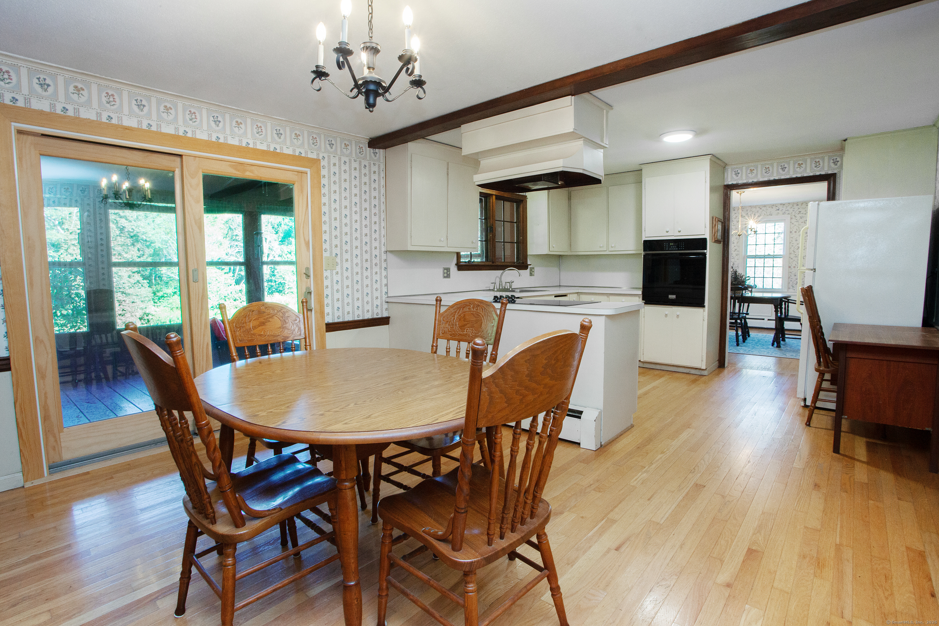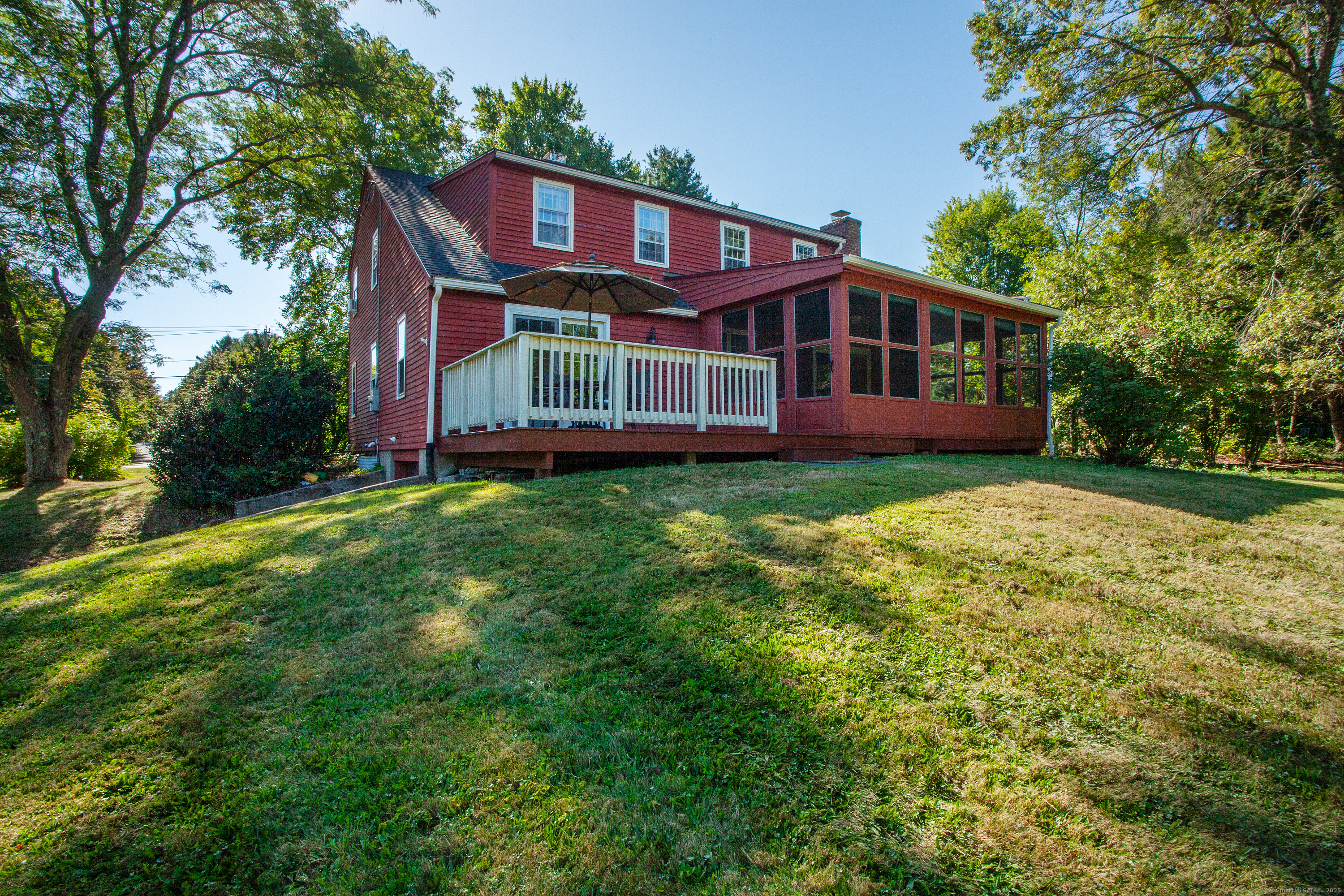 BEST AND FINAL DEADLINE IS SATURDAY 9/6 AT 6PM. Welcome home to 113 Old Farms Rd with an ideal setting for nature lovers. This home offers a gracious living room with hardwood floors and a wood burning fireplace, an eat in kitchen with a second fireplace integrated into a brick wall creating a warm and rustic character-filled space. A dining room with new sliders to the deck, and a cozy den with built ins. Inviting 3 season porch that overlooks a serene, park-like private back yard. The second floor offers 4 spacious bedrooms including the primary with full bath and his/her closets. The lower level offers ample storage space with opportunities for more sqft. Newer roof, hardwood floors throughout. Surrounded by nature offering a serene backdrop, you will love this picturesque location all within walking distance to Simsbury Farms recreation center.