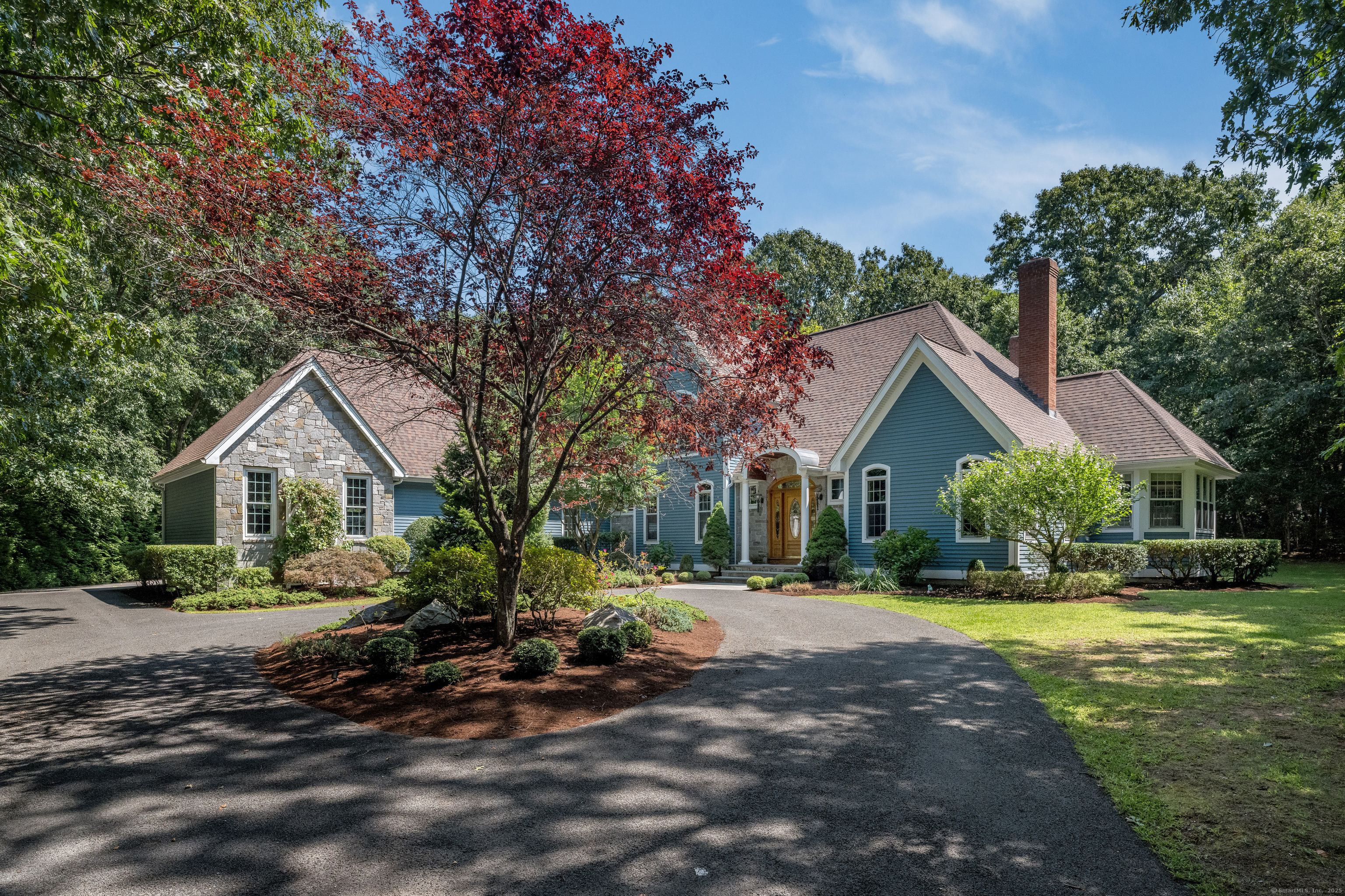 Framed by mature landscape and extensive hardscape, welcome to this private Watrous Point country home. Find a gracious, barrel-vaulted entry and a gallery-style foyer flanked by the library. Built to entertain, a solid cherry kitchen commands an 8-burner Wolf range, two Gaggenau convection ovens, warming drawers, dual Subzeros and a dream pantry. One of two fieldstone fireplaces anchors the dining area. A beverage center with wine cooler/icemaker bridges space to the great room - a soaring space with floor to ceiling fieldstone fireplace. Completing the utility spaces are the laundry, mud and powder rooms. The main level primary bedroom offers custom closets and a full bath. Upstairs, architectural angles provide interest and loft in all three bedrooms, all with seldom found ensuite baths and custom closets. The finished lower-level bonus room and half bath have a separate heating zone. There is extensive storage. Outside, find a gunite, heated pool with spa and a pool house. The heated woodshop offers many possibilities. Extensive updates include geothermal heating, Rinnai propane hot water heater, pool and pool house, woodshop, roof 2023, exterior paint 2024. Equidistant to Essex and Old Saybrook Main Streets, this quiet retreat is a stone's throw to all lower Connecticut River valley gems. Three acres provides privacy not maintenance. Enjoy meandering, country roads for walking and nearby Turtle Creek Preserve. Just 6 minutes to the train and 2 hours from NY and Boston.