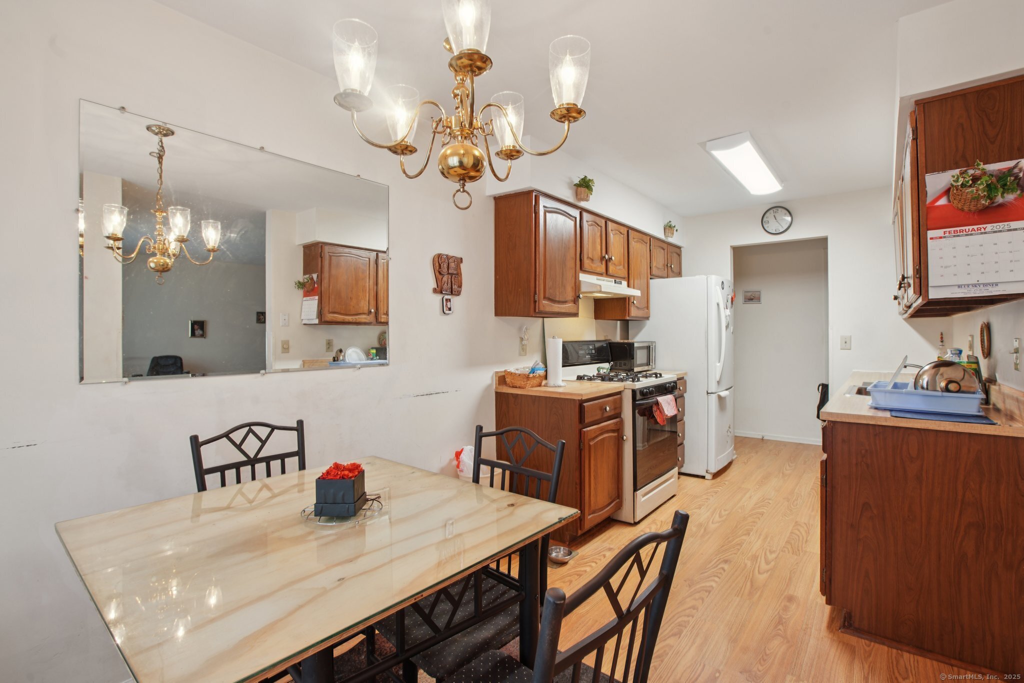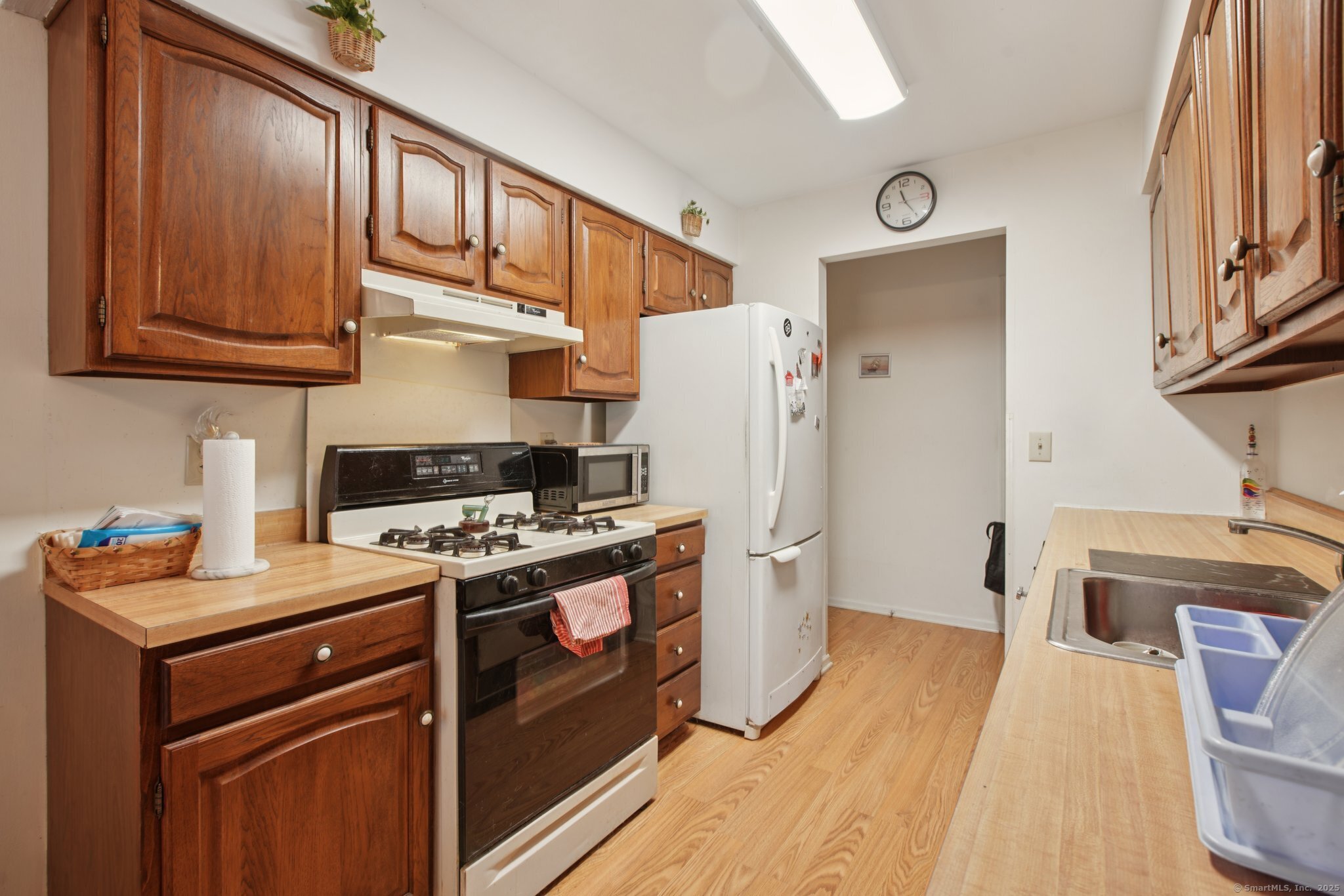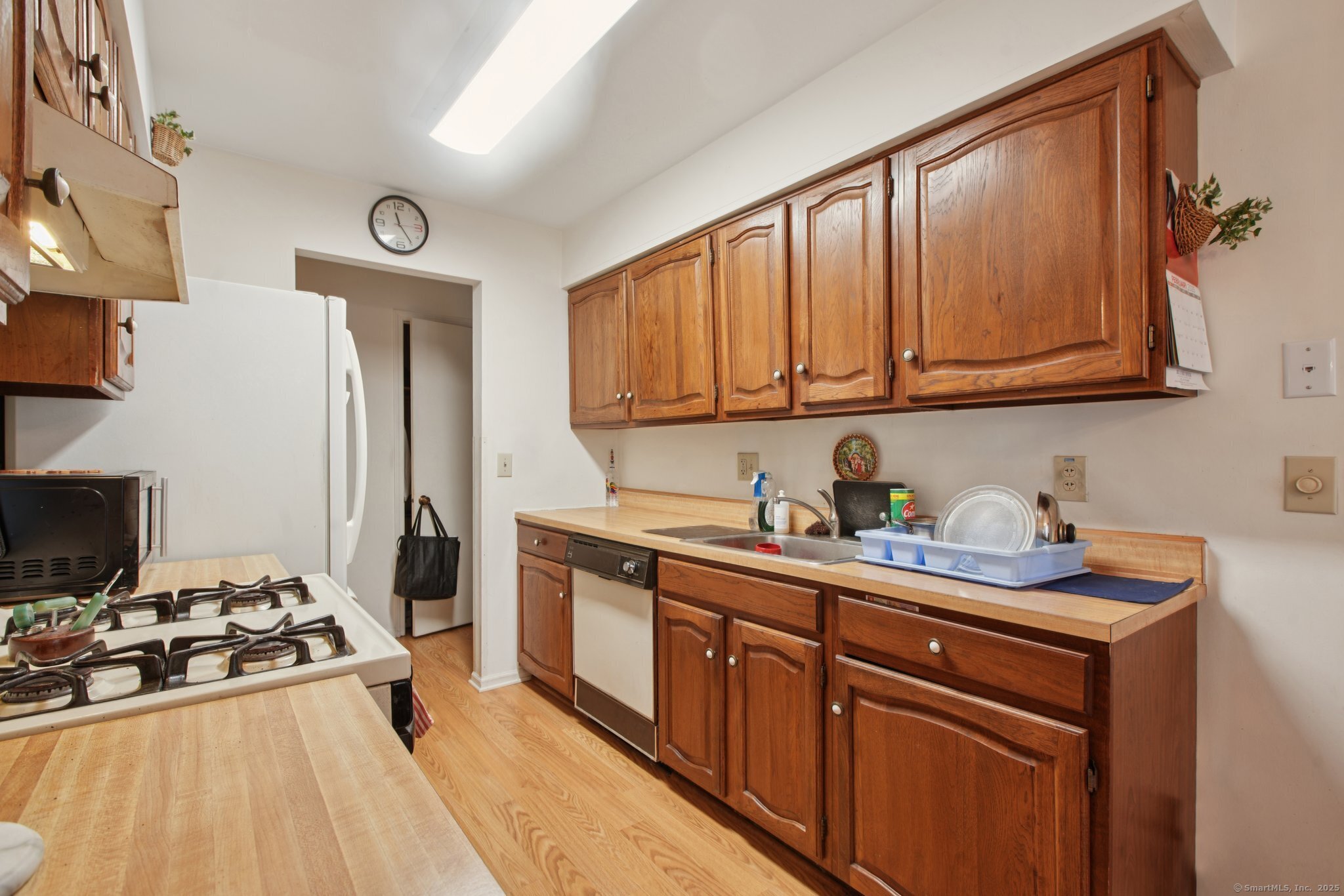 Welcome to 27 Teresa Place, Unit 27, an inviting end unit condo tucked away in Bridgeport's desirable North End that blends comfort and convenience with every detail designed for easy living. Step inside to find a bright open layout where hardwood floors flow seamlessly from the spacious living room into the dining area and kitchen. The living room feels warm and welcoming with its ceiling fan and natural light, creating the perfect space to relax or entertain. The kitchen offers plenty of cabinet space and comes fully equipped with a dishwasher, oven range, refrigerator, washer and dryer, making daily life effortless. The bedroom is generously sized with hardwood floors and a ceiling fan, while the full bath features tile flooring for a clean, modern touch. This home also includes access to a shared basement with storage, giving you extra space when you need it, and the complex offers beautifully maintained grounds and a community pool, perfect for warm summer days. With heat, hot water, snow removal, trash pickup and grounds maintenance all included in the HOA, this move-in ready condo delivers comfort, convenience and community whether you're a first-time buyer, downsizing, or simply looking for a well-kept space to call home.