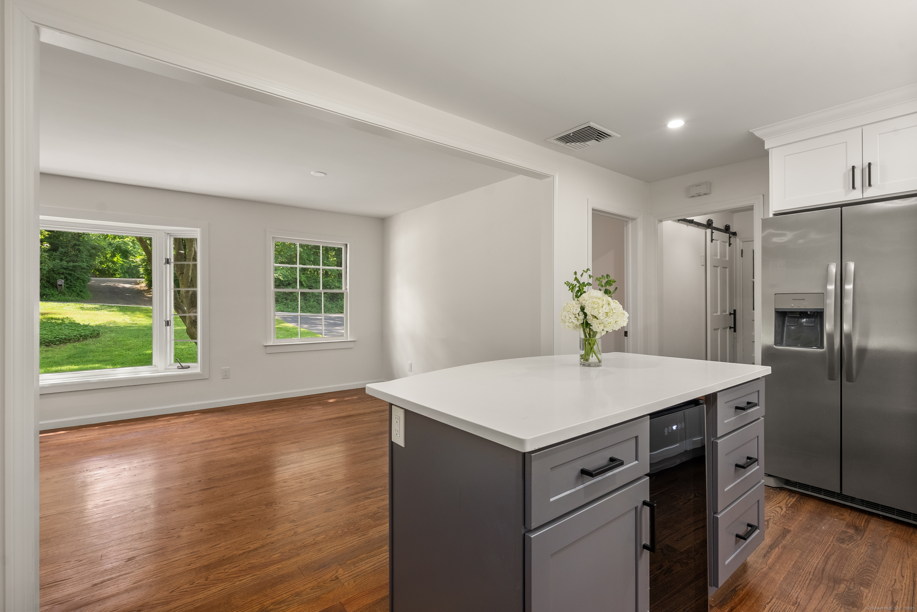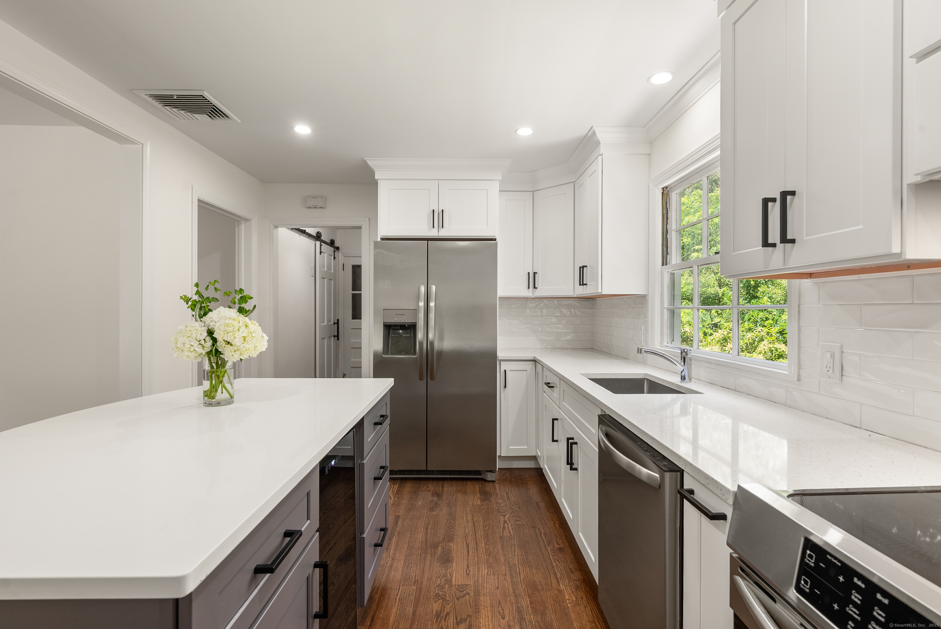 Renovated, Refined, Ready to welcome you Home! Nestled in a quiet Wilton neighborhood, this fully renovated ranch-style home offers turnkey living inside and out. The brand-new kitchen is filled with natural light and opens to the dining area, living room and sunroom creating a warm and inviting space. The main level features three bedrooms, including a primary suite with an en-suite bath, plus an additional full and half bath. The finished walk-out lower level adds versatility, complete with a spacious recreation/playroom, full bathroom, wet bar, and a flexible room ideal for guests, or a home office. Set on 1.4 beautifully landscaped acres, the property is ideal for outdoor entertaining and everyday enjoyment.