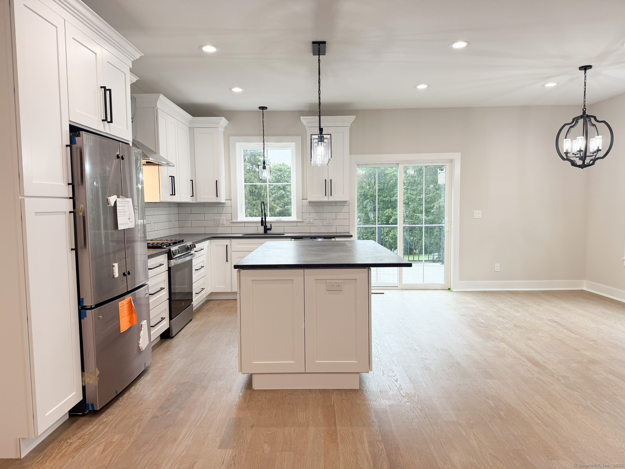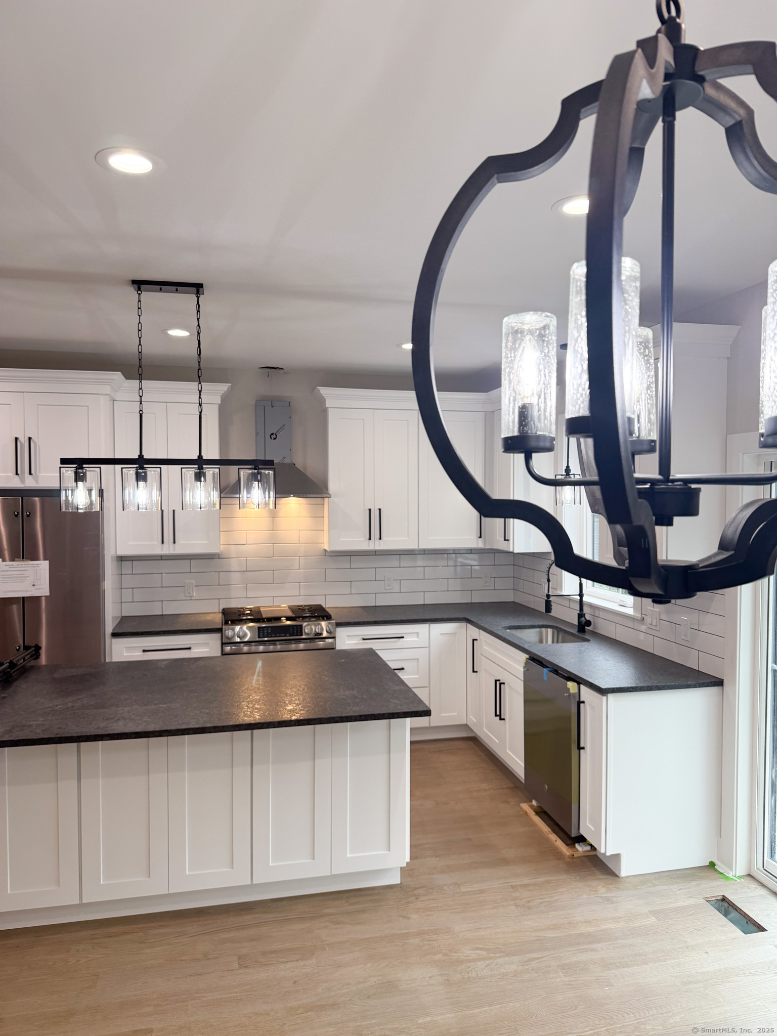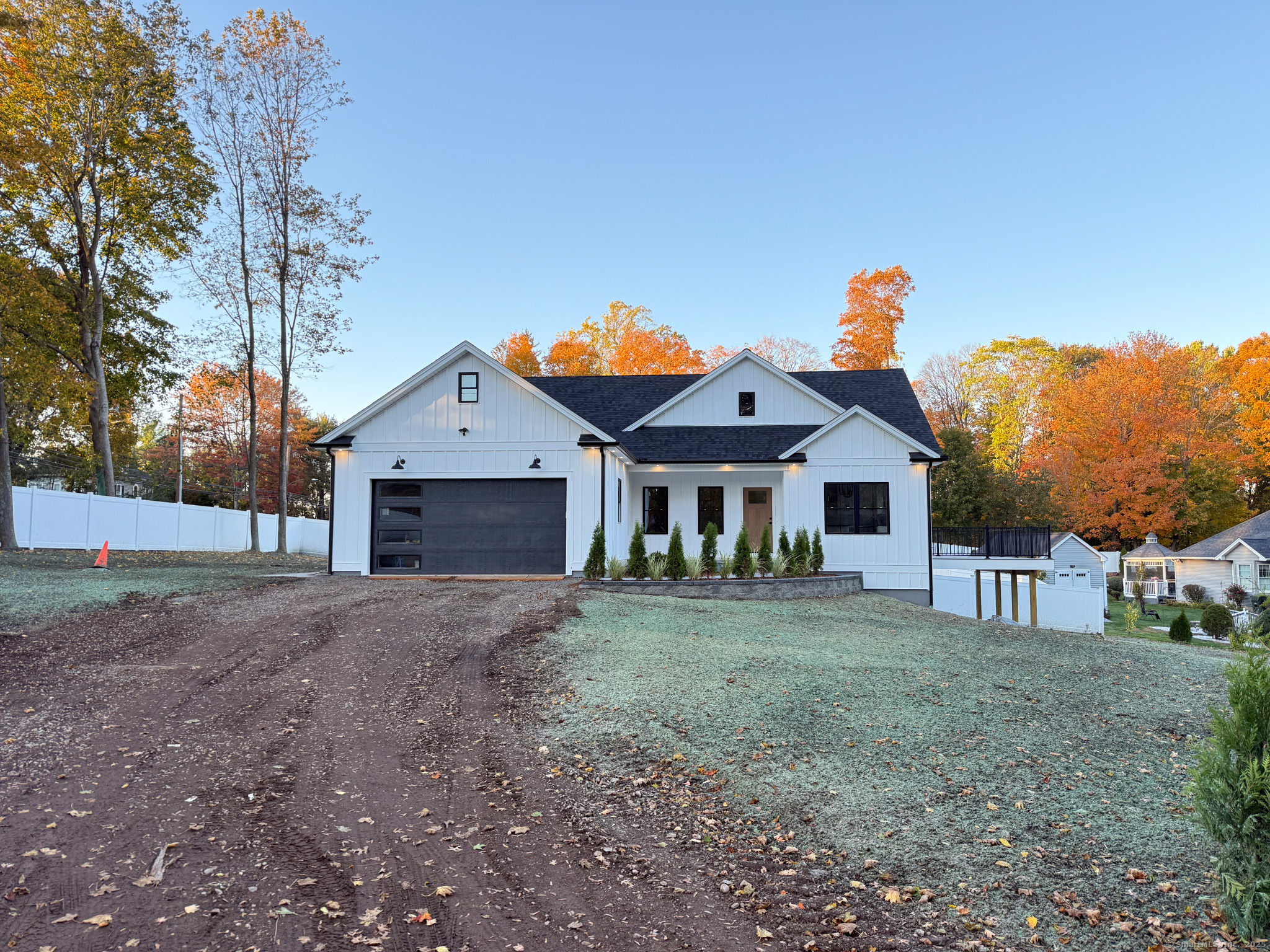 Stunning new construction ranch-style home by Zk Builders LLC, a highly respected name known throughout the local market for delivering superior craftsmanship and exceptional quality. This thoughtfully designed residence offers true one-floor living with 9 ft ceilings, gleaming hardwood floors, and high-end finishes throughout. The open-concept layout features a chef's kitchen with SS appliances and custom cabinetry, seamlessly flowing into spacious living and dining areas-perfect for entertaining or quiet evenings at home. The modern farmhouse aesthetic is highlighted by crisp vertical white siding, striking black windows and doors, and stylish architectural touches. The full walk-out basement with sliders offers incredible potential for additional finished square footage, while the expansive unfinished attic adds even more flexibility for future customization. Additional features include gas heating, city water and sewer connections, and energy-efficient construction throughout. Don't miss your chance to own a brand-new home built to the highest standards by one of the area's most trusted builders.