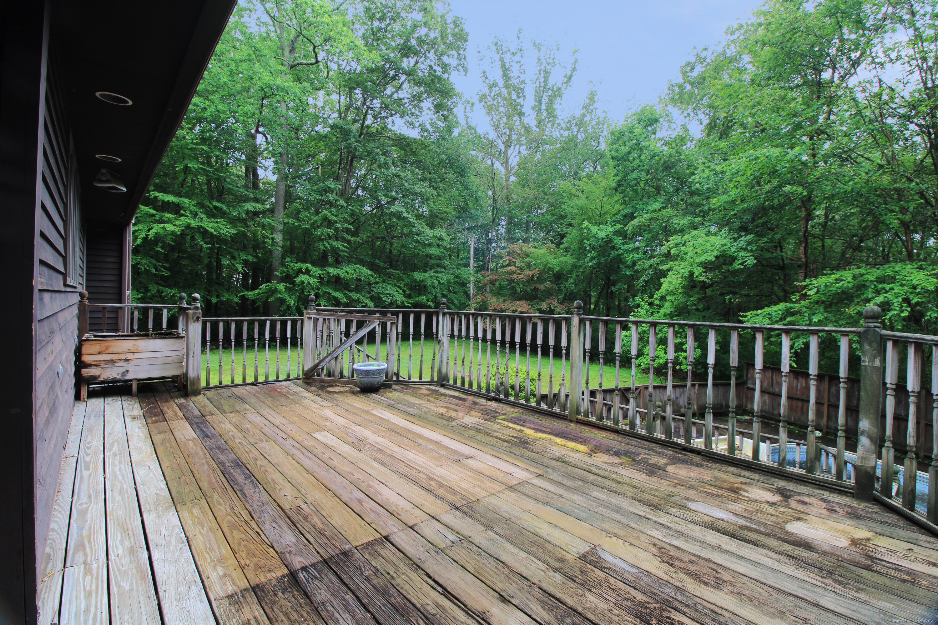 Private wooded setting, multi-level Tudor Style home on 2.62 acres. Enter through a double front door into a 2-story foyer, living room with fireplace, large primary bedroom suite with walk in closet, full bath with tub and separate shower, separate laundry room with built in desk, large kitchen with separate eating area with slider to deck, formal dining room, family room with fireplace and wet bar plus 3 additional bedrooms and a total of 3 full baths. Most rooms have hardwood flooring. Large basement with additional room, oversized 3 car garage, plenty of driveway parking, and IG pool.