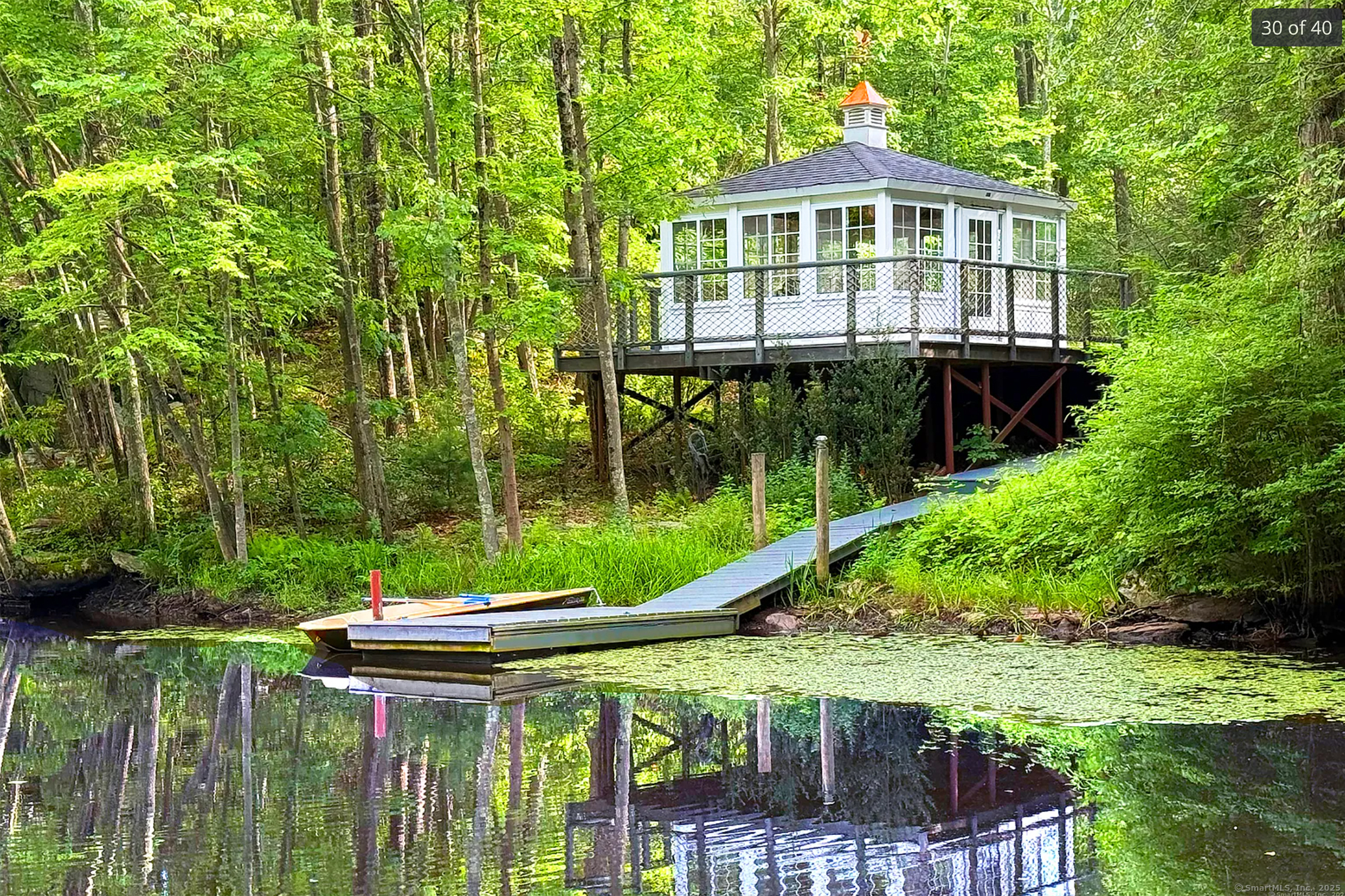 Stone Heron Farm: Rare find! Private compound on over 70 beautifully serene acres in the Killingworth and Haddam hills! Easy commute to Boston, NY, shore. Come home to this lovingly re-crafted antique Cape Cod. 3 bed, 3 full baths, private primary. Wide pine floors throughout, 4 fireplaces, and a wraparound deck. Relaxed open-concept with a sophisticated farmhouse vibe. Chef's kitchen boasts handcrafted cabinetry, granite tops, SubZero, Wolf appliances. Main floor laundry. A bright sunroom opens to the deck and remarkable views! Acres of fenced pasture ready to ride: full turnout, round pen, paddock, stable, tack room, kitchen, bath, storage, gazebo. Restore the riding ring or build a tennis court, pool, or gardens? Inviting guest cottage with cathedral ceilings, charming open floor plan, built-ins, walnut floors, private deck. Versatile two-story workshop with cherry floors, stained glass, attached storage. Stunning meditative pond house with dock and local Blue Heron visits! Two-bay detached garage and other outbuildings. Property meticulously maintained. Farm adjoins 41.91 acres of Haddam land; trail ride without ever leaving your property! Land features rolling woodlands, trails, bridges, for recreation. A healthy lifestyle right in your backyard. Bonus: Gorgeous, partially cleared acreage above the pond. Bonus: For added privacy, lovely 10 wooded acres teeming with wildlife across Jackson Rd. Incomparable country living in the quiet heart of Connecticut. Two video tours!
