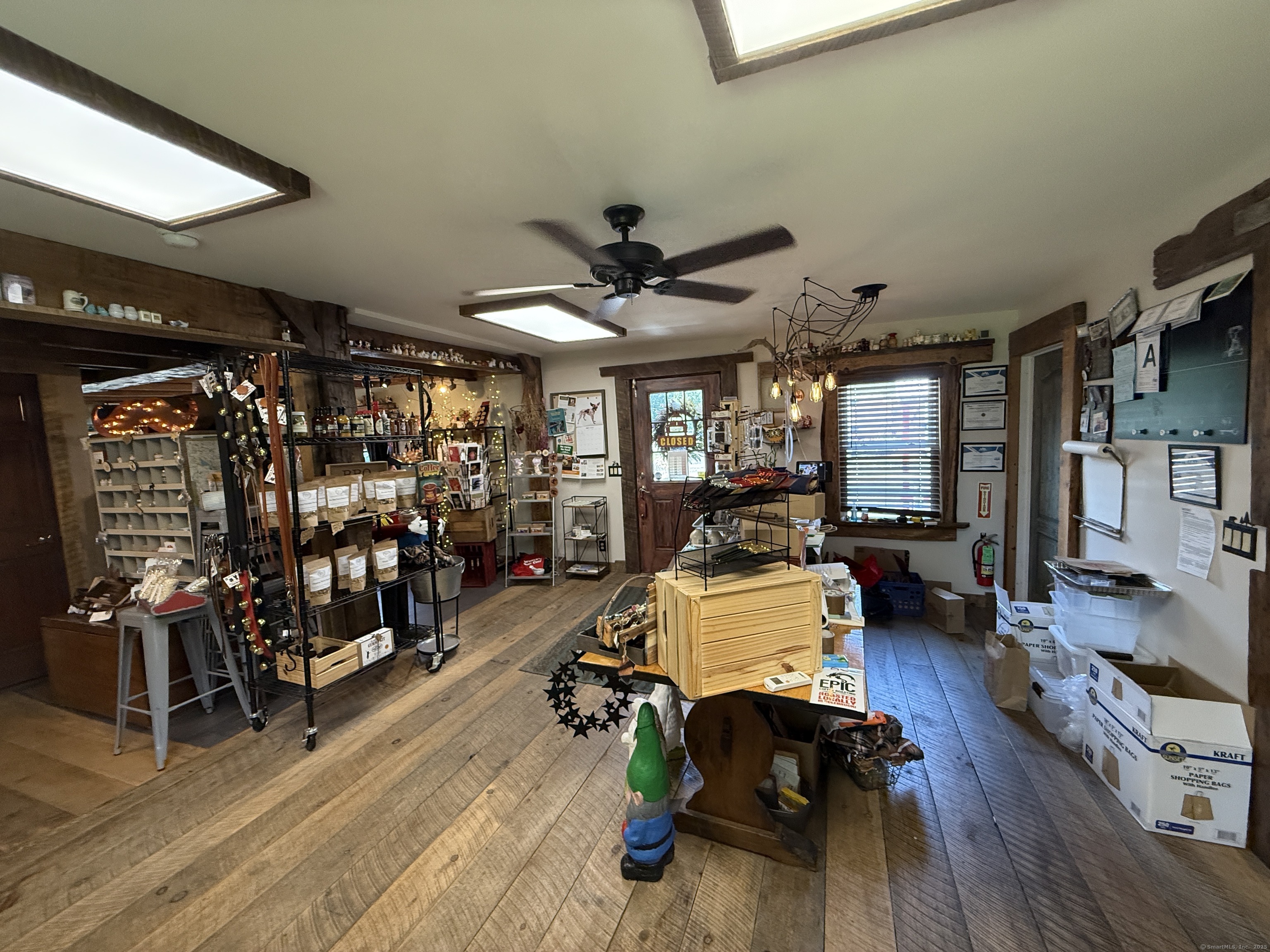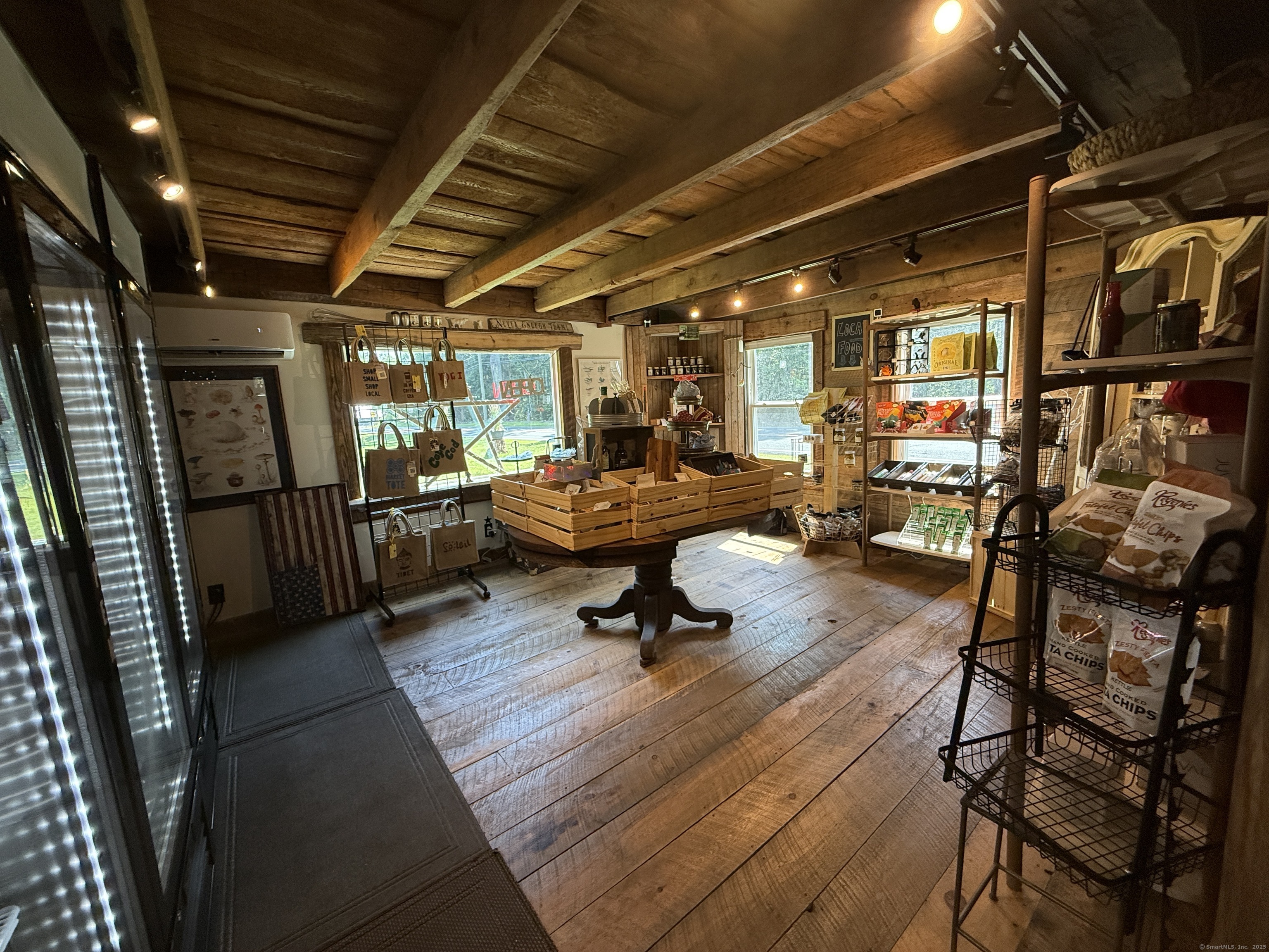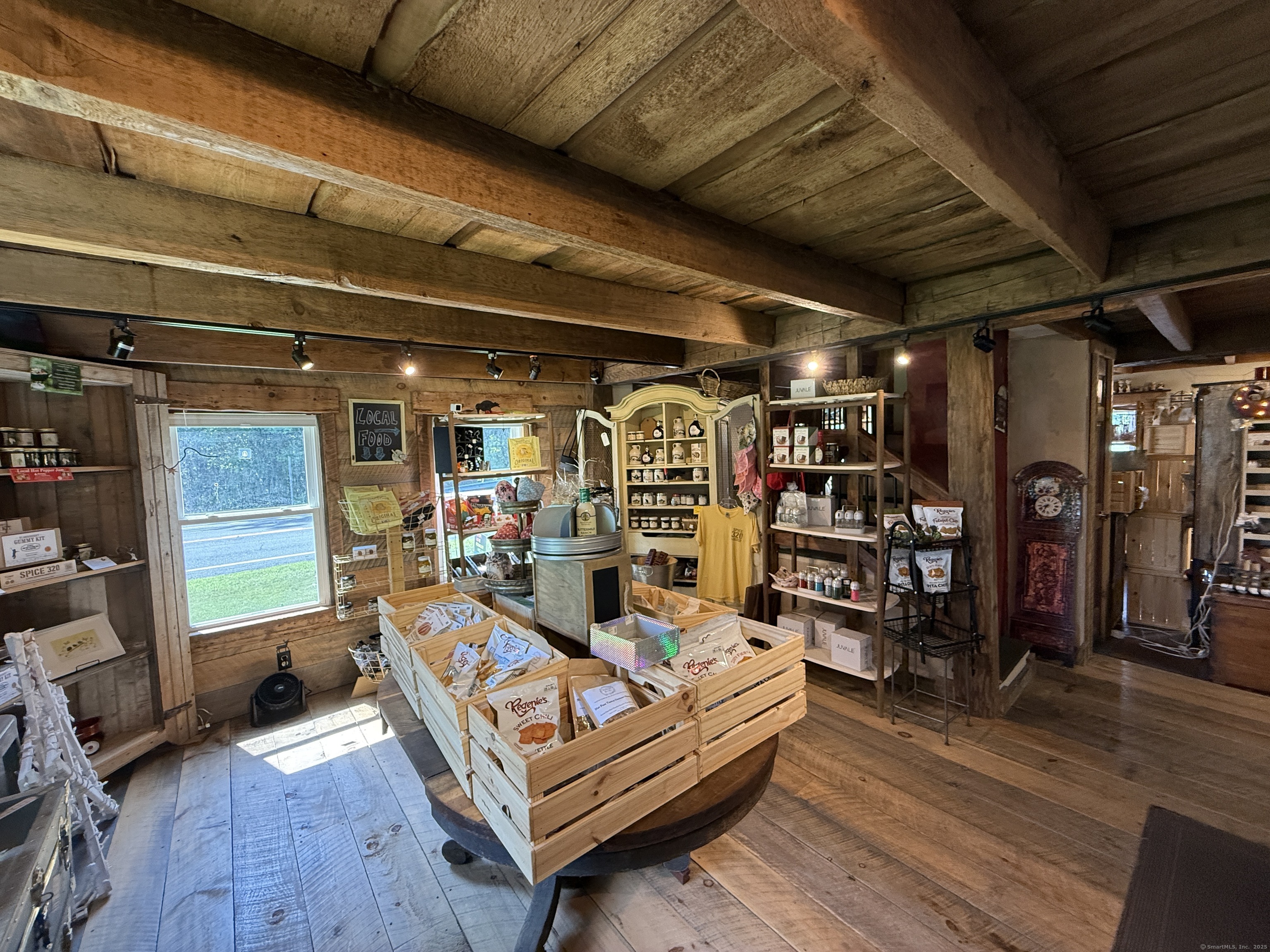 Strategically located on Route 8 North with high traffic visibility, this versatile commercial property is currently operating as a Chef-Driven Market that collaborates with local farms and vendors. A well-known food destination in the heart of Connecticut's farm country, it features 793 sq. ft. of retail space, a 330 sq. ft. commercial kitchen, and 540 sq. ft. of upper-level office/storage. Outside, a two-car detached garage offers potential for conversion into additional seating or a venue for small catered events. The current owners have only begun to tap into this property's full potential. Whether you're expanding a culinary business, launching a retail venture, or seeking a unique live/work opportunity, this property offers exceptional flexibility and visibility.
