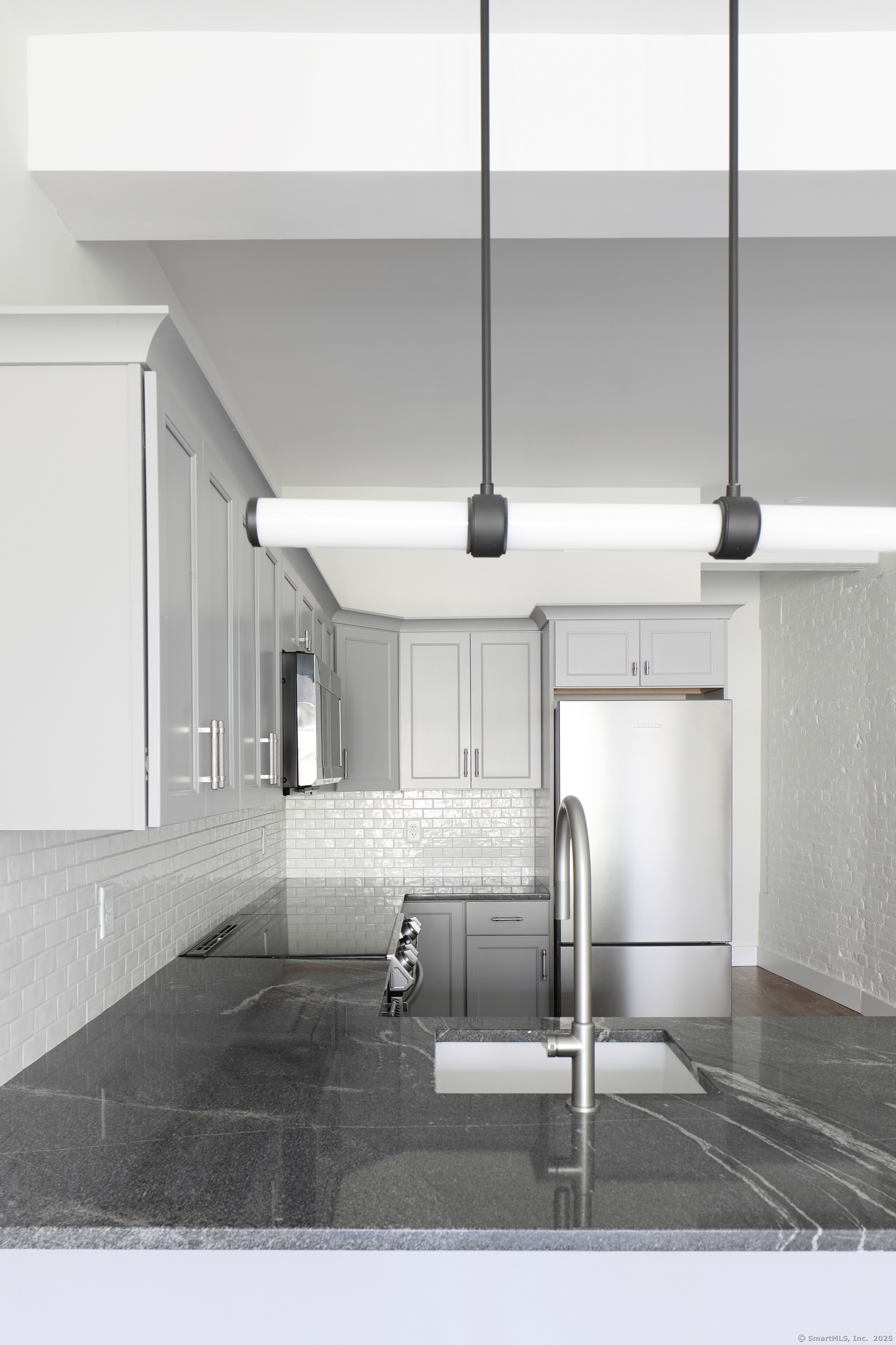 Riverbank offers waterfront living in this 2-bedroom, 2-bath residence. This unit includes a private roof deck, community gym, bike room and mail room. Inside, the kitchens have granite countertops, a spacious island, and stainless steel appliances. In unit washer and dryer and central AC and heat. The apartment has high ceilings, large format windows, and hardwood flooring. Centrally located and close to train station and ferry terminal.