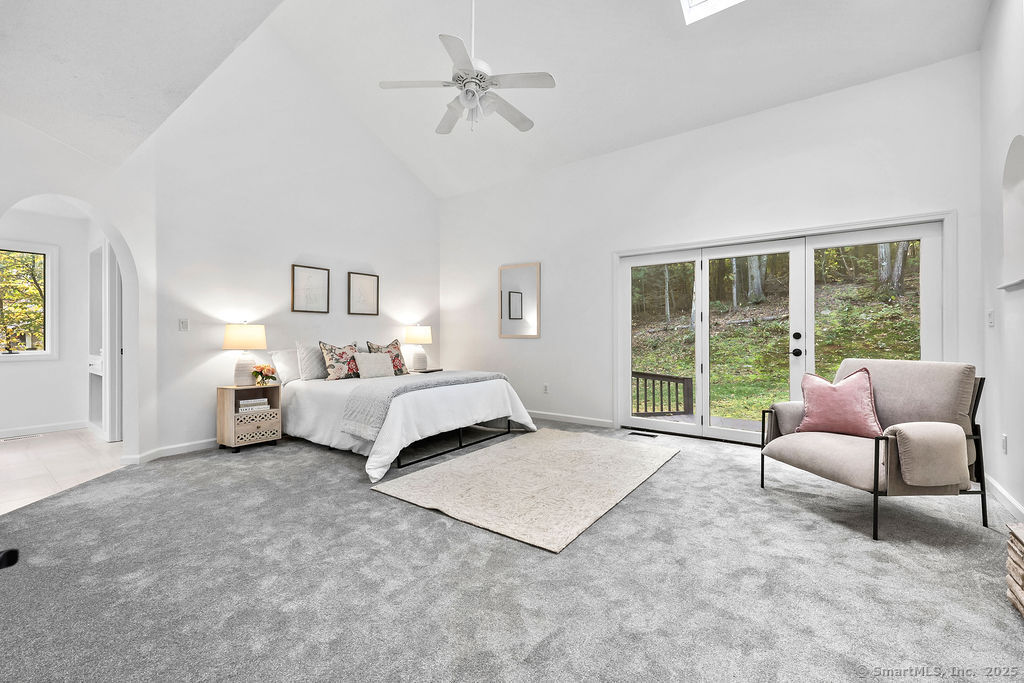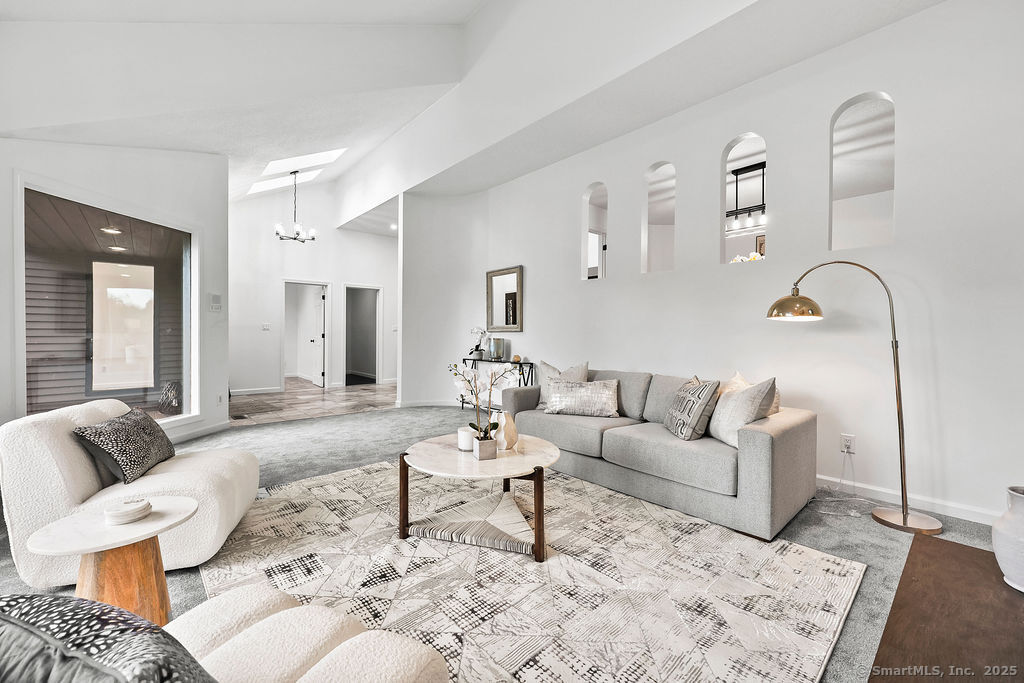 *OFFER DEADLINE THURSDAY 10/23* Design forward custom built contemporary w/panoramic sunset views from every room, including a private balcony overlooking the expansive front yard and neighborhood. NEW driveway, AC/unit, exterior/interior paint, carpet, lighting, refinished hardwood floors, NEWER dual 330 gallon oil tanks and newer well! This 5 bedroom/5 full bath home sits on newly paved South Glastonbury cul de sac and is perfectly appointed for both elegance and privacy. Architecturally distinctive, the floor plan offers endless opportunities and creativity for work, play, entertaining, multigenerational living. The sun drenched atrium has soaring wood plank ceilings and refinished hardwood floors. Office, formal living room and family room, all generously sized. Kitchen w/NEW APPLIANCES includes double wall ovens, granite counters, BRAND NEW flooring. Skylights bring in natural light. Spacious and airy dining room with french doors over looking the formal living room. Comfortable family room with wall to wall stone fireplace walks out to a patio extending the length of the house, overlooking the private backyard. Primary bedroom with stone fireplace has a NEWLY REMODELED luxurious dual shower and soaking tub. Additional 4 bedrooms w/4 full bathrooms for all of your family and guests. Finished lower level with vaulted ceilings, oversized windows and NEW PELLET STOVE in floor to ceiling stone fire place.