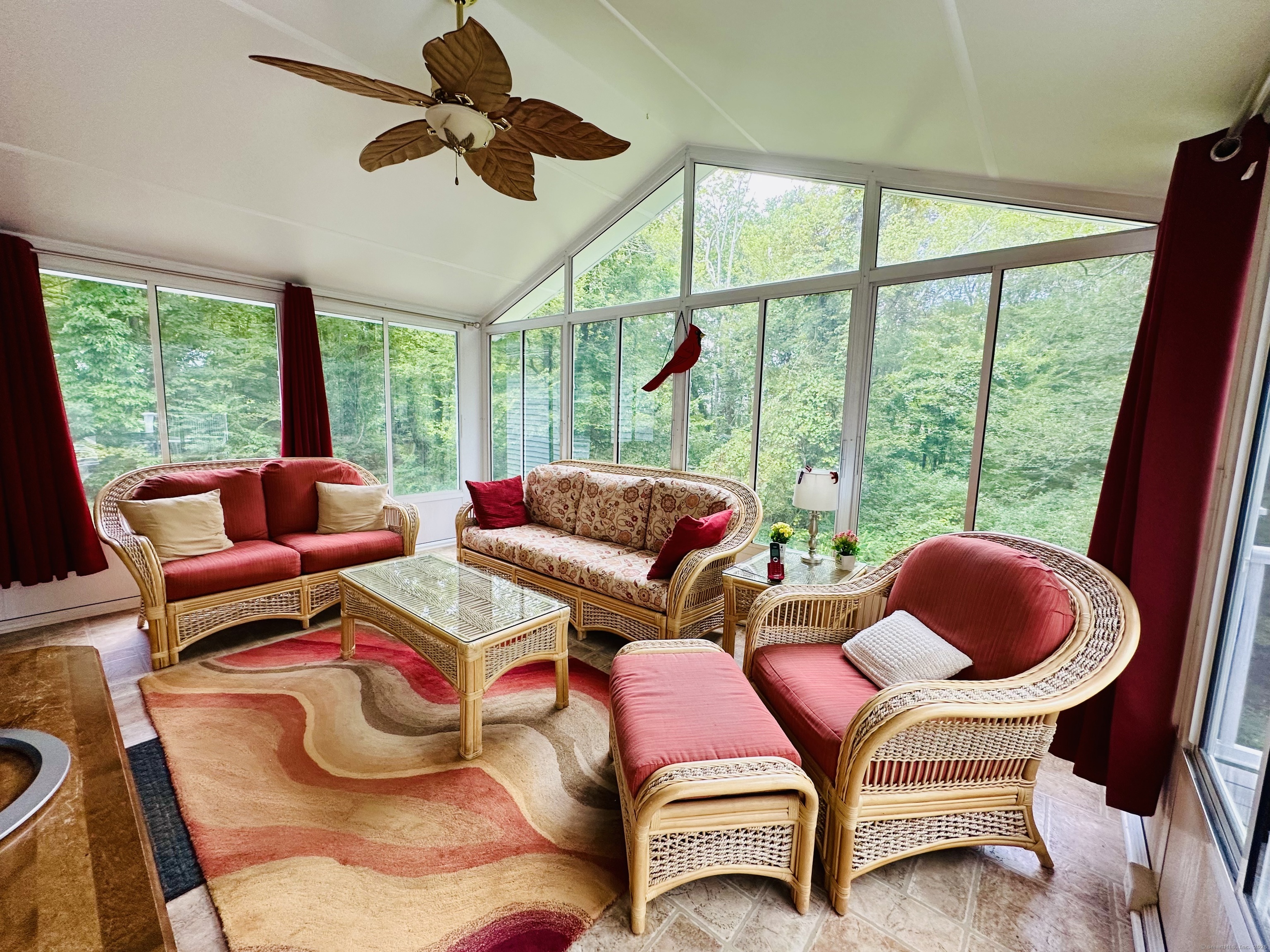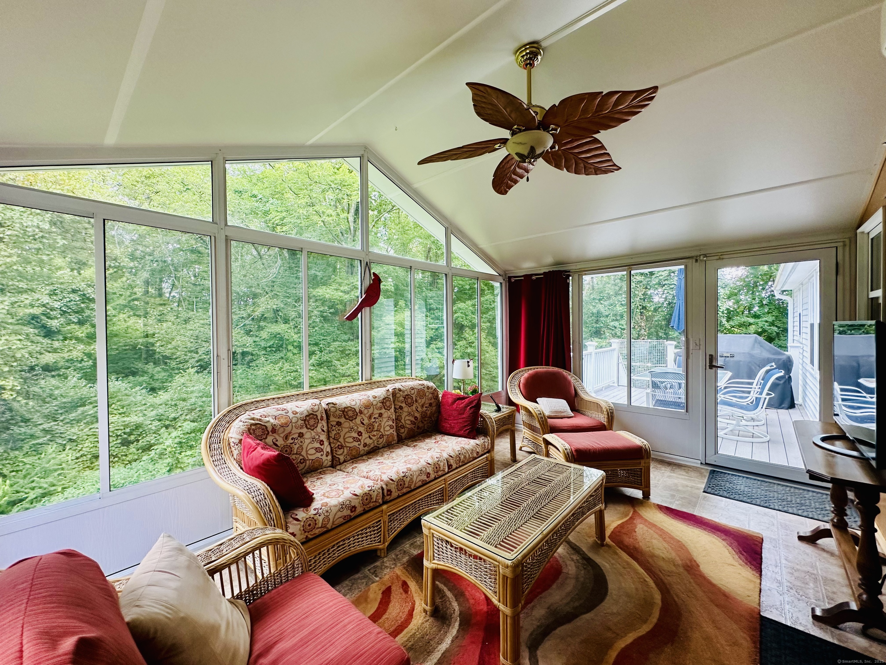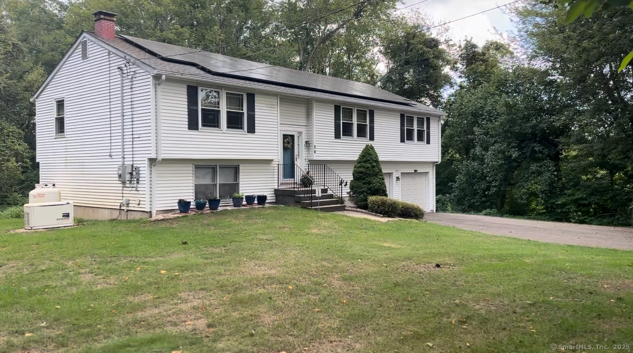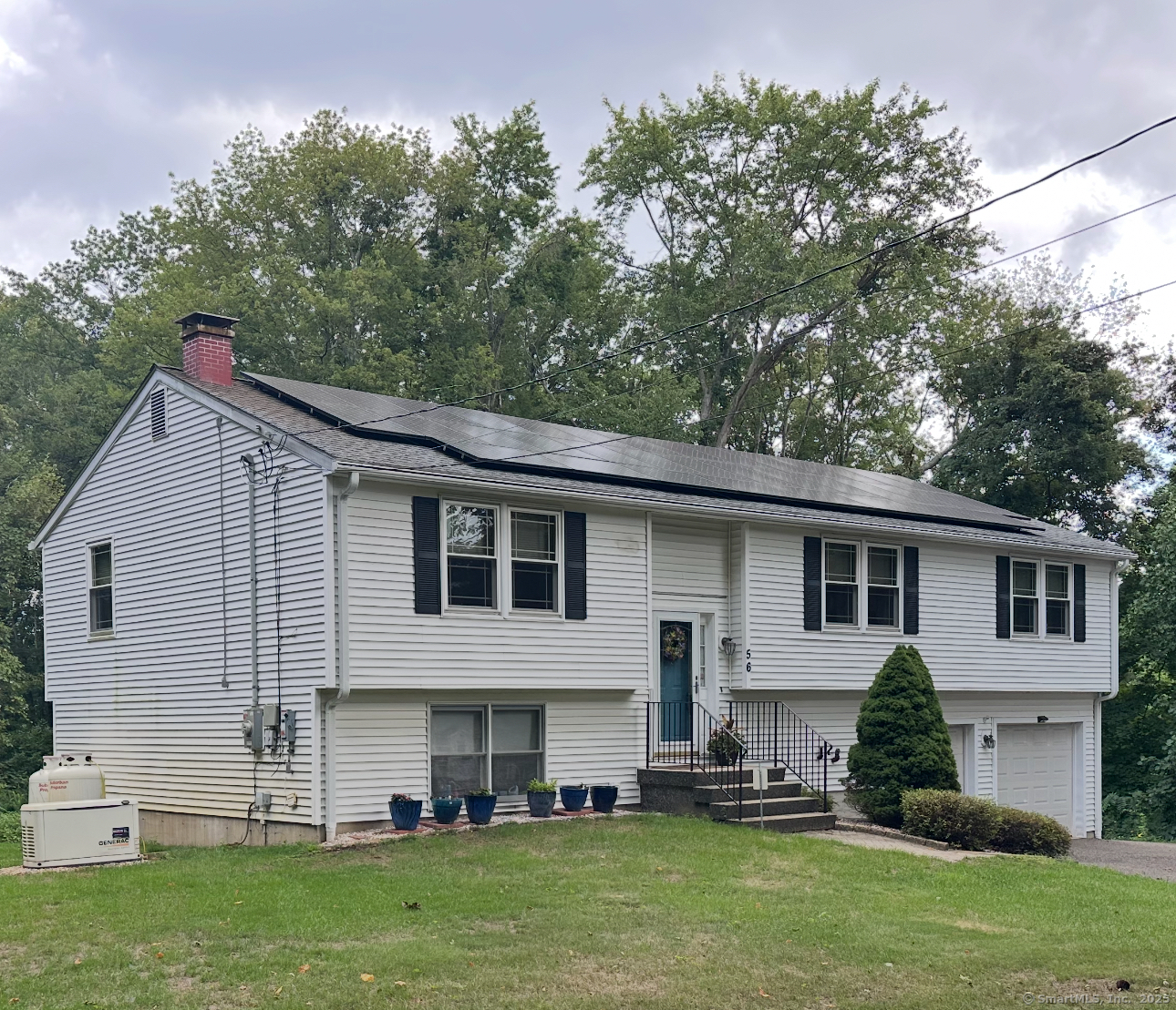 Welcome to this beautifully maintained raised ranch, perfectly situated on over an acre in the serene Great Hill neighborhood. Enjoy the ease of single-level living with the added flexibility of a walk-out lower level-ideal for gardening, patios, or future expansion-all in a peaceful, private setting. This home has been meticulously cared for, and it shows. Every improvement is backed by detailed records and receipts. Recent upgrades include a newer roof, vinyl siding, windows, hardwood floors, central air, solar panels, and a Generac whole-house generator for added peace of mind. The main level features a bright, kitchen and living room with soaring vaulted ceilings, flowing into a charming four-season sunroom that offer an 'additional 176 sq ft' of living space that opens to a spacious deck-perfect for relaxing or entertaining. Also on this level are a formal dining room, two bedrooms, and a full bathroom. The private primary bedroom with a full primary bath. The lower level, semi-finished walk-out offers tremendous potential-ideal for a future in-law suite, guest space, or home office setup. It includes a bedroom, office, full bath with laundry, and an oversized storage room. The lower level has an 'added 750 sq ft' of living space! This is a rare opportunity to own a home that offers comfort, flexibility, and quality-inside and out. A home, well and radon inspection were done on the home on July 10, 2025, available upon request.