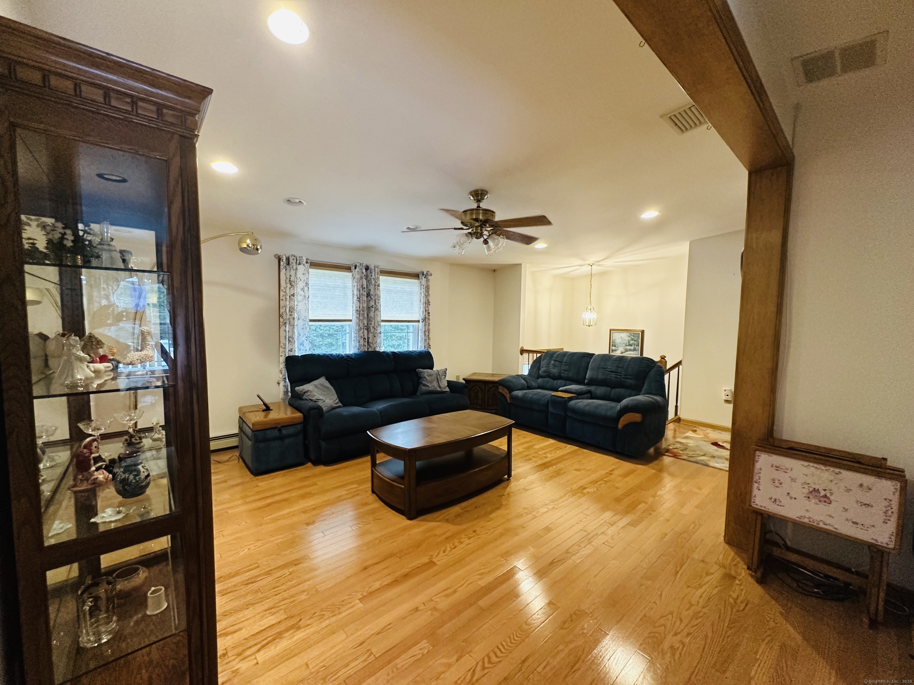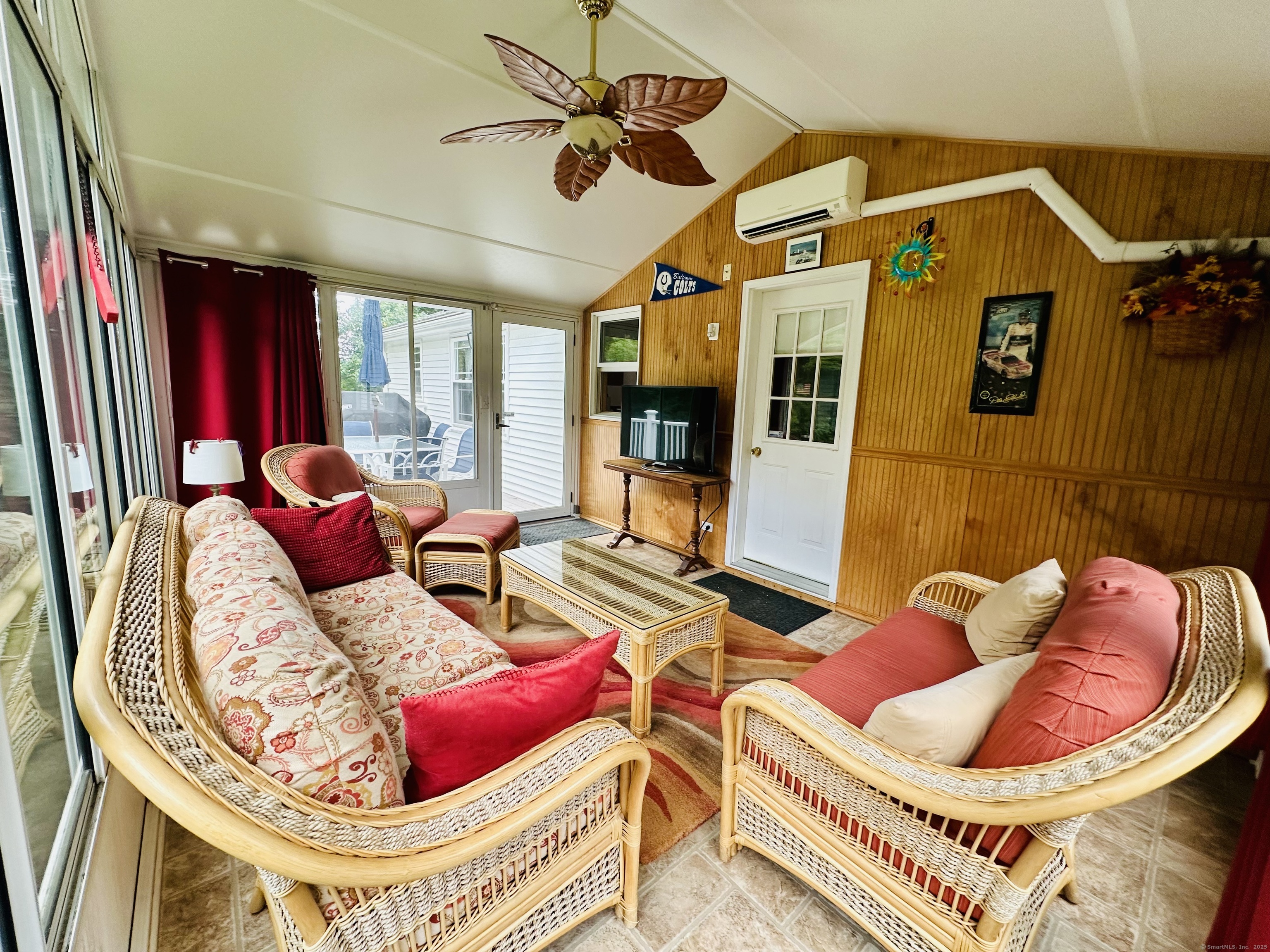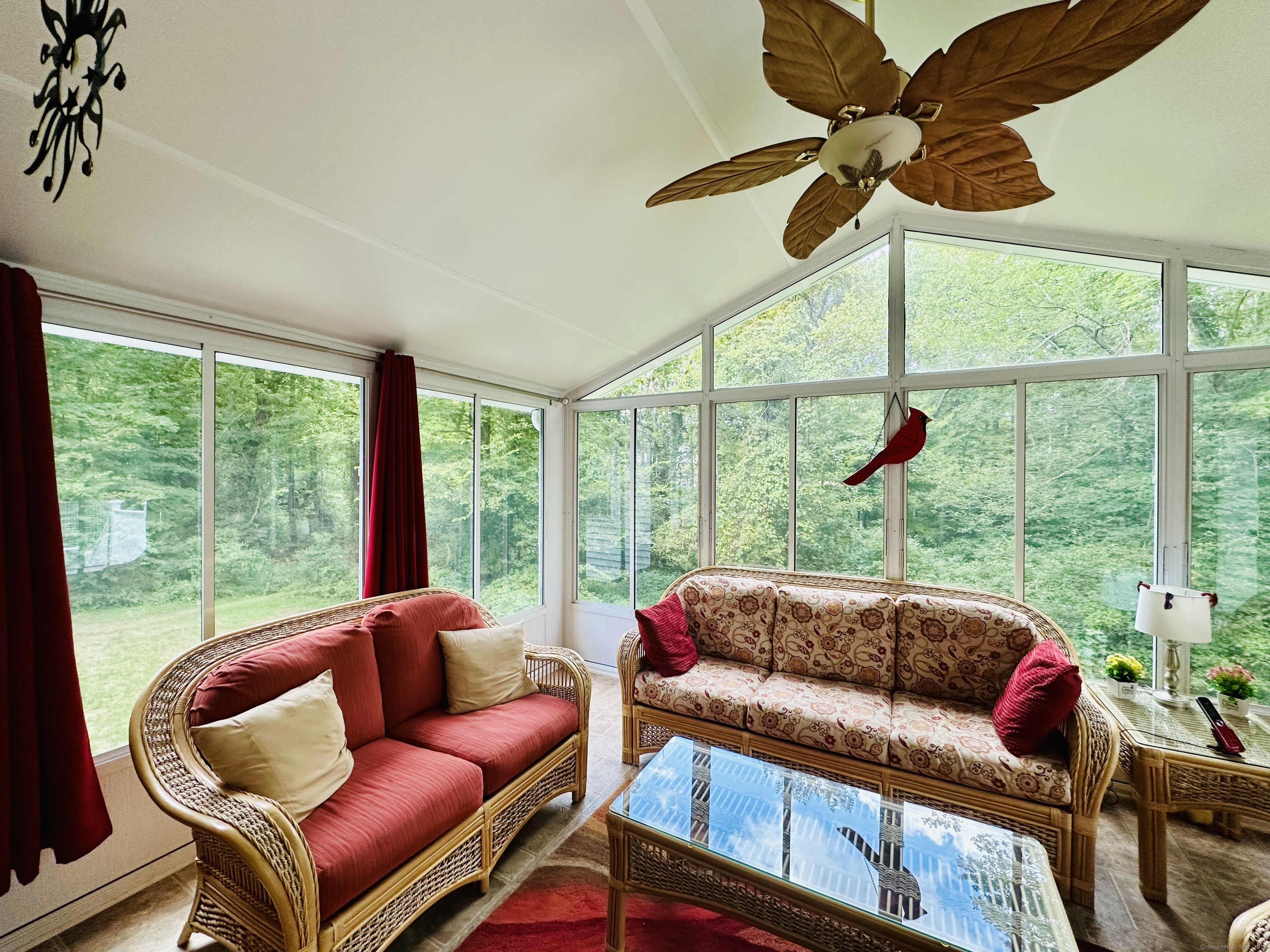 Welcome to this beautifully maintained raised ranch, perfectly situated on over an acre in the serene Great Hill neighborhood. Enjoy the ease of single-level living with the added flexibility of a walk-out lower level-ideal for gardening, patios, or future expansion-all in a peaceful, private setting. This home has been meticulously cared for, and it shows. Every improvement is backed by detailed records and receipts. Recent upgrades include a newer roof, vinyl siding, windows, hardwood floors, central air, solar panels, and a Generac whole-house generator for added peace of mind. The main level features a bright, kitchen and living room with soaring vaulted ceilings, flowing into a charming four-season sunroom that offer an 'additional 176 sq ft' of living space that opens to a spacious deck-perfect for relaxing or entertaining. Also on this level are a formal dining room, two bedrooms, and a full bathroom. The private primary bedroom with a full primary bath. The lower level, semi-finished walk-out offers tremendous potential-ideal for a future in-law suite, guest space, or home office setup. It includes a bedroom, office, full bath with laundry, and an oversized storage room. The lower level has an 'added 750 sq ft' of living space! This is a rare opportunity to own a home that offers comfort, flexibility, and quality-inside and out. A home, well and radon inspection were done on the home on July 10, 2025, available upon request.