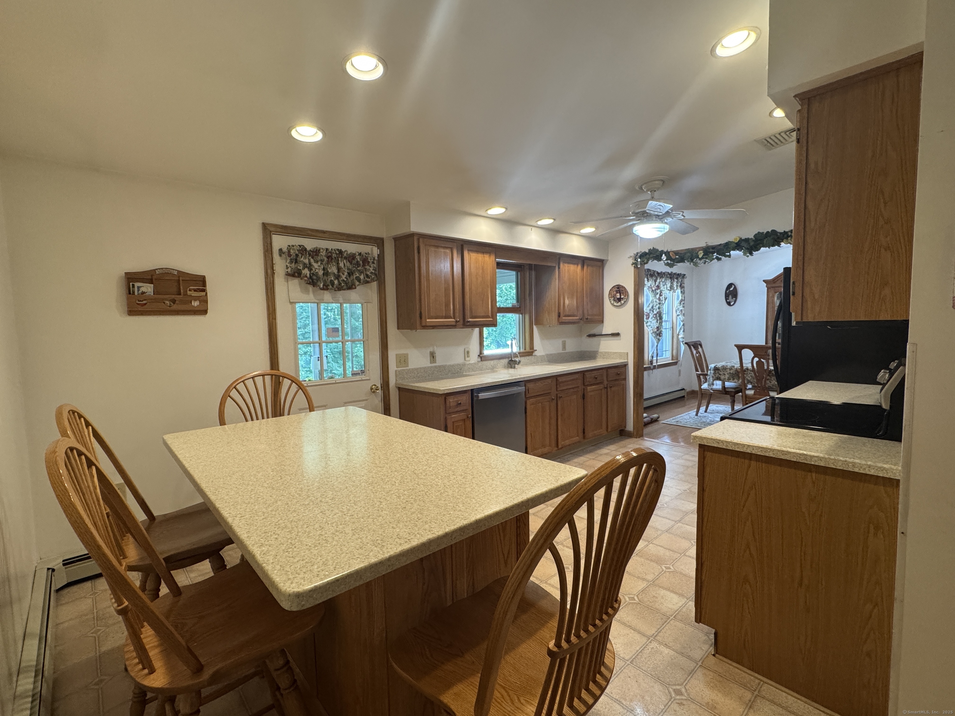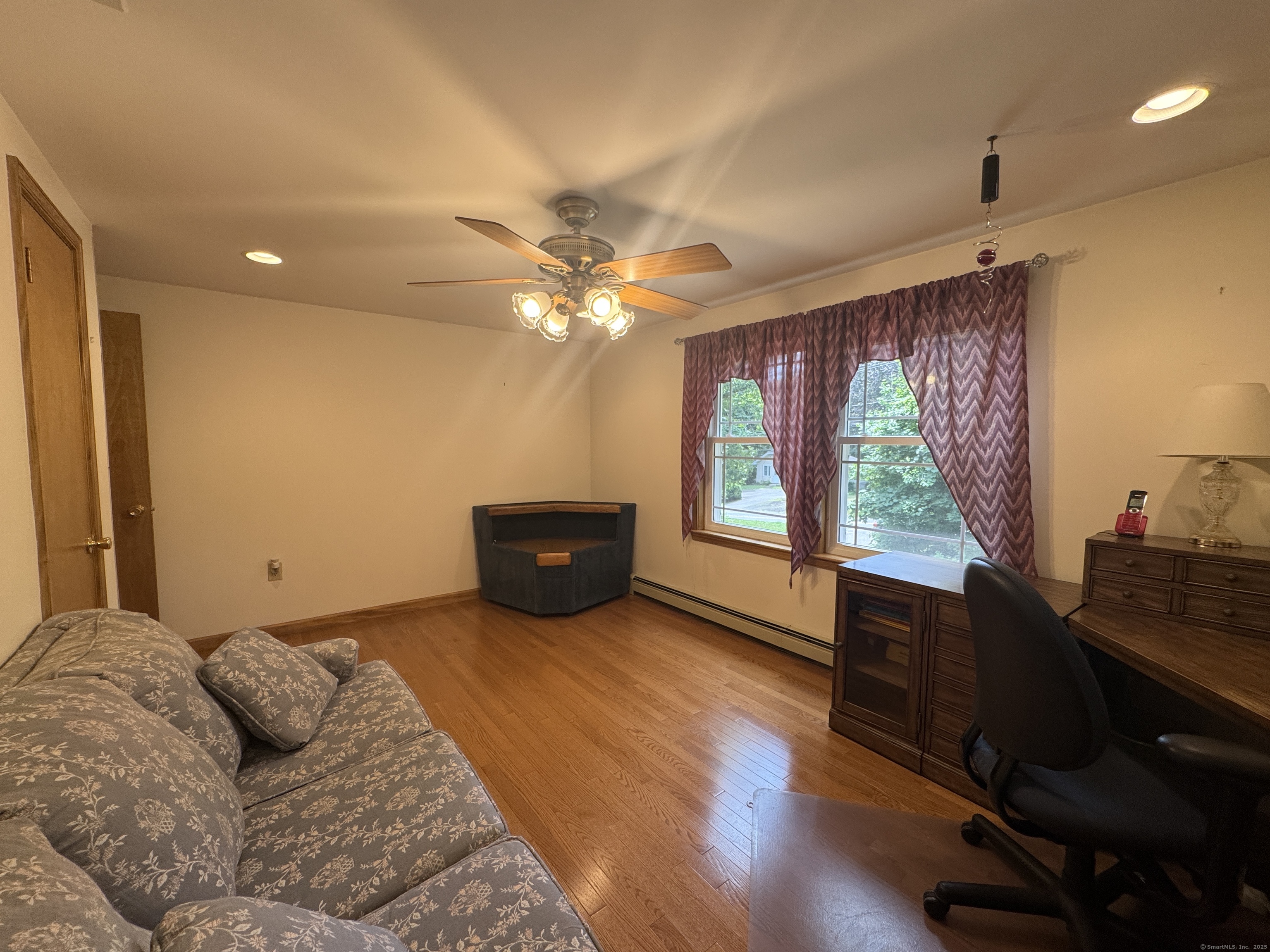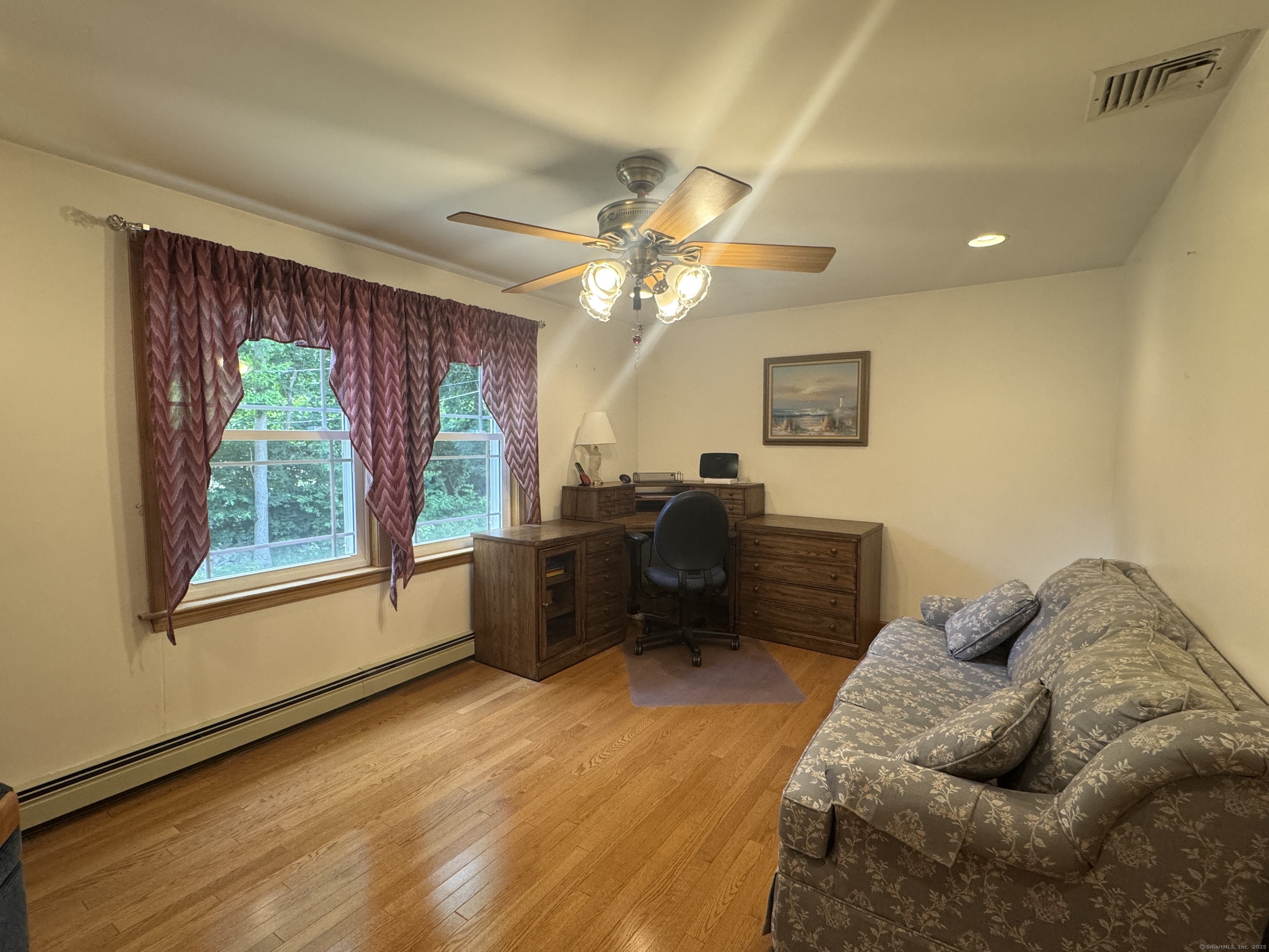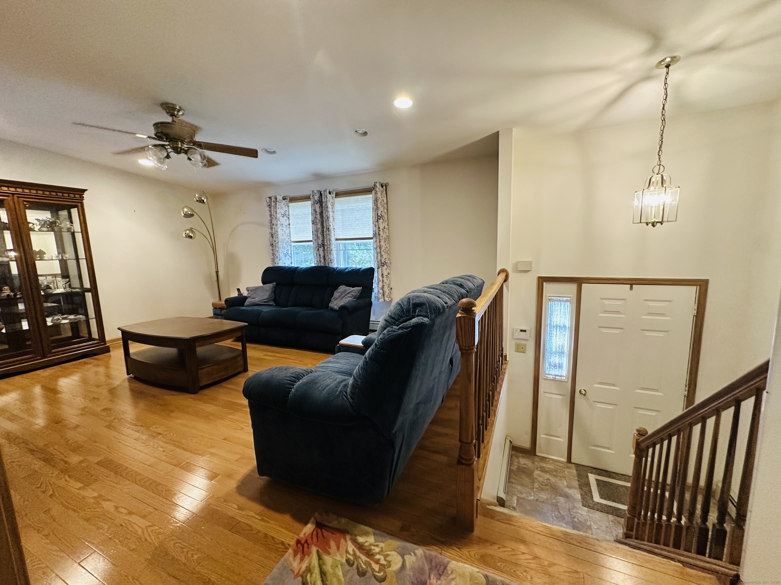 Welcome to this beautifully maintained raised ranch, perfectly situated on over an acre in the serene Great Hill neighborhood. Enjoy the ease of single-level living with the added flexibility of a walk-out lower level-ideal for gardening, patios, or future expansion-all in a peaceful, private setting. This home has been meticulously cared for, and it shows. Every improvement is backed by detailed records and receipts. Recent upgrades include a newer roof, vinyl siding, windows, hardwood floors, central air, solar panels, and a Generac whole-house generator for added peace of mind. The main level features a bright, kitchen and living room with soaring vaulted ceilings, flowing into a charming four-season sunroom that offer an 'additional 176 sq ft' of living space that opens to a spacious deck-perfect for relaxing or entertaining. Also on this level are a formal dining room, two bedrooms, and a full bathroom. The private primary bedroom with a full primary bath. The lower level, semi-finished walk-out offers tremendous potential-ideal for a future in-law suite, guest space, or home office setup. It includes a bedroom, office, full bath with laundry, and an oversized storage room. The lower level has an 'added 750 sq ft' of living space! This is a rare opportunity to own a home that offers comfort, flexibility, and quality-inside and out. A home, well and radon inspection were done on the home on July 10, 2025, available upon request.