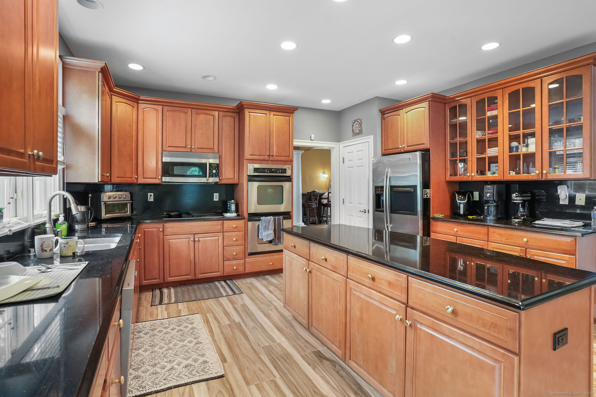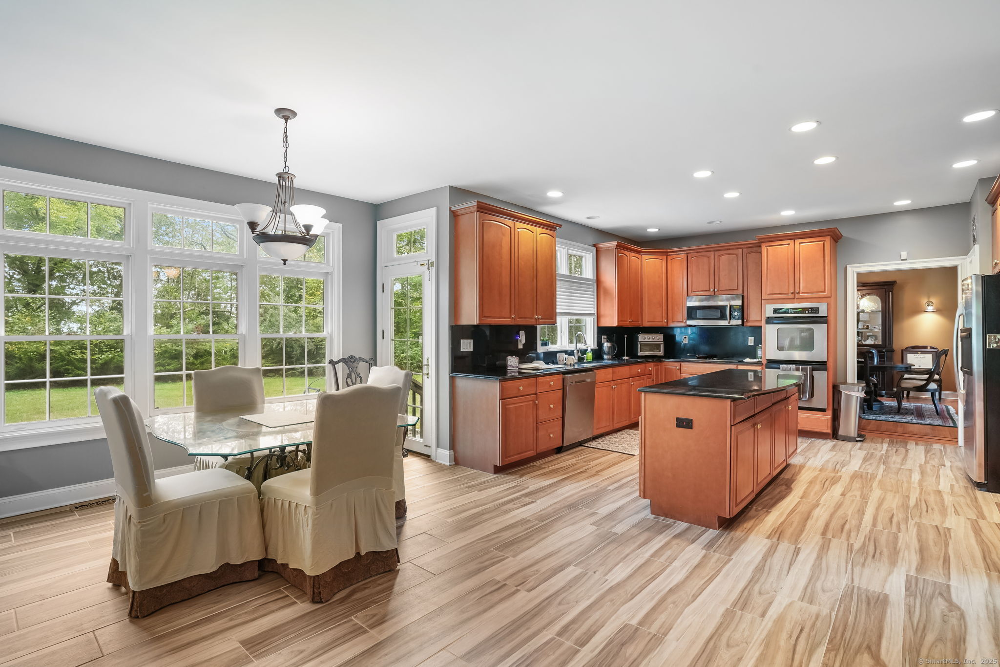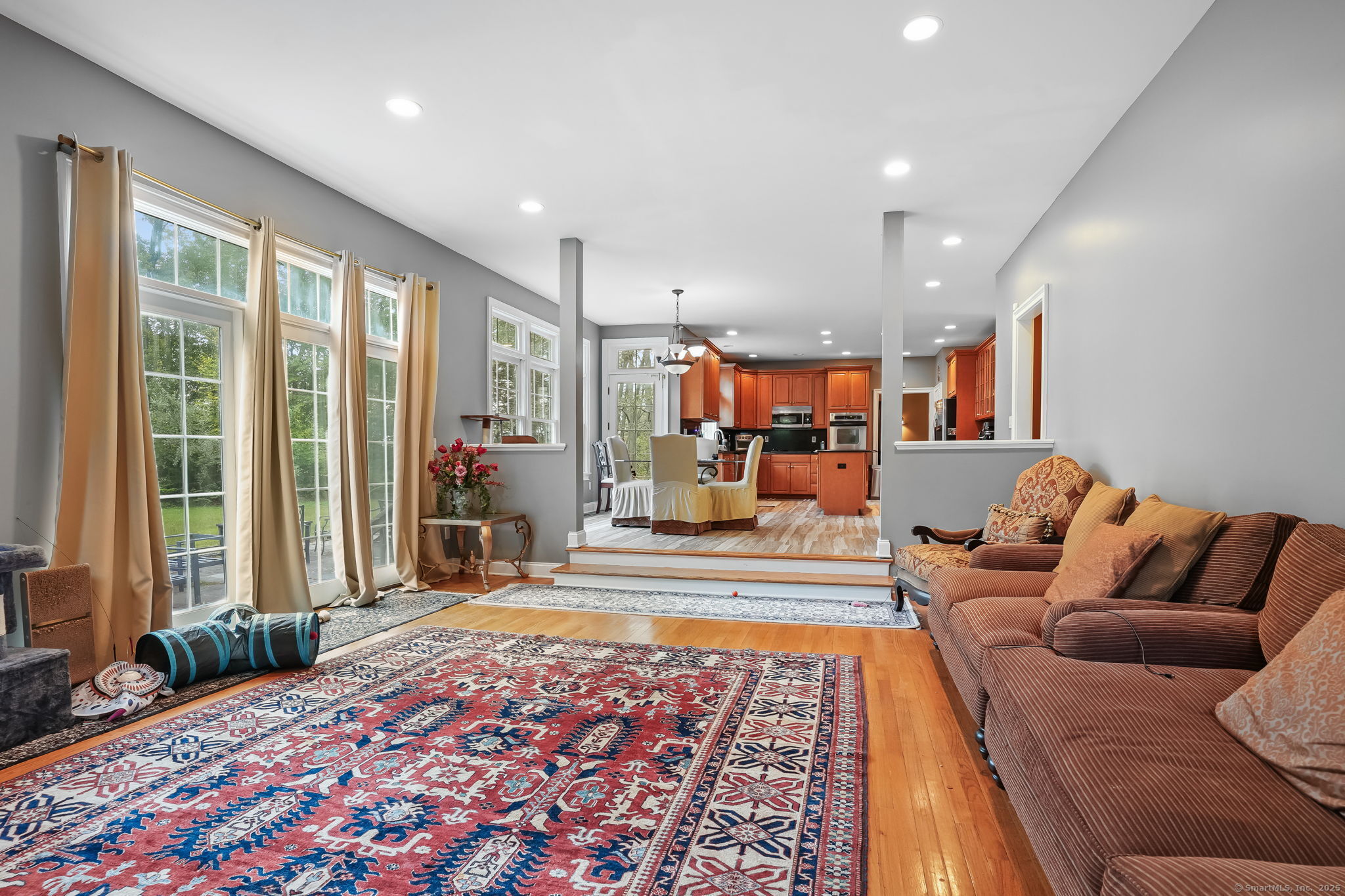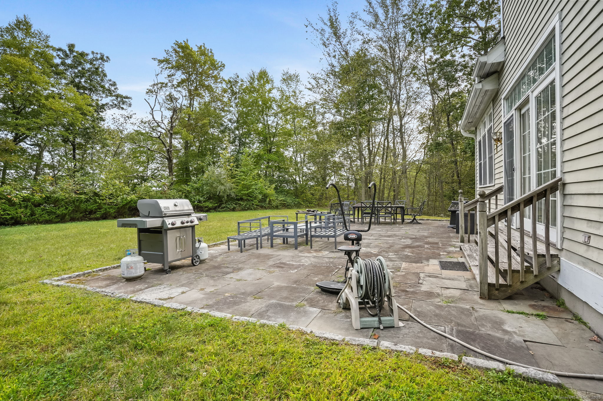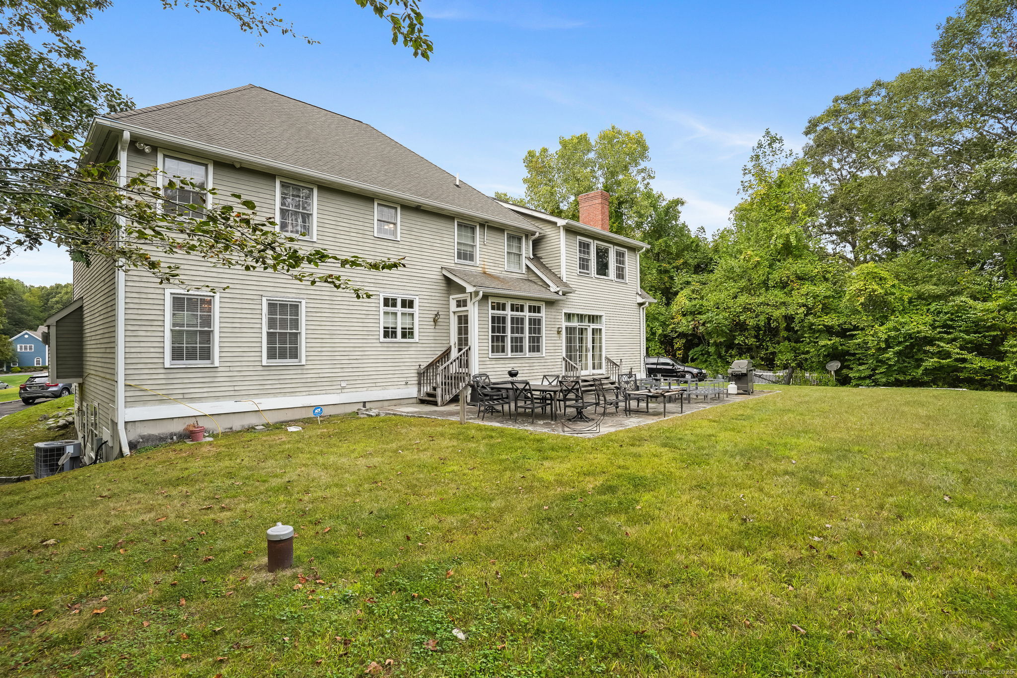 Welcome to this stately Easton Colonial, privately set on 5.74 acres at the end of a quiet cul-de-sac. A two-story foyer opens to nearly 4,000 sq ft of sunlit living space, including a chef's kitchen with center island, formal dining room, and a window-lined great room with fireplace. Upstairs, five spacious bedrooms and four full baths provide ample room, while the finished lower level adds an additional 1,600+ sq ft with a complete in-law/guest suite featuring a kitchen, bedroom, bath, and private entry. Outdoor living shines with a stone patio, expansive lawns, and wooded surroundings that offer both privacy and a natural backdrop. With three fireplaces, a flexible floor plan, and convenient proximity to major routes, this home blends timeless design with modern comfort, an exceptional opportunity in Easton.