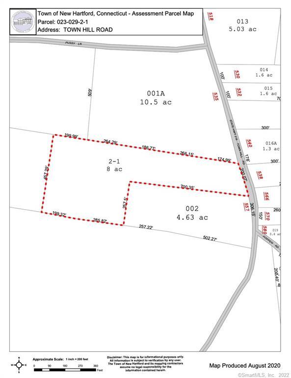 Situated atop the distinguished Historic Town Hill Road, this exceptional 8-acre parcel represents one of New Hartford's premier homesites. With its level and easily accessible terrain, this property is an ideal canvas upon which to create your dream home. Directly adjoining the Jerram Winery, New Hartford's renowned vineyard, the lot offers both prestige and serene beauty. Conveniently positioned only 1.4 miles from Downtown New Hartford, the property also offers swift access to the abundant shopping opportunities of the Farmington Valley area. A comprehensive site plan & boundary survey has been completed, making this lot ready for immediate development (see attachments). New Hartford is famed for its outstanding recreational offerings. The pristine West Hill Pond, known as the "Jewel of the Northwest Corner," offers crystal-clear spring-fed waters ideal for swimming, paddle boarding, kayaking, sailing, and fishing. Several nearby state forests provide ample trails for hiking, mountain biking, and bird watching. The renowned Farmington River, designated as a Wild and Scenic waterway, delivers the state's best trout fishing, along with exhilarating kayaking and tubing opportunities. Scenic roads along the river offer unmatched road and gravel cycling adventures extending toward the breathtaking Berkshires. Winter months transform the landscape, with Ski Sundown serving as a beloved family-friendly skiing destination, complemented by