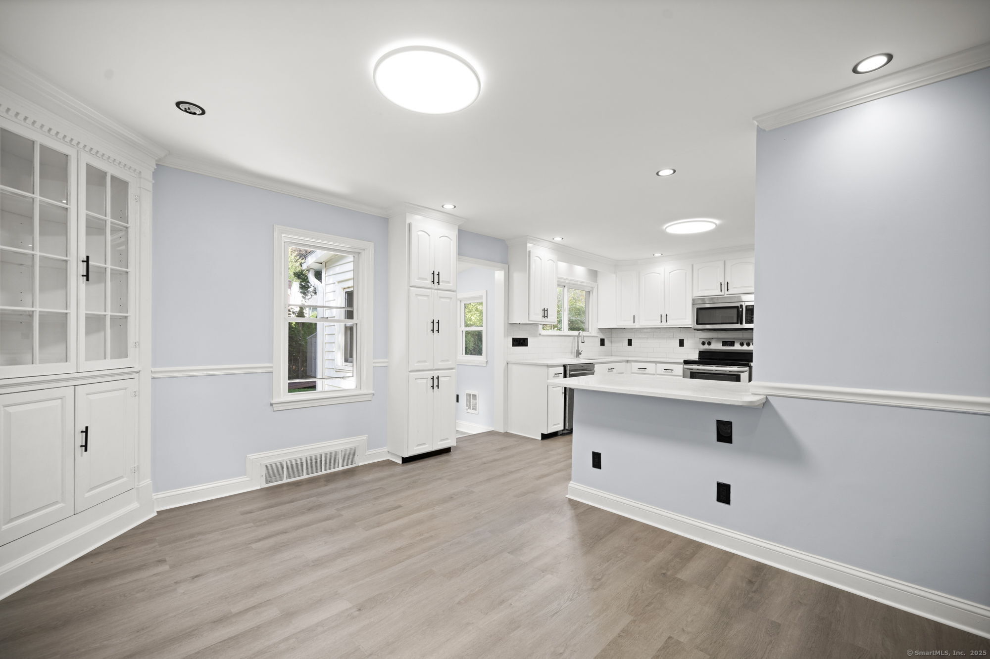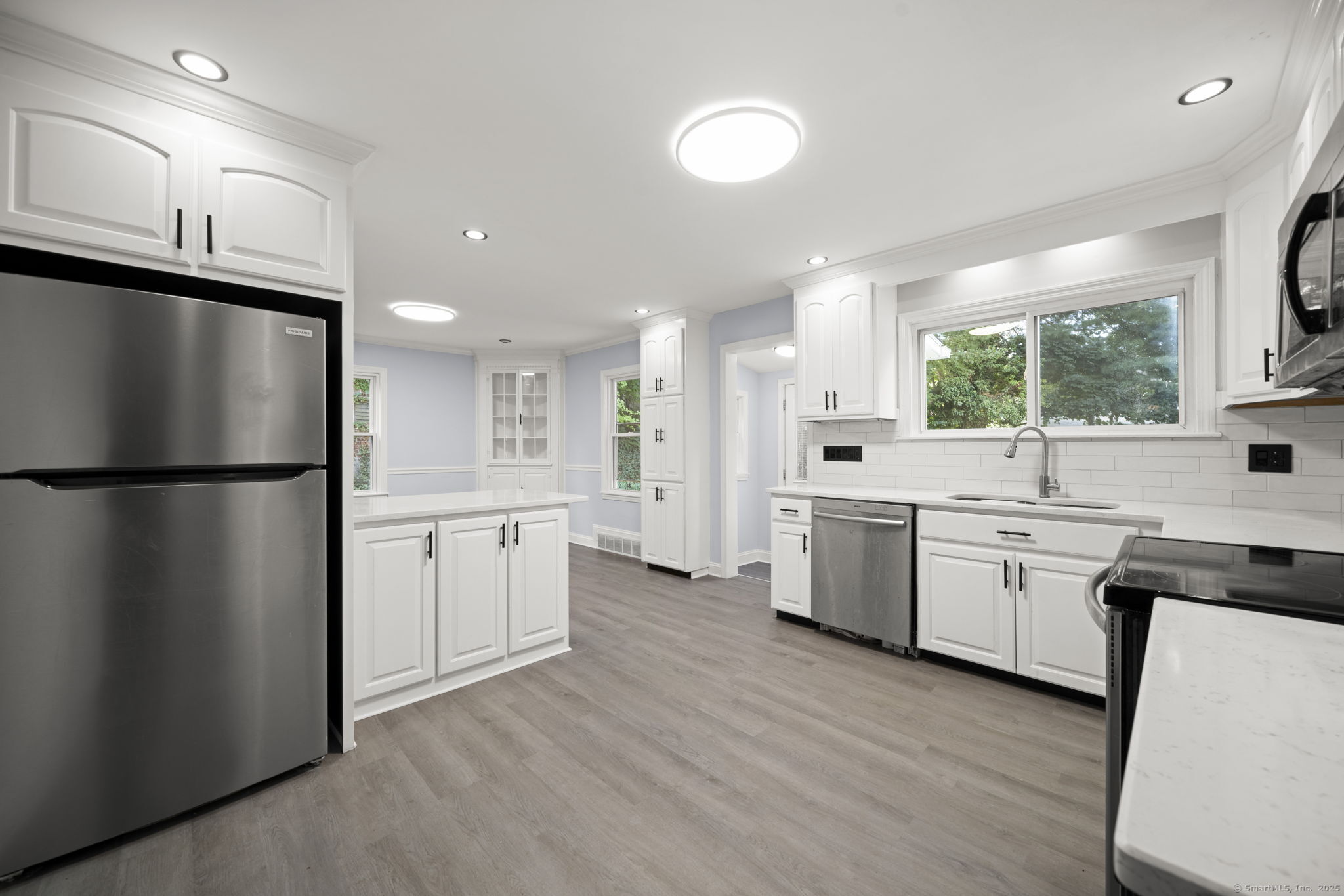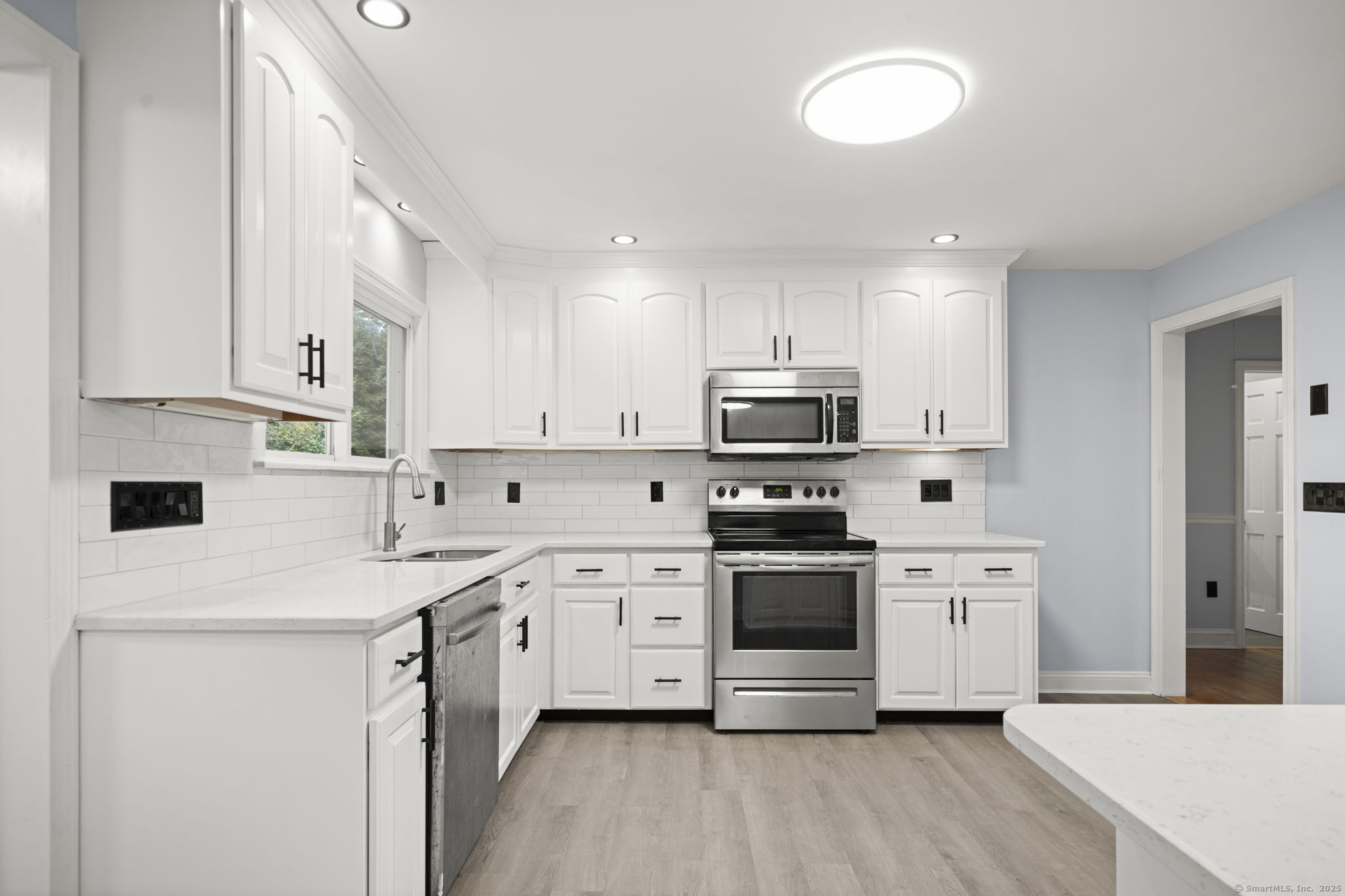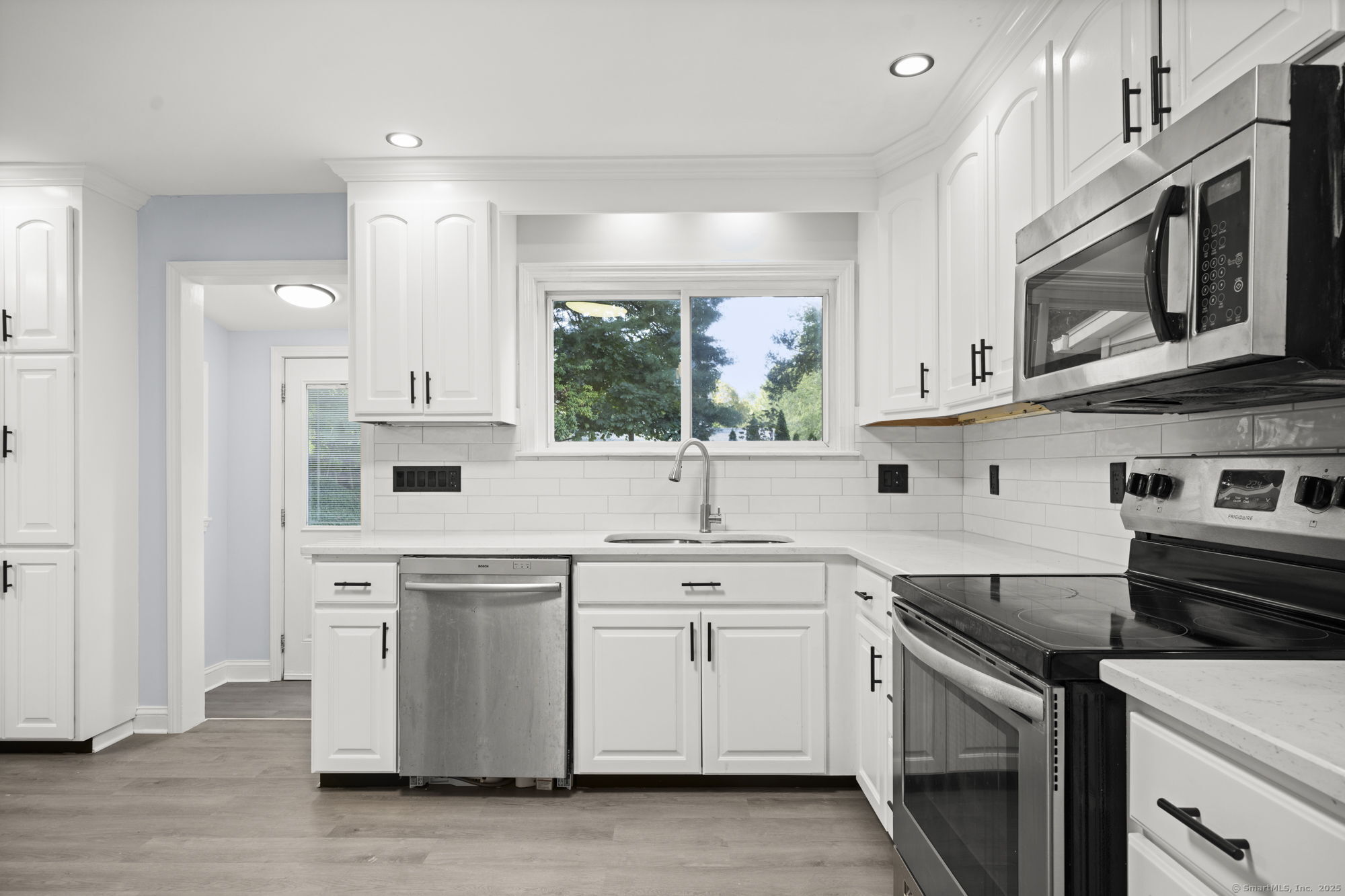 Welcome to 34 Oneida Street! This beautifully updated 4-bedroom, 2-bath Cape sits on a spacious double lot and is truly move-in ready. Featuring a renovated kitchen with quartz countertops, stainless steel appliances, and a breakfast bar, the main level also offers a bright and spacious dinning room with a built in cabinet for extra storage, a living room with lots of natural light a gas fireplace and custom built-ins. Enjoy hardwood flooring throughout, updated baths, and energy-efficient windows. The partially finished basement adds extra space and houses laundry. Step outside to your private backyard that you can turn into your dream oasis, garden shed, and fully fenced yard. An attached garage and wide driveway provide ample parking. Located close to Stanley Quarter Park, CCSU, schools, shopping, and commuter routes. Don't miss this charming and updated home in a convenient New Britain neighborhood!
