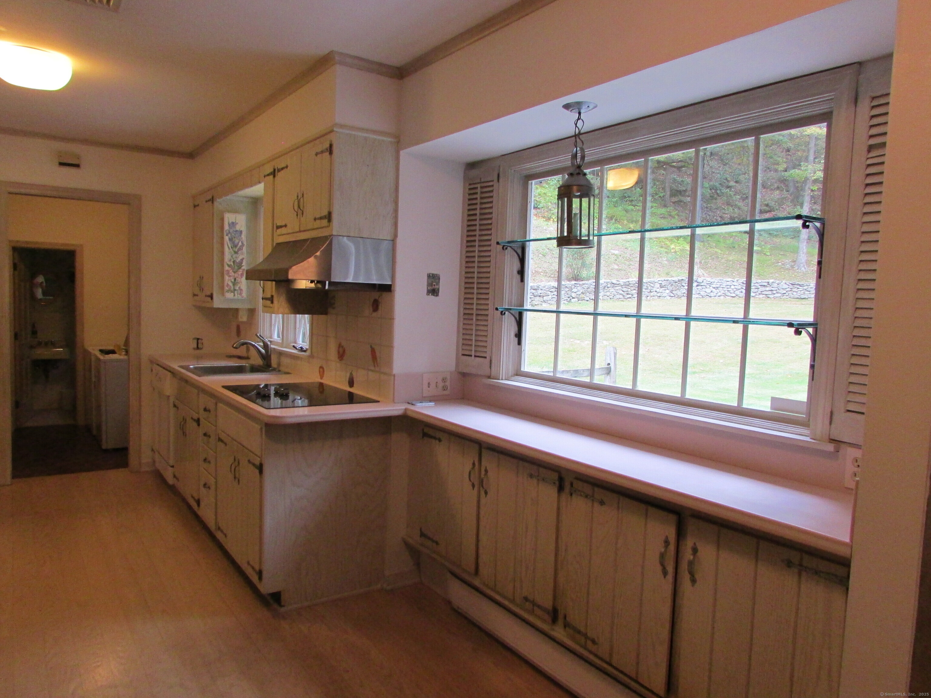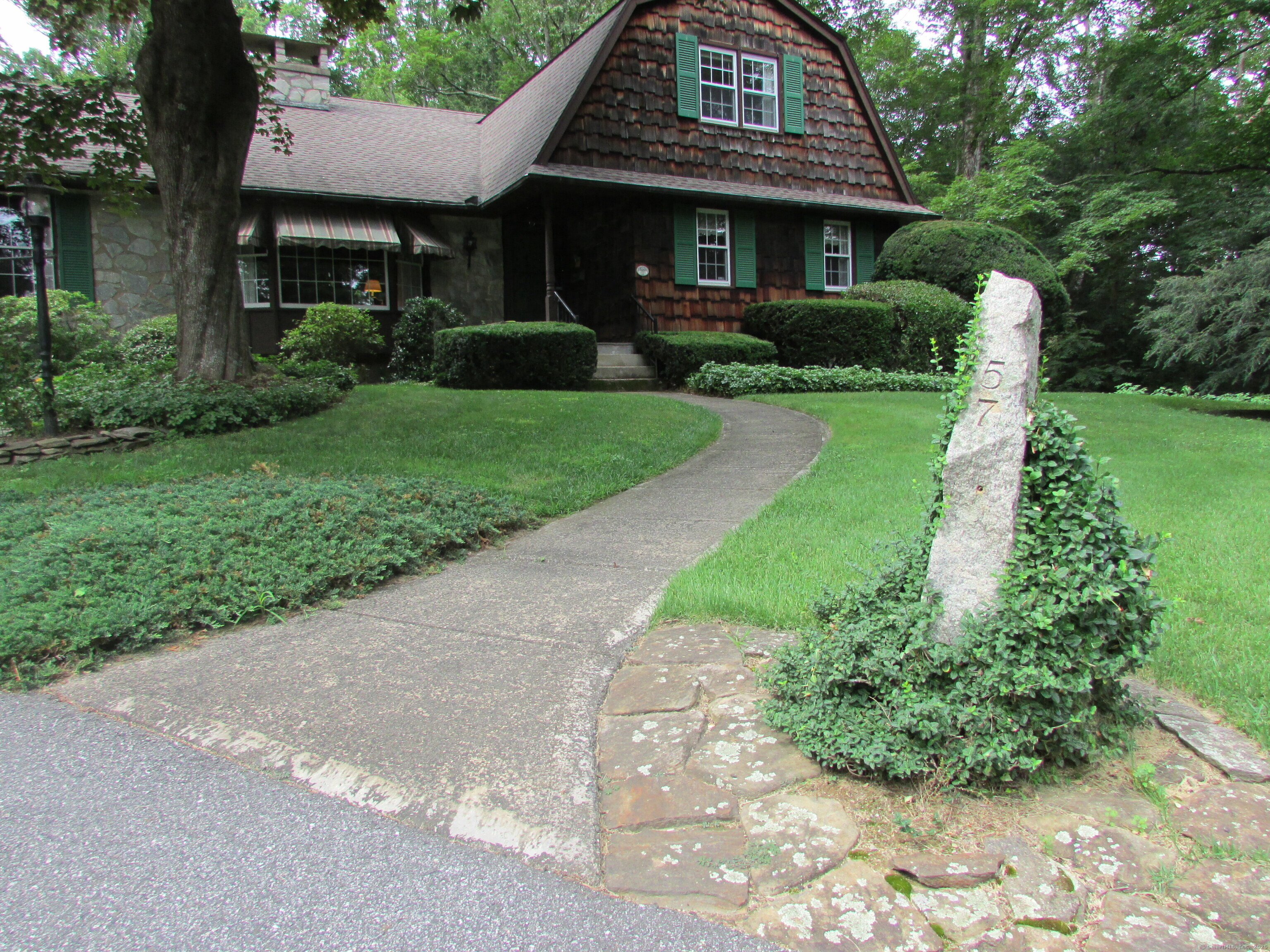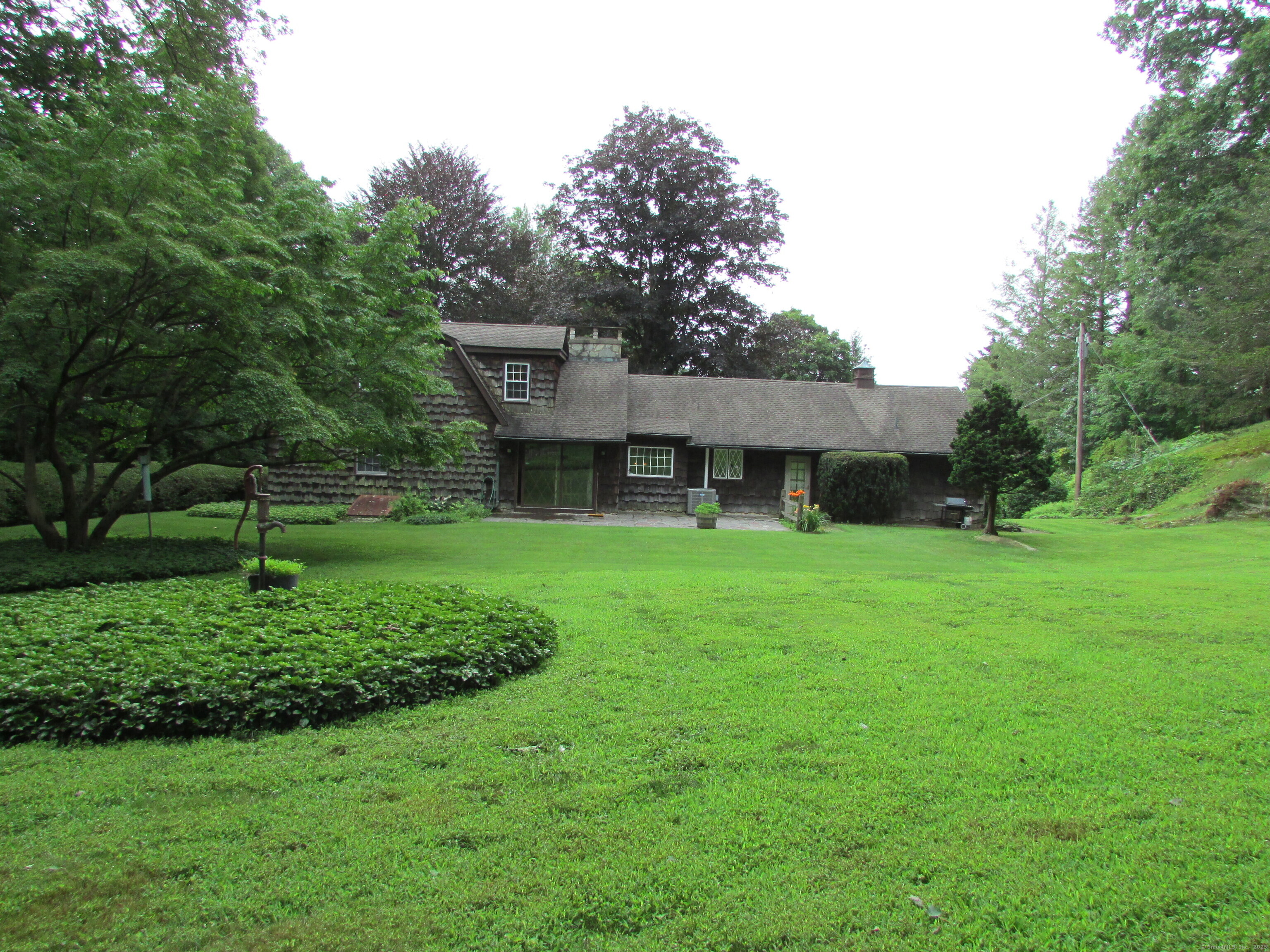 Beautiful & Private 1.7 Acre setting for this Spacious 4 Bedrm. Colonial, 1st floor Large Bedroom Suite with full bath. Also on Main Level: 12x14, Den/office or work-out room. Kitchen with Corian countertops, blt.In Ovens, fireplace & breakfast bar over-looking gorgeous backyard with Slate Patio, Stone Walls & private view. Adjacent to Kitchen is: 15x13 Family Room or informal Dining with custom cabinetry, Shelving & bar sink. 1st Level Laundry room with 1/2 bath. Central Vac & Central Air, attached 2 car garage. Gorgeous Stonework in front exterior & chimneys! This Home has 2.5 baths. Wood floors throughout!