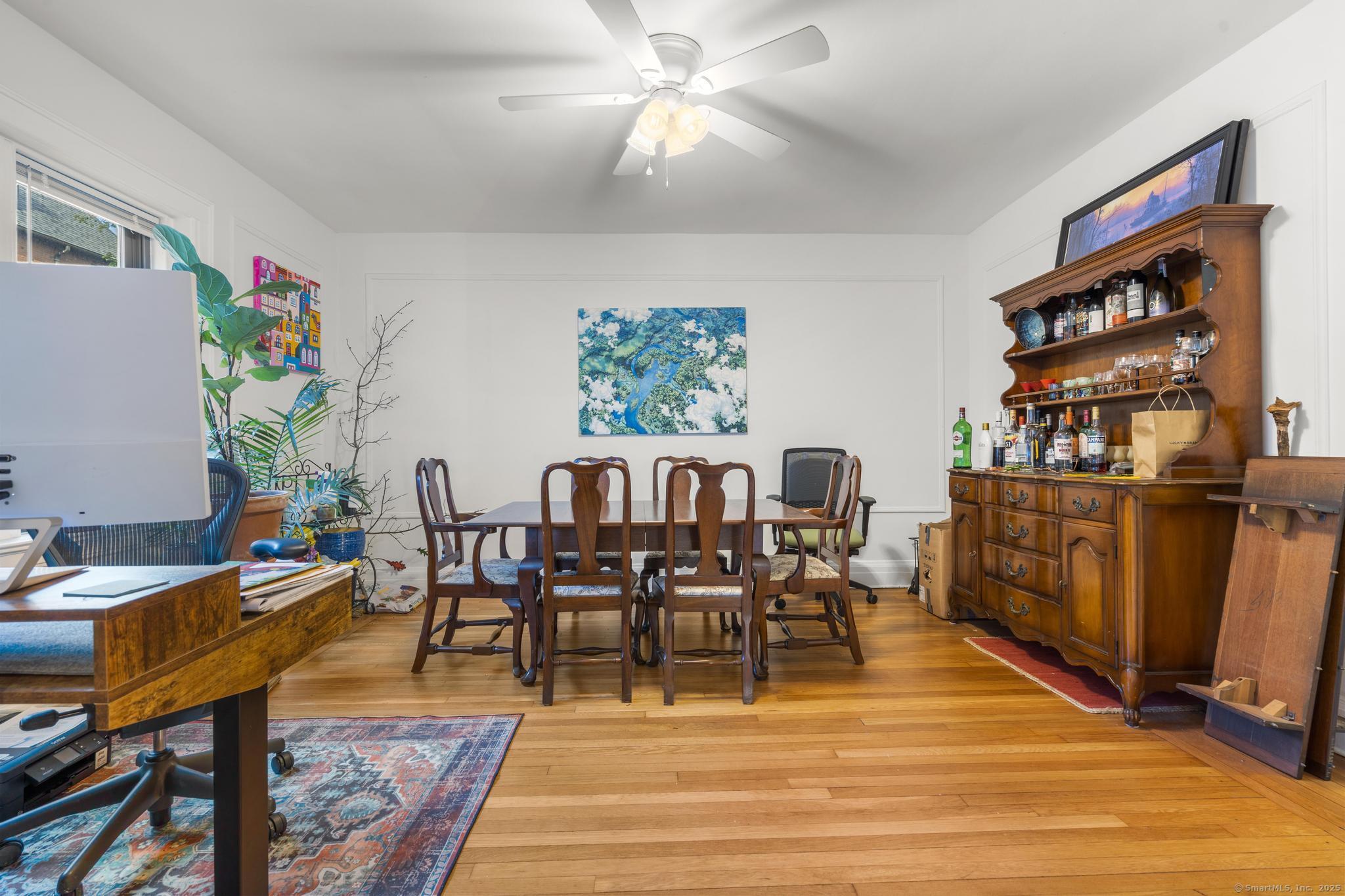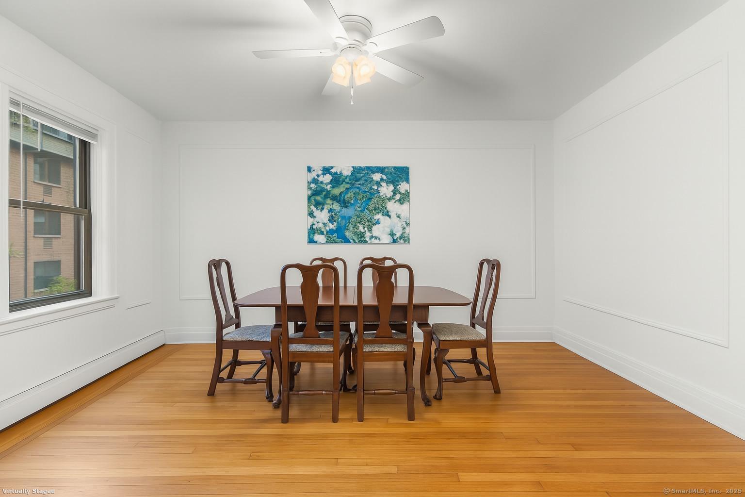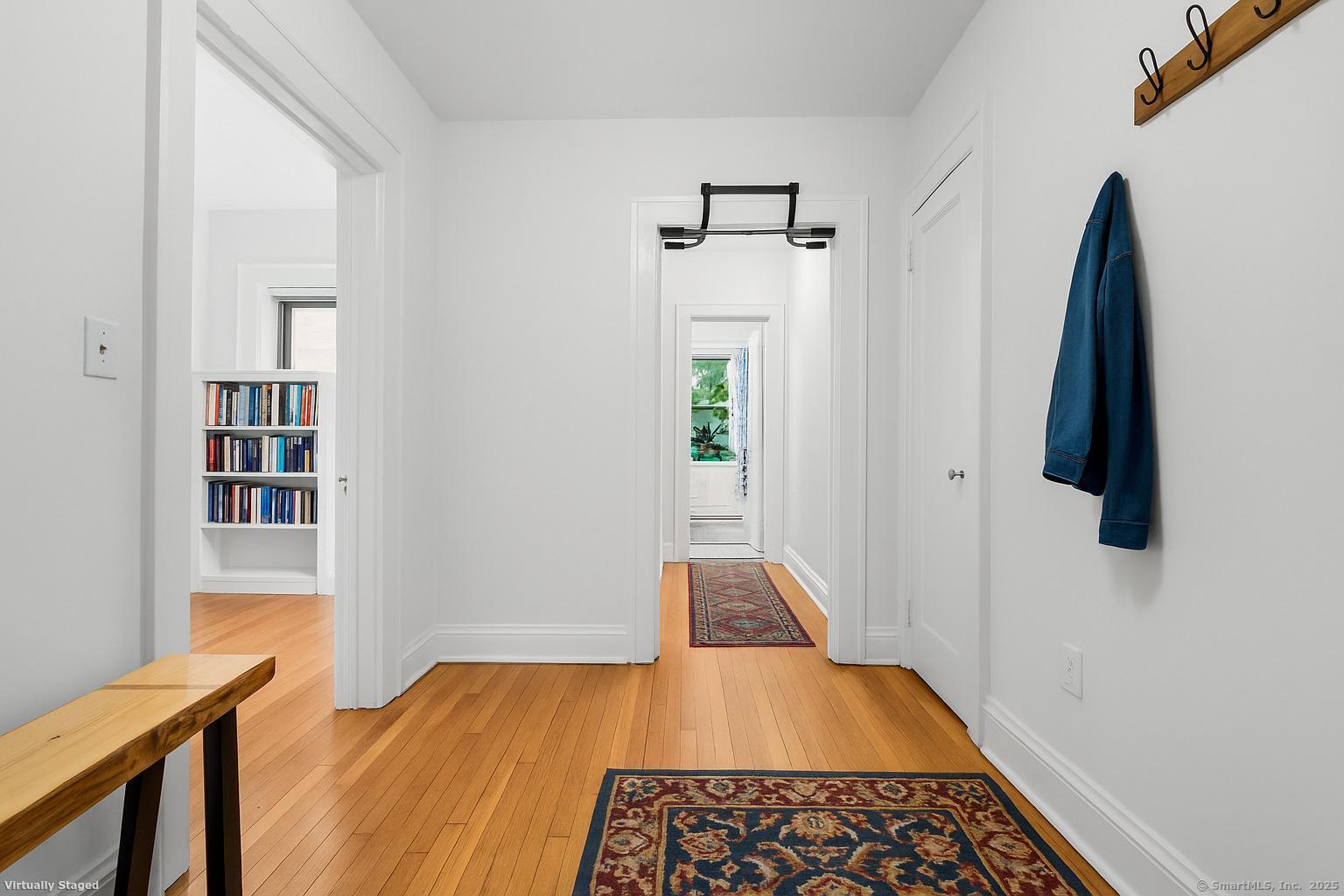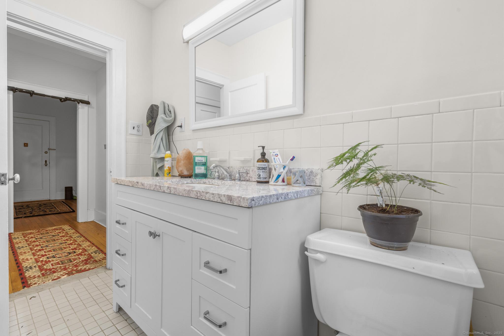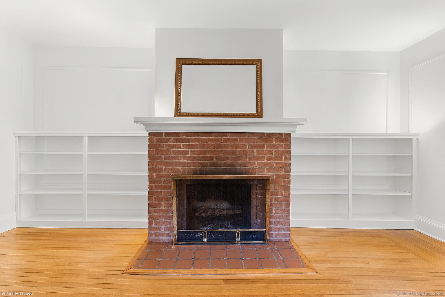 Seize this unique chance to own a main floor condo in the coveted Livingston Hill Complex, perfectly situated in East Rock's vibrant core, within the top-rated Worthington Hooker School district. Spanning 1125 sq ft, this freshly repainted home features soaring ceilings and rich hardwood floors that flow throughout. The expansive living area, bathed in natural light, showcases custom built-in shelving and a cozy brick fireplace, creating an inviting ambiance overlooking the courtyard. The elegant dining space is perfect for hosting gatherings. The renovated kitchen dazzles with sleek appliances, generous storage, and a chic tiled backsplash. Two well-appointed bedrooms with ample closets share a beautifully fully tiled bathroom with new vanity. Enjoy the convenience of private basement storage and shared laundry facilities. Step outside to the complex's picturesque courtyard for a tranquil retreat. Ideally located, you're moments from artisanal shops, East Rock Park, Yale shuttle stops, public transit, and a short stroll to downtown New Haven, Yale, and nearby hospitals.