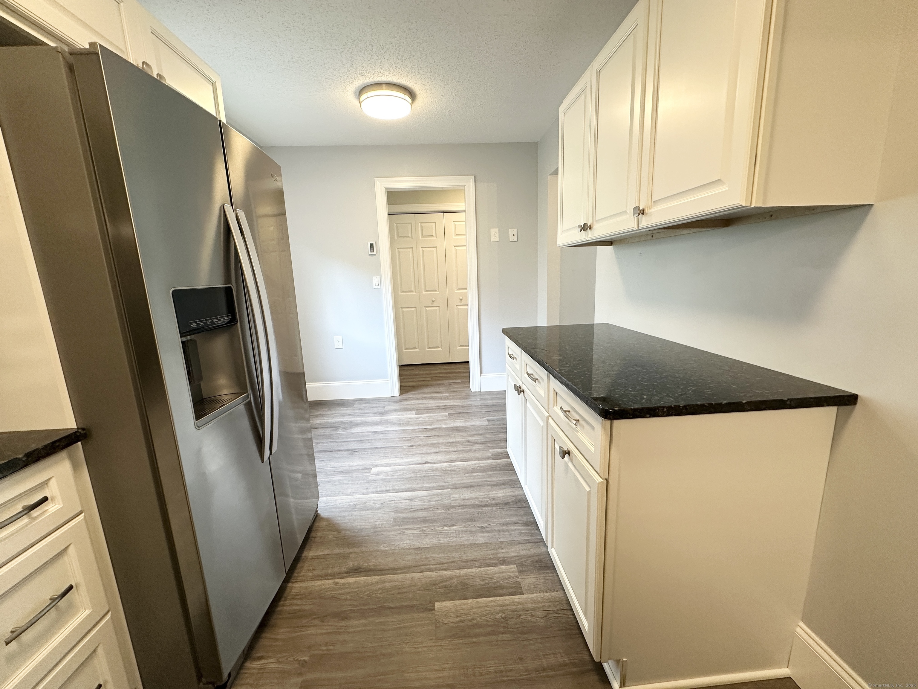 A charming Winthrop end unit features 2 beds & 2 full baths. Brand new Mohawk vinyl plank flooring throughout. Located in the 55+ active Heritage Village community. This Winthrop can be your next home if you're ready to downsize or a looking for a second home. All baseboards and doors have been updated. The kitchen features white cabinets, attractive granite counter tops and s/s appliances. The spacious living room/dining room combo features a dining area and living room with a wood burning fireplace. A patio slider off the living room opens up to a blue slate private patio. A Primary bedroom is spacious and has plenty of closet space. A primary bath has been updated with a tile floor and a tub/shower. Second bedroom, office or den has LVP flooring and closet space. The second full bath has been updated with a tile floor and walk in shower. Heritage Village is pet friendly. HOA fee includes Spectrum cable and internet. Many clubs to join, 4 pools, pickleball, tennis and so much more to enjoy. Heritage Village is located in Southbury in western CT. Southbury has plenty of shopping, restaurants, a movie theater, a dog park and easy close access to I84. Come see this move in ready unit and explore Heritage Village.