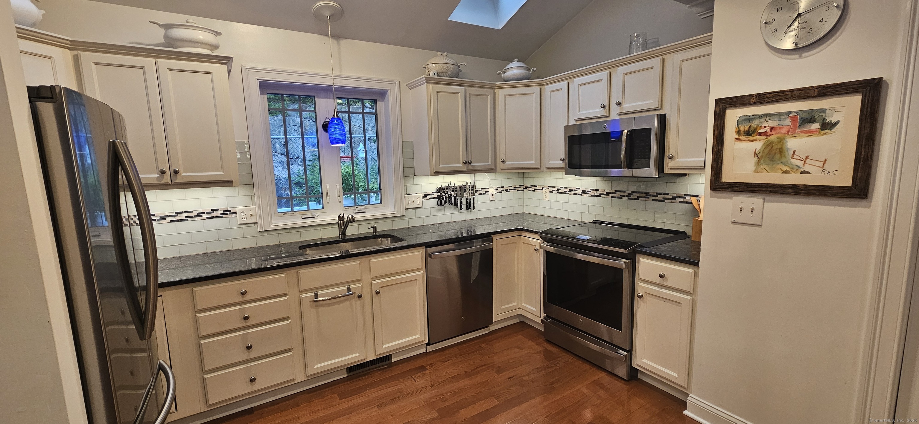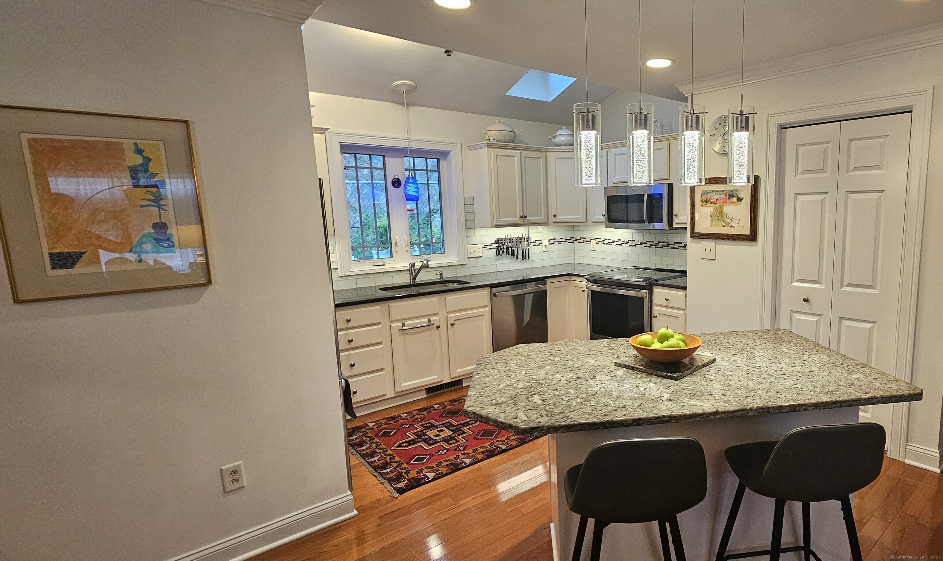 Stylish and spacious END UNIT townhome with 2-car garage is bathed in natural light and nestled in one of Stetson Place's preferred locations. This home offers the perfect blend of comfort, versatility, and charm. The open floor plan on the main level features windows on three sides, a cozy fireplace, and sliders to a large deck - ideal for summer evenings or morning coffee. Upgrades include: Crown molding, and hardwood floors throughout. The kitchen is a great gathering spot, complete with ample cabinetry, skylights and a large center island with a breakfast bar. Upstairs, the private primary suite is accompanied by a 2nd bedroom with a custom walk-in closet and laundry room. The lower level includes a practical mudroom entry with a cedar closet tucked under the stairs, ideal for storing seasonal gear, shoes, or everyday essentials. Stetson Place amenities include a clubhouse, fitness center, and outdoor pool. Grounds are professionally maintained right up to your doorstep (no need to shovel snow), and the monthly HOA conveniently includes water, sewer, and insurance. Sought-after location in Western Danbury, enables quick access to I-84 for easy commutes to Lower Fairfield & Westchester Counties, and NYC trains AND minutes from local shops, restaurants, and everyday conveniences. With designer updates, classic architectural touches, and a bright, welcoming vibe, this is easy living at its best. Move-in ready rare find!