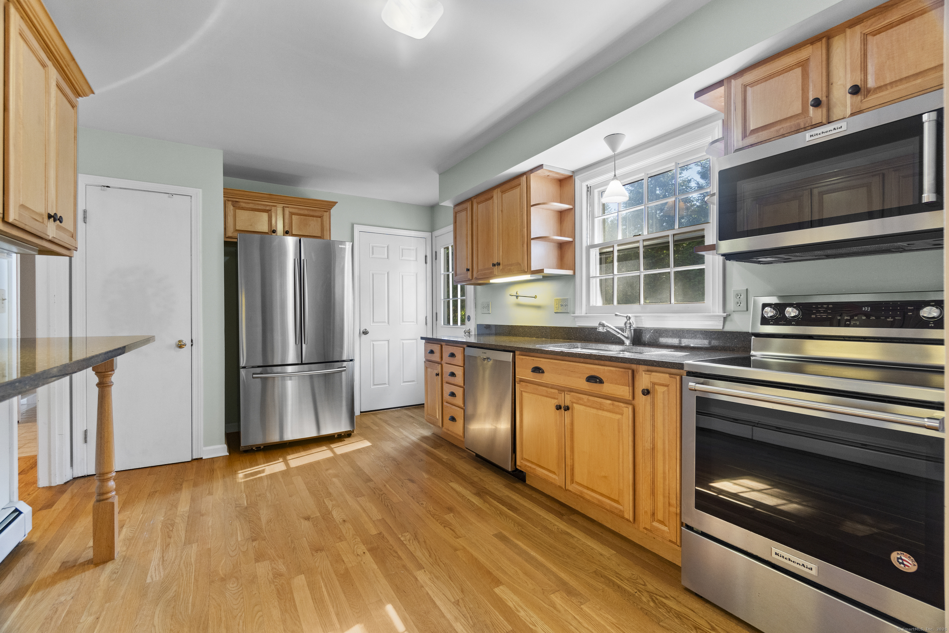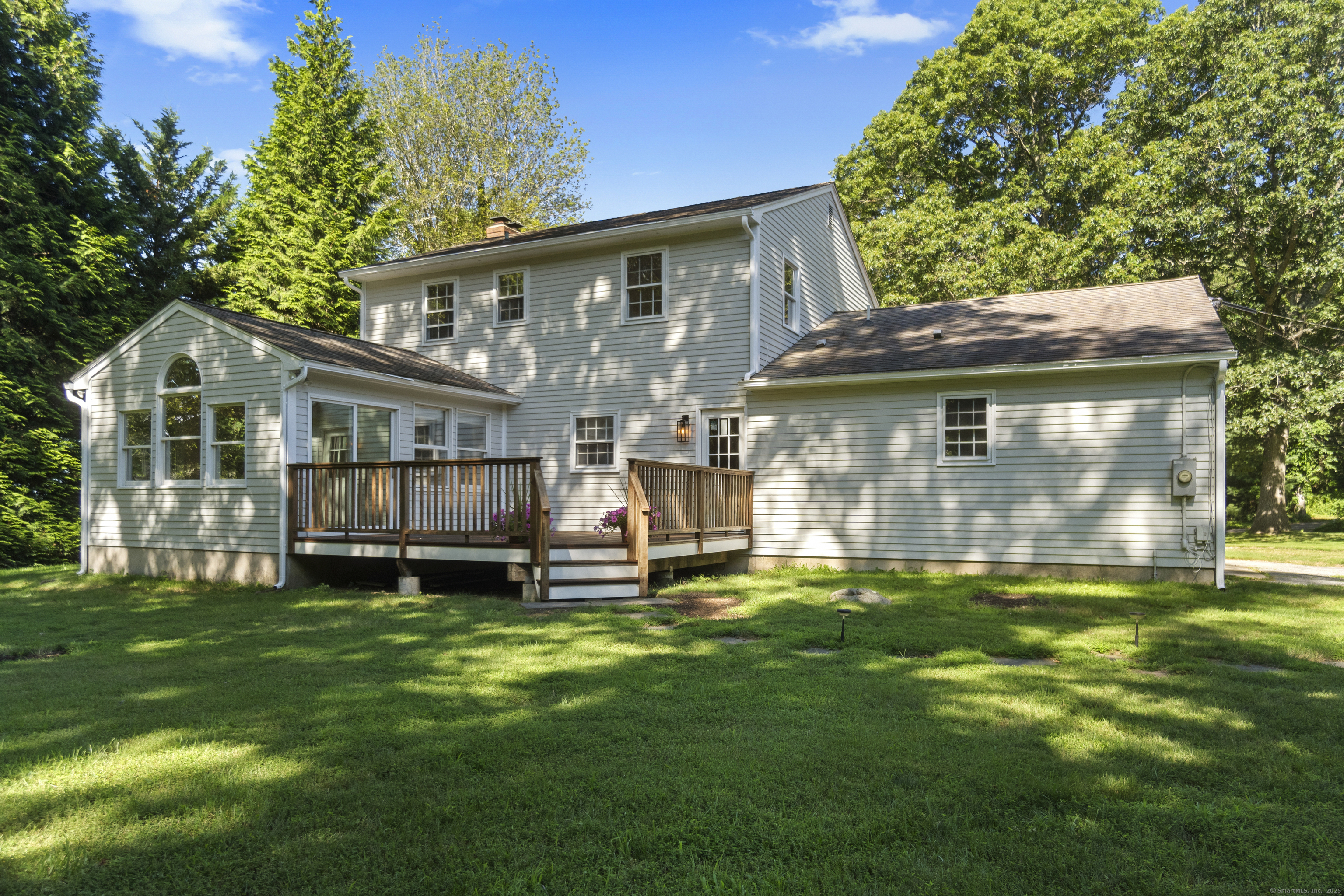 Welcome to this charming 4-bedroom, 2 full bath colonial nestled along scenic Mile Creek Road-just minutes from town beaches and a short stroll to the elementary school. Recently refreshed, the exterior has been newly painted, and the inviting front porch and spacious back deck-crafted from luxurious Brazilian Ipe hardwood-have been re-stained to highlight their rich natural beauty. Inside, find hardwood floors throughout a spacious living room with a cozy fireplace, kitchen with updated stainless steel appliances, and a bright sunroom with sliders that open to the back deck and well-maintained yard-ideal for outdoor games, gatherings, and summer entertaining. The main level also includes a versatile bedroom ideal for guests or a home office, plus a full hallway bathroom. Upstairs, the large updated primary bedroom offers ample closet space, along with two additional bedrooms and a second full bath. For added convenience, the home features two attics and a spacious basement, providing plenty of room for storage. Seller just replaced boiler in September! Enjoy the best of coastal living and small-town charm, all with an easy commute to both New York and Boston. Schedule your showing today!