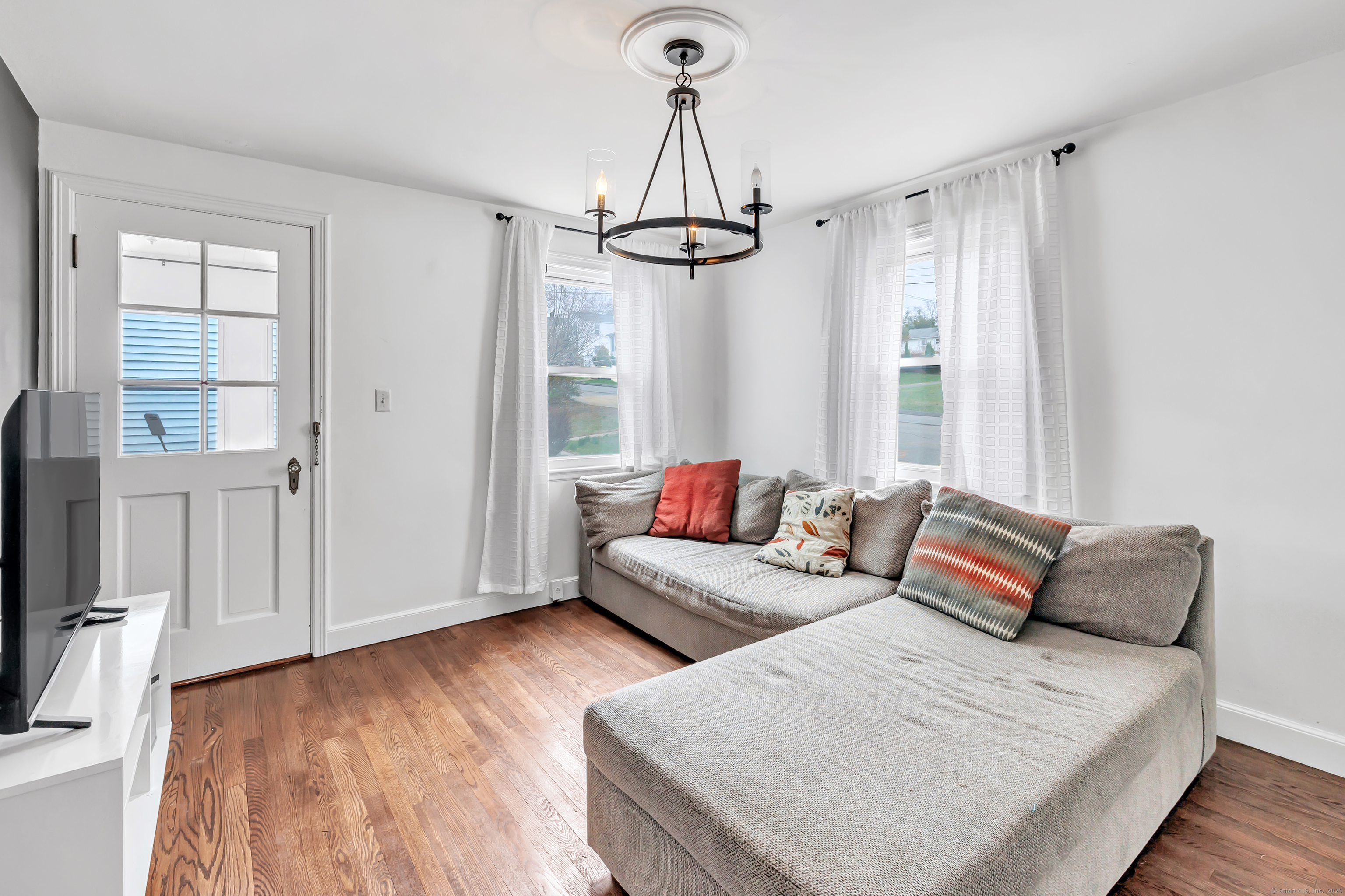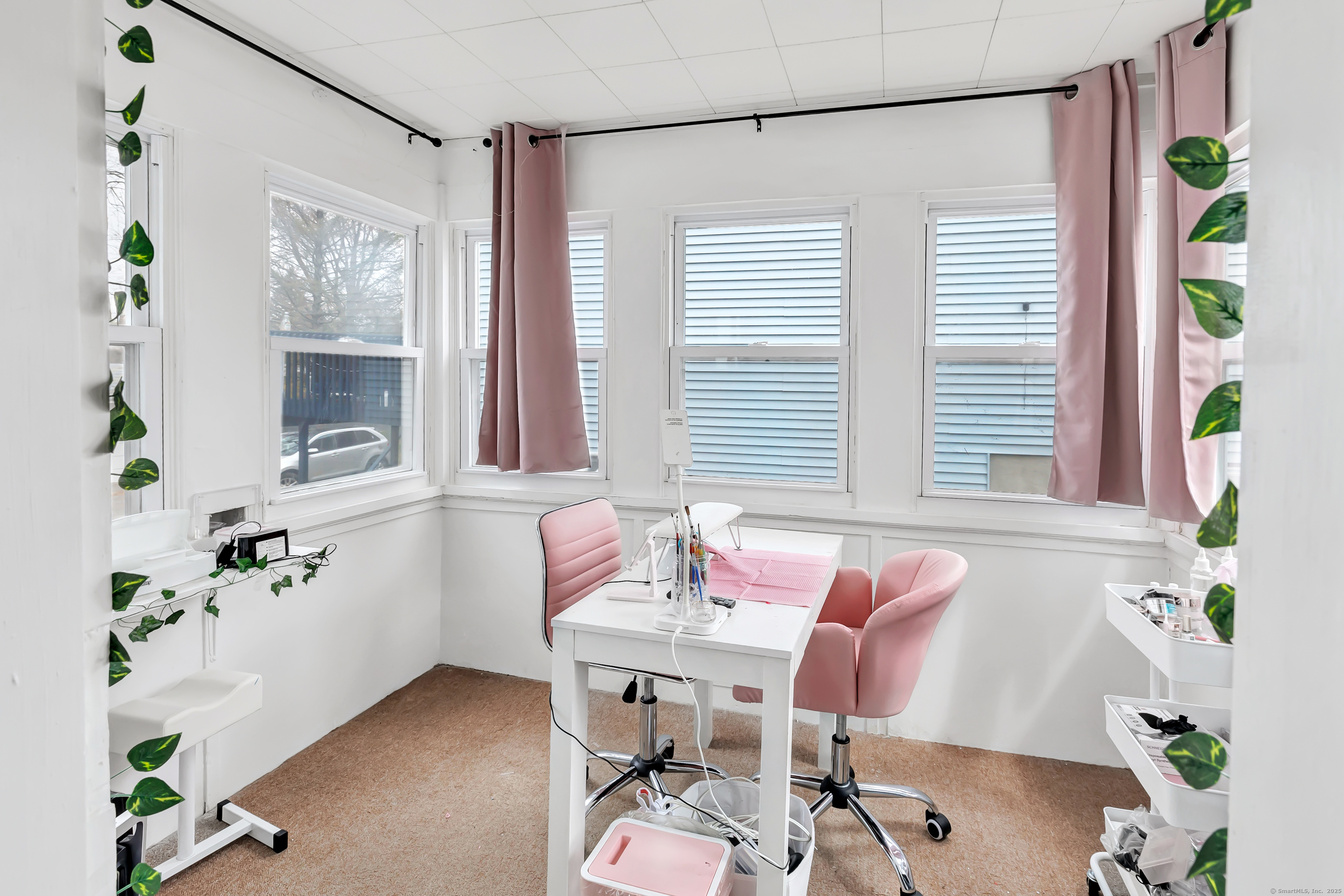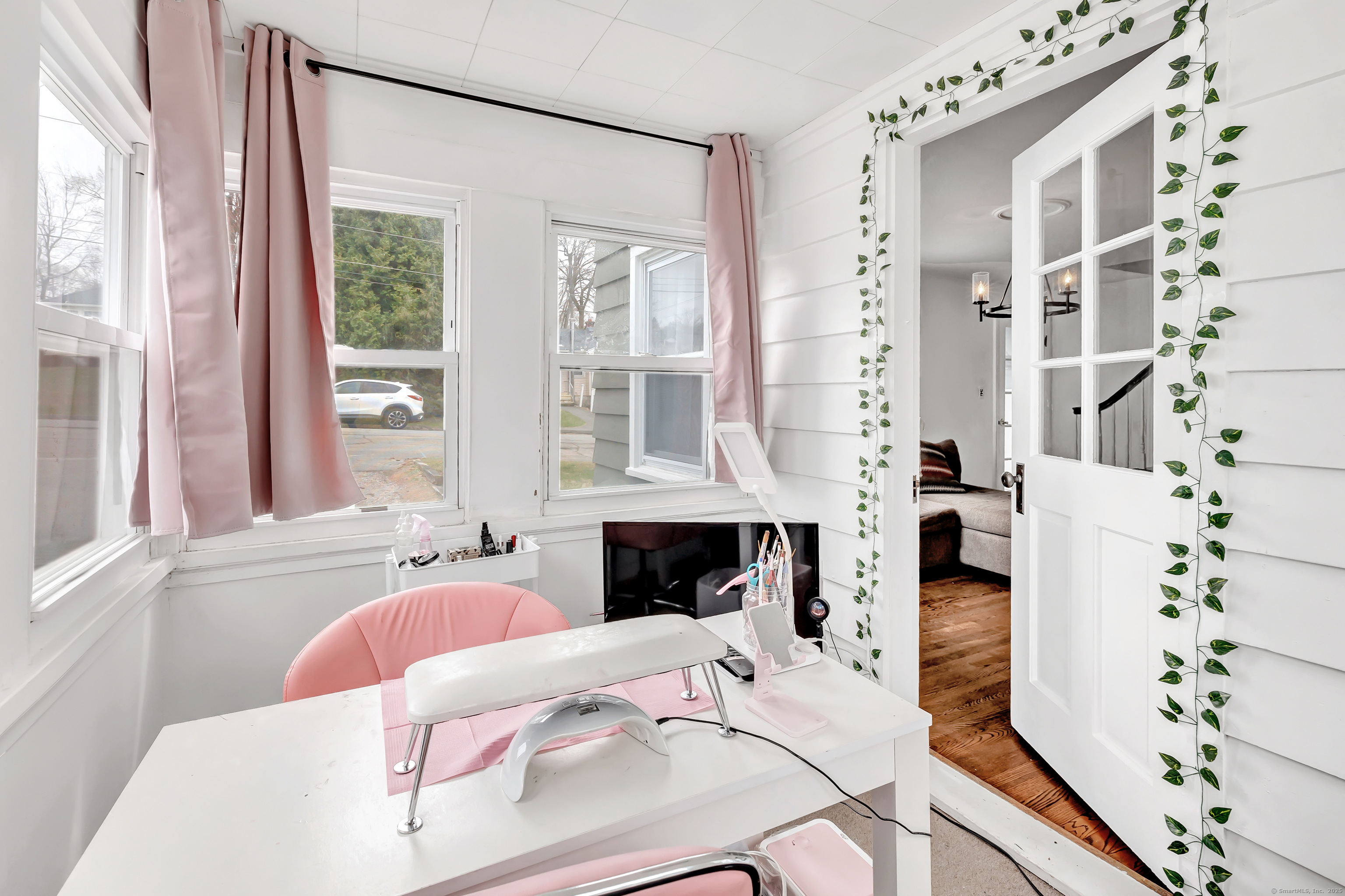 Adorable 3 bedroom cape on a quiet, dead end street, located in the Town Plot section of Waterbury. The main floor of this bright, updated, home features an eat in kitchen, sun room, full bathroom, carpeted bedroom, living room and office, both with hardwood floors. Off the kitchen is a covered porch, overlooking the private and fully-fenced back yard. In the heated walk-out basement, you'll enjoy convenient access to a newer washer and dryer, and tons of storage space. Upstairs you'll find two large, carpeted bedrooms, each with 2 closets, as well as an updated half-bath. Roof, windows and water heater are newer. Great commuter location with easy access to both Route 8 and I-84.