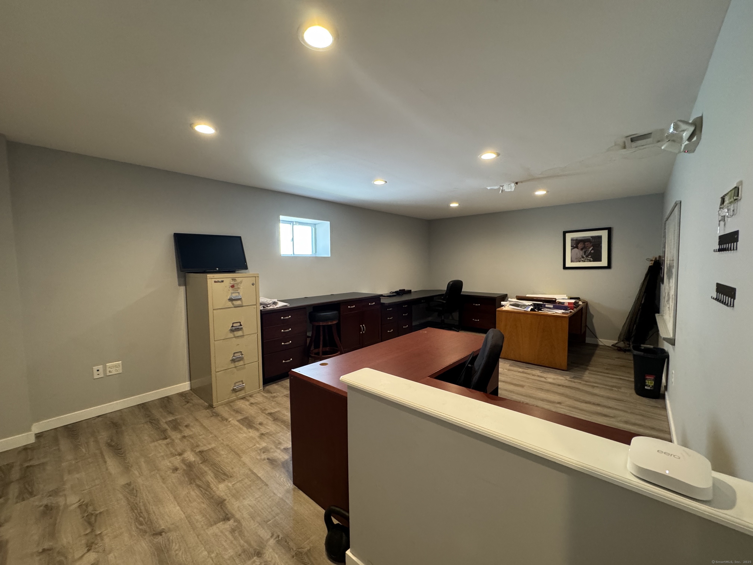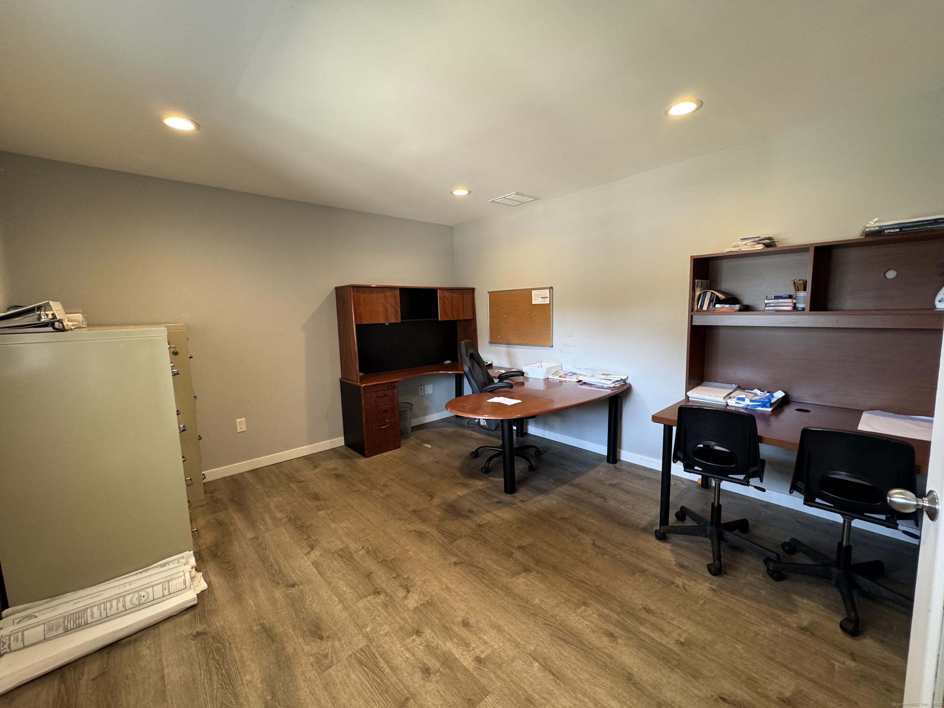 **Office with Garage** 1500 Sqft Office Space with 1500 Sqft 1 Bay Garage and 4000 SqFt parking lot in rear of building and 4 parking spots in front . $3000/month. Office area is completely renovated with reception area, 4 offices, kitchen and bathroom. 14ft Drive-in Overhead door, 20' Ceilings and 3 phase electrical. Excellent for sales service operation and showroom. Possible flooring or kitchen company. GREAT LOCATION !! Less than a mile to I-95 and I-91!
