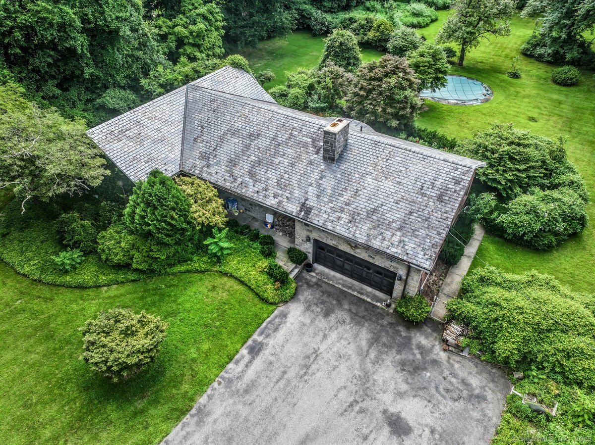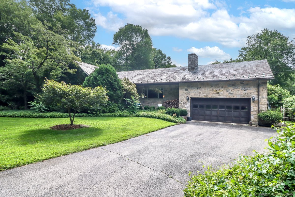 Enter through the gated driveway to this ranch-style residence, quietly set on nearly four acres in Greenwich. The property offers a tranquil atmosphere with mature landscaping, a slate terrace, and an in-ground pool. While the home has good bones, it presents a prime opportunity for renovation and customization. Inside, the front foyer opens to a combination of hardwood and carpeted flooring. The primary bedroom features wood floors and a private bath, while two additional bedrooms-also with hardwood floors share a full hallway bathroom. The living room includes wall paneling, a large picture window, carpeting, and a classic stone fireplace. Just off the living room, the dining area transitions between carpet and wood floors. The kitchen with access to the rear patio and pool, includes vinyl flooring, laminate counters, and dated appliances such as an electric stove, microwave, and dishwasher, a newer refrigerator. Adjacent to the kitchen is a laundry area with a utility sink. A bright sunroom with sliding glass doors opens to the backyard and also provides entry to the attached garage. Off the dining room are stairs to a private office w/hardwood floors and a full bath offers potential as a home office, studio, or guest suite/fourth bedroom. A walk-out basement adds valuable storage or finishing possibilities. With a functional layout and substantial lot, this home is well-suited for a buyer eager to restore and personalize a property in Greenwich. "Sold As Is"