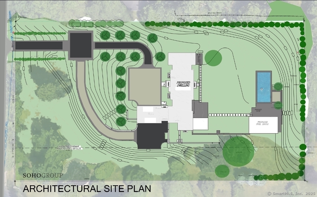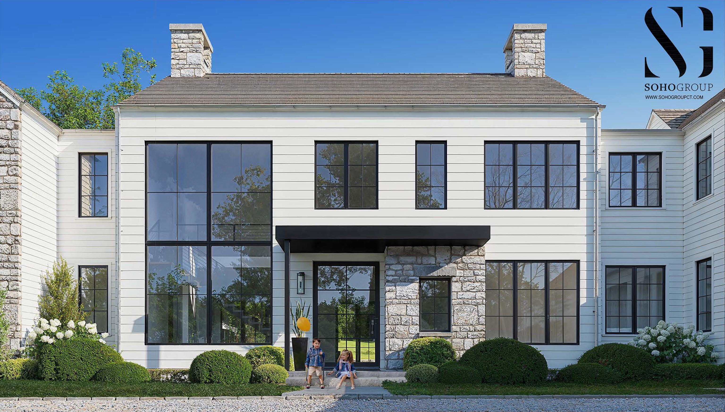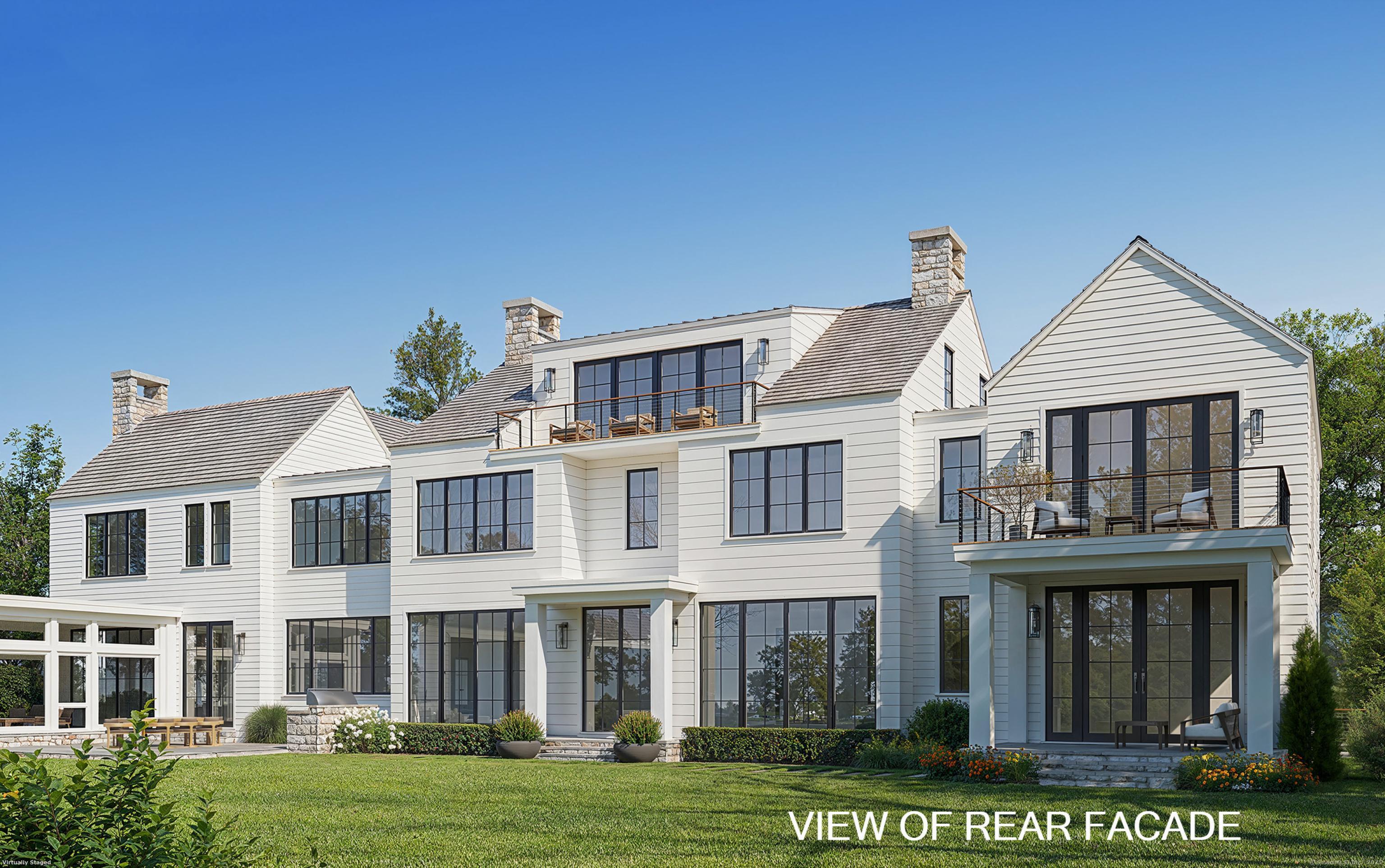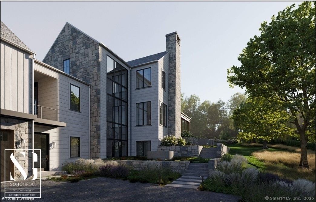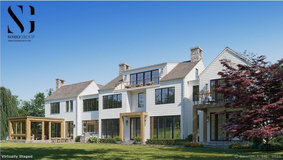 Exceptional commanding luxury estate under development in prime mid country location. The 2.39 acre gated & elevated site includes a 13,326 SF main house with 6 bedrooms / 8.3 bathrooms across 4 levels of custom crafted living space with indoor parking for 7 cars - plus an outfitted 800 SF luxury pool house with vaulted ceilings, heated floors, stone fireplace & full bathroom overlooking a large terrace, 50 ft. pool with integrated spa & sundeck plus a sprawling lawn area with sunken fire pit & Bocce court. Designed by the SOHO Group, this striking transitional home with soaring ceilings & tremendous light is perfectly layered in clapboard, hand chiseled fieldstone & oversize glass. A 3-stop elevator plus an amenity-filled lower level complete the offering. Est. completion date: Dec. 2025
